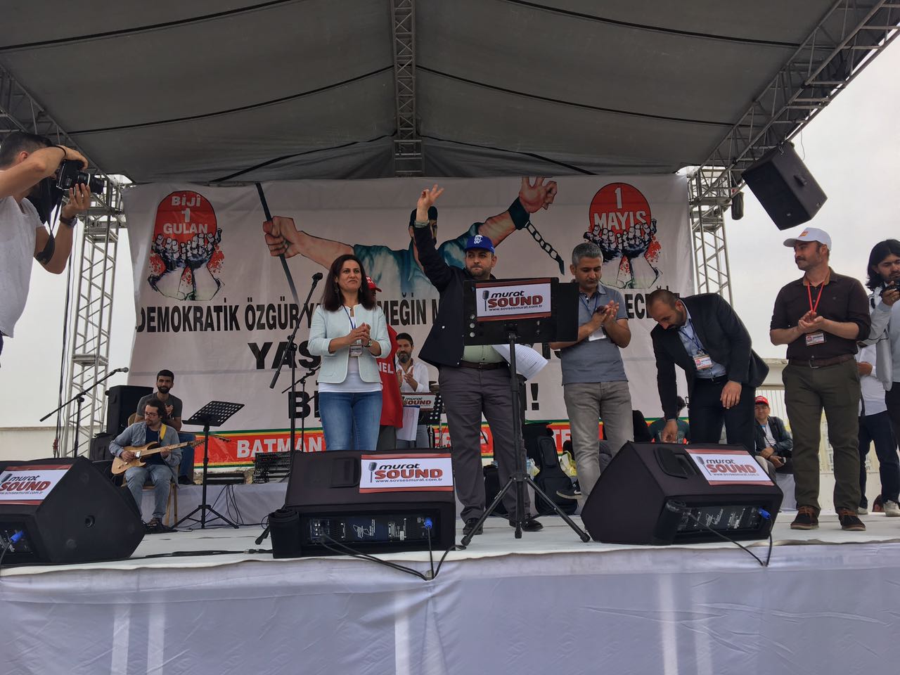 Genel Eğitim ve Örgütlenme Sekreterimiz Mustafa Mesut Tekik, 1 Mayıs İşçi Bayramı’nı 16 Mayıs Şehir Stadı’nda kutladı. Batman Şube Başkanımız Şehmus Kaygusuz ve şube başkan yardımcılarımızın katılımıyla gerçekleşen miting sabah 11:00’de başladı. Açılış konuşmasını Batman Şube Başkanımız Şehmus Kaygusuz gerçekleştirdi. Ardından Genel Eğitim ve Örgütlenme Sekreterimiz Mustafa Mesut Tekik de 1 Mayıs İşçi Bayramı’nın önemine dair kitleye seslendi. Batman’daki 1 Mayıs kutlamalarına KESK, SES Eş Genel Başkanları ve HDP Grup Başkan Vekili Ahmet Yıldırım da katıldı. Mitingde Servet Kocakaya, Rojda ve Grup Şerzad konserlerinden sonra 16.00’da sona erdi. Batman’da 1 Mayıs kutlamaları müzik eşliğinde halaylar ile çoşkulu bir şekilde geçti.