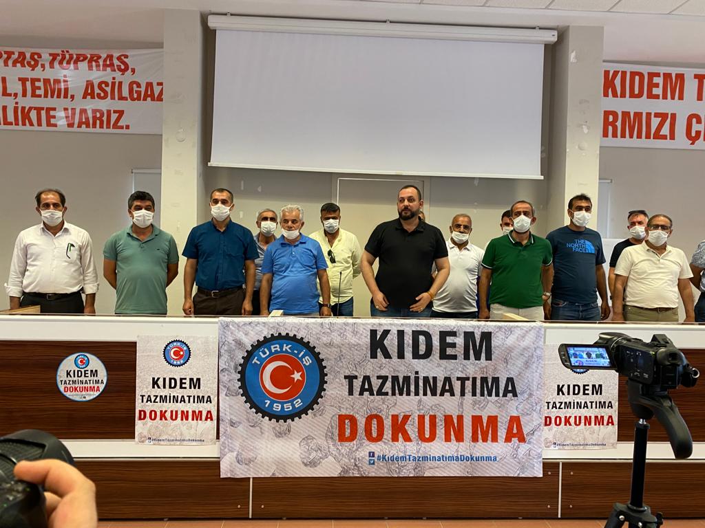 Basın açıklamasında kıdem tazminatı hakkını geriye götürecek herhangi bir düzenlemenin asla kabul edilemeyeceğinin altı çizildi.