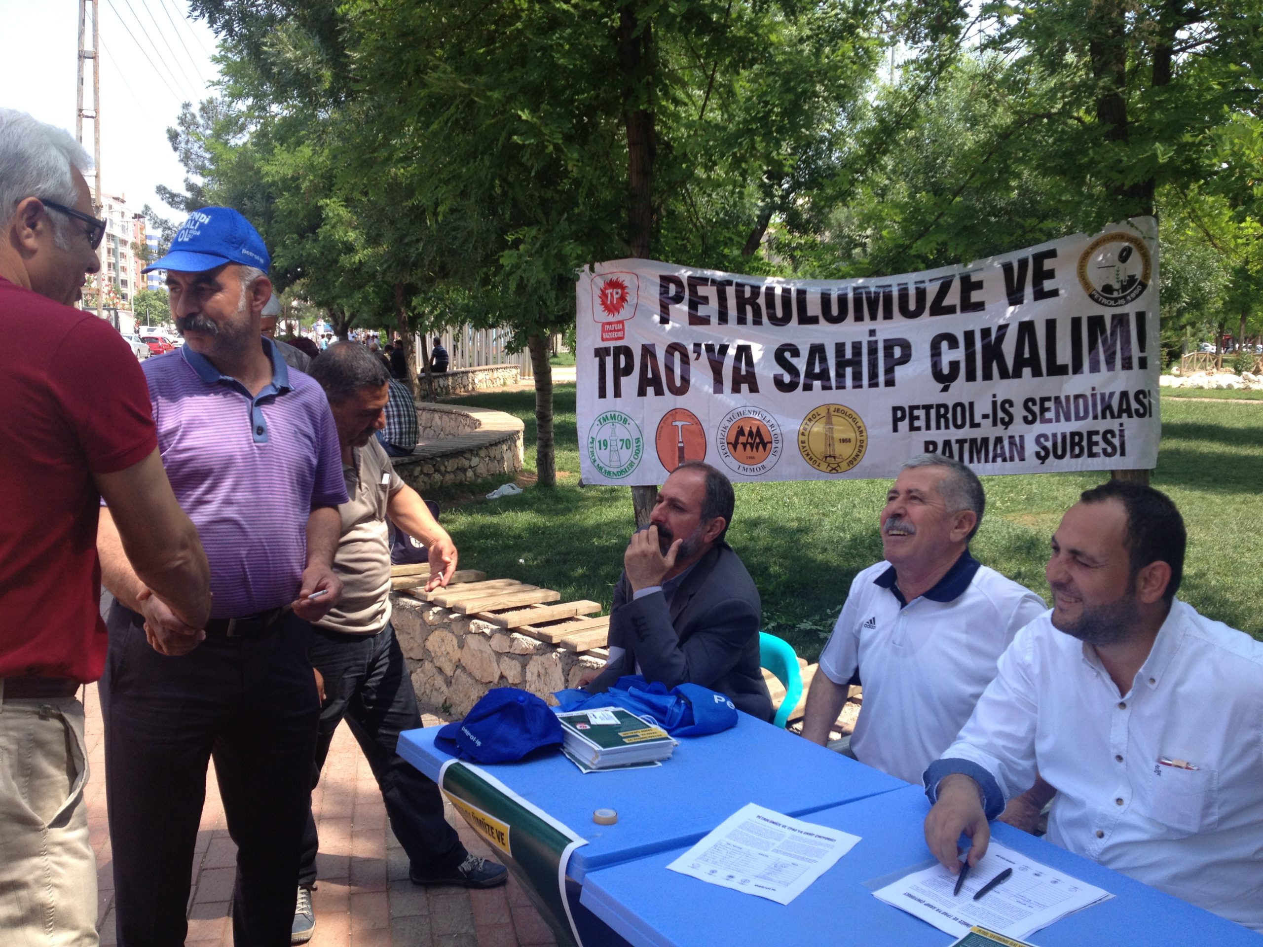 Batman Şubemiz "Petrolümüze ve TPAO'ya sahip çıkıyoruz!" Eylem - Etkinliği çerçevesinde 9-10 Mayıs tarihlerinde Atatürk Parkı ve Gülistan Caddesi'nde imza standı açtı.
