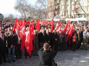 BAYRAĞA SAYGI28.03.2005 Pazartesi günü saat 17.00’de Cumhuriyet meydanında Bandırma Emek Platformu’nun düzenlediği “Bayrağa Saygı” adı altında kitlesel basın açıklamasına Petrol-İş, Liman-İş, Genel-İş, Tek Gıda-İş ve Bandırma Belediye Başkanı katıldılar.
