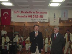 15 Eylül 2004 tarihinde şubemiz iş yerlerinin ortak katılımı ile gerçekleşen birlik-dayanışma gecesi düzenlendi. Tüpraş sosyal tesislerinde gerçekleşen geceye Tüpraş ve MKEK Nitroselüloz Fabrikasından 350 üyemiz eş ve çocuklarıyla katıldı.Ayrıca geceye Genel Başkanımız Mustafa Öztaşkın ve Tüpraş Genel Müdürü Hüsamettin Danış, Kırıkkale Rafineri Müdürü Hadi Erbeyoğlu, Nitroselüloz Fabrikası Müdürü Sait Demirci diğer müdür ve yöneticiler de katıldı. Gecede bir konuşma yapan Genel Başkan Mustafa Öztaşkın; Petrol-İş Sendikasının üreterek, mücadele ederek, örgütlü olduğumuz işyerlerimizi daha ileri taşımayı, geliştirmeyi, büyütmeyi hedeflediğini, özelleştirmeye de bu işyerlerinin gerçek sahiplerinin, kendi çalışanların ve halkın malı olduğu için karşı çıktıklarını vurguladı. Gecede bir konuşma da Hüsamettin Danış yaptı. Danış konuşmasında dürüst bir sendika ve sendikacılarla çalışmaktan gurur duyduğunu belirterek, Petrol-İş Sendikasının Türkiye sendikal harekatına örnek teşkil etmesi dileğinde bulundu. Eğlenceyi tertip eden Kırıkkale Şube Yöneticileri de Genel Başkan ve Tüpraş Genel Müdürünün katılımına teşekkür ederek, kendilerine birlikteliklerin anısına birer plaket takdim ettiler. Gecemiz eğlence ve müzik eşliğinde sona erdi. Petrol-İş Sendikası Kırıkkale Şube Yönetim Kurulu
