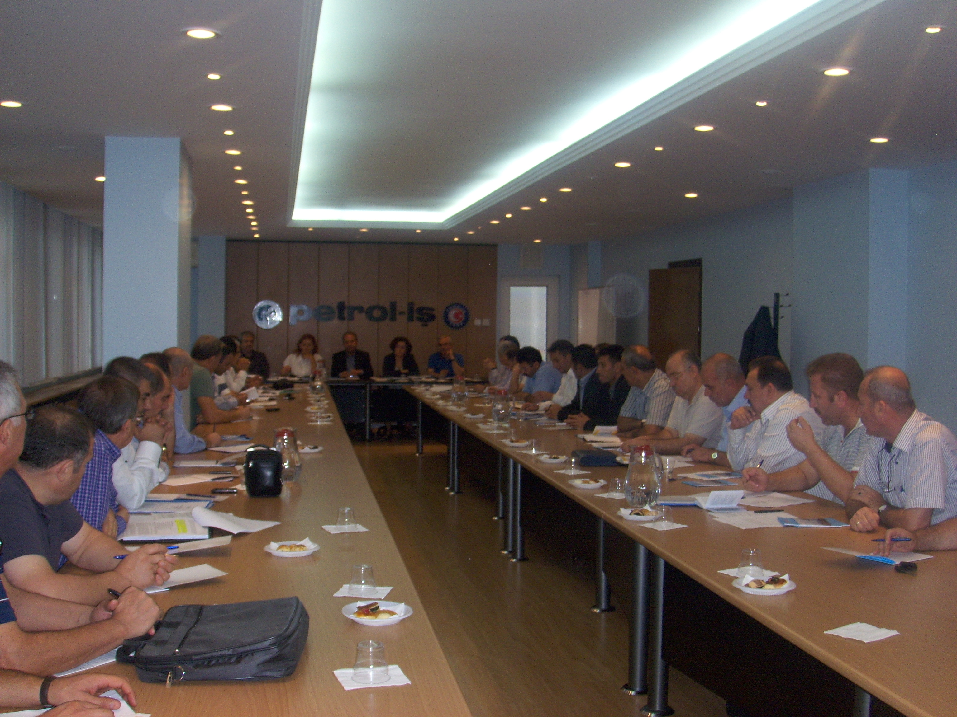 2-3 Ekim 2012 tarihlerinde TPAO – BOTAŞ 2013-2014 toplu iş sözleşmeleri taslak çalışmaları Ankara şubemizin toplantı salonunda Genel Merkez Yöneticilerimiz, ilgili şube başkan ve yöneticileri, işyeri temsilcileri ve uzmanlarımızın da katılımı ile başladı. Araştırma uzmanımız Aşkın Süzük’ün sunumuyla başlayan toplantıların ikinci günü sabahtan öğlene kadar Botaş, öğleden akşama kadar TPAO taslak çalışması yapıldı.