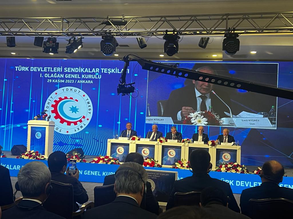 Konfederasyonumuz Türk-İş’in de aralarında bulunduğu üst kuruluşlar, 29 Temmuz 2023 tarihinde Azerbaycan’ın Şuşa şehrinde bir araya gelerek Türk Devletleri Sendikalar Teşkilatı’nı kurmuştu. Türk Devletleri Sendikalar Teşkilatı (TDST) 1’inci Olağan Genel Kurulu, 29 Kasım 2023 Çarşamba günü Türkiye İşçi Sendikaları Konfederasyonu (TÜRK-İŞ) ev sahipliğinde Ankara’da gerçekleştirildi. Genel Kurula Adana Şube Başkanımız Bülent Kılıççıoğlu da katıldı.