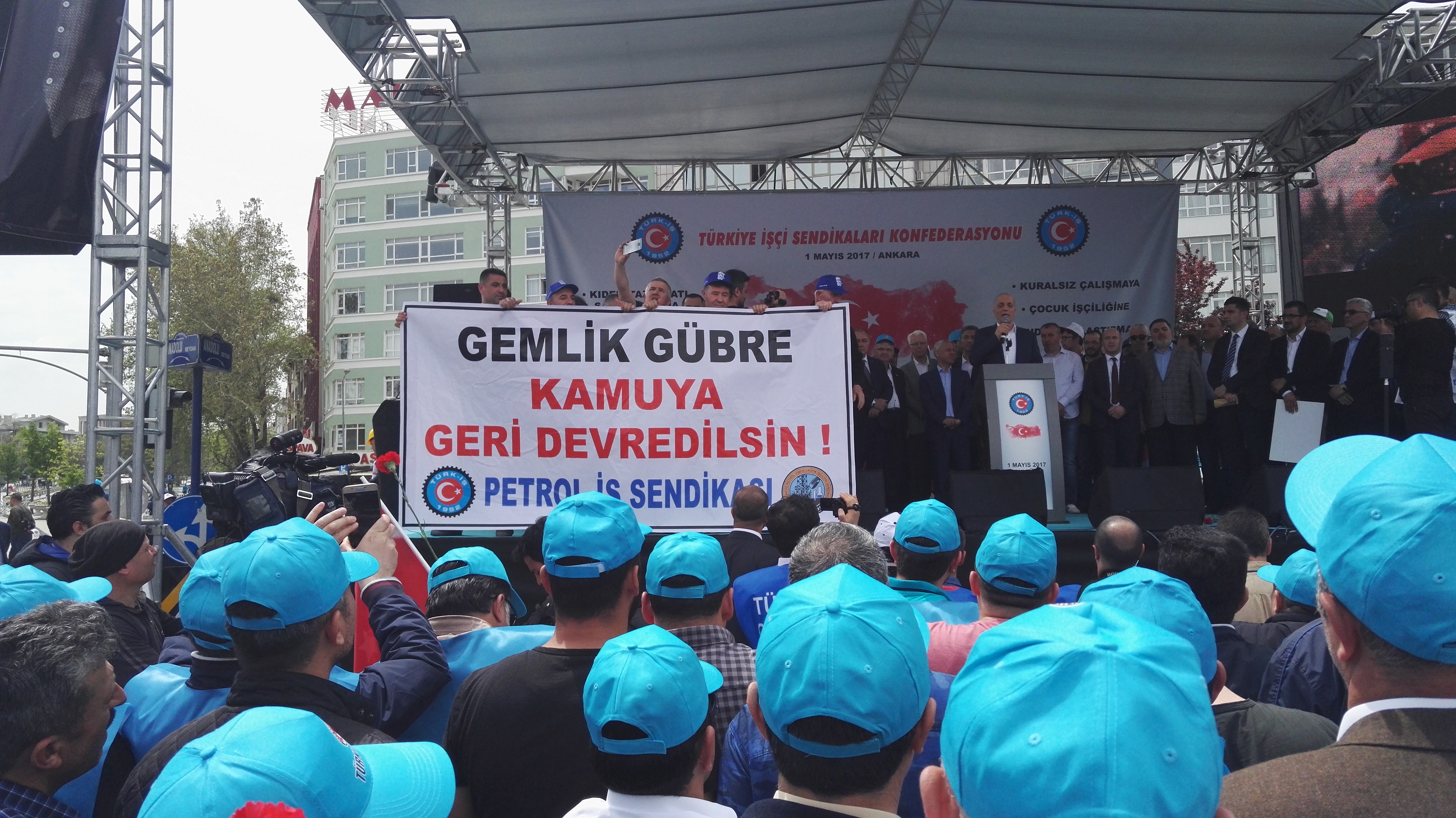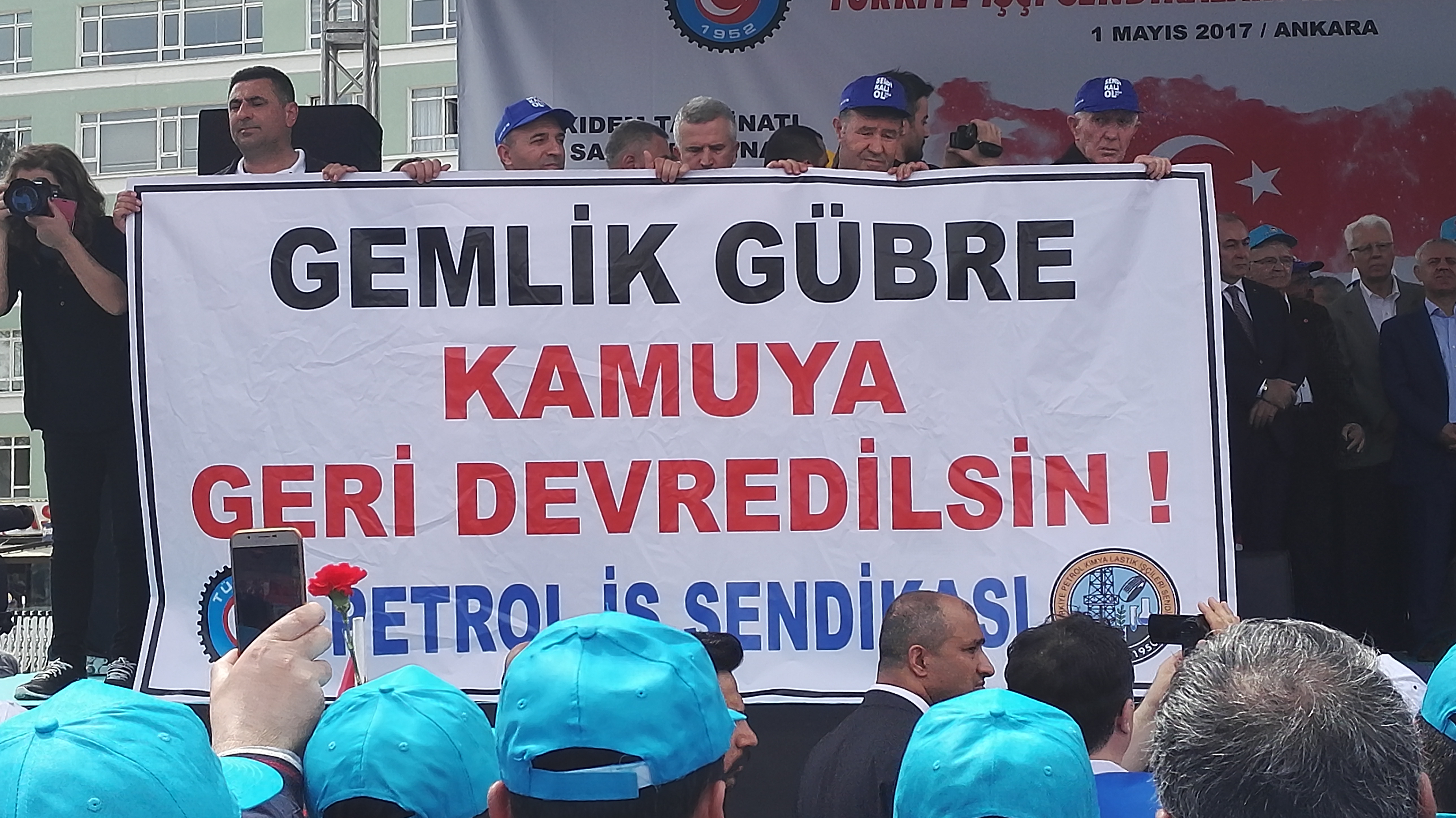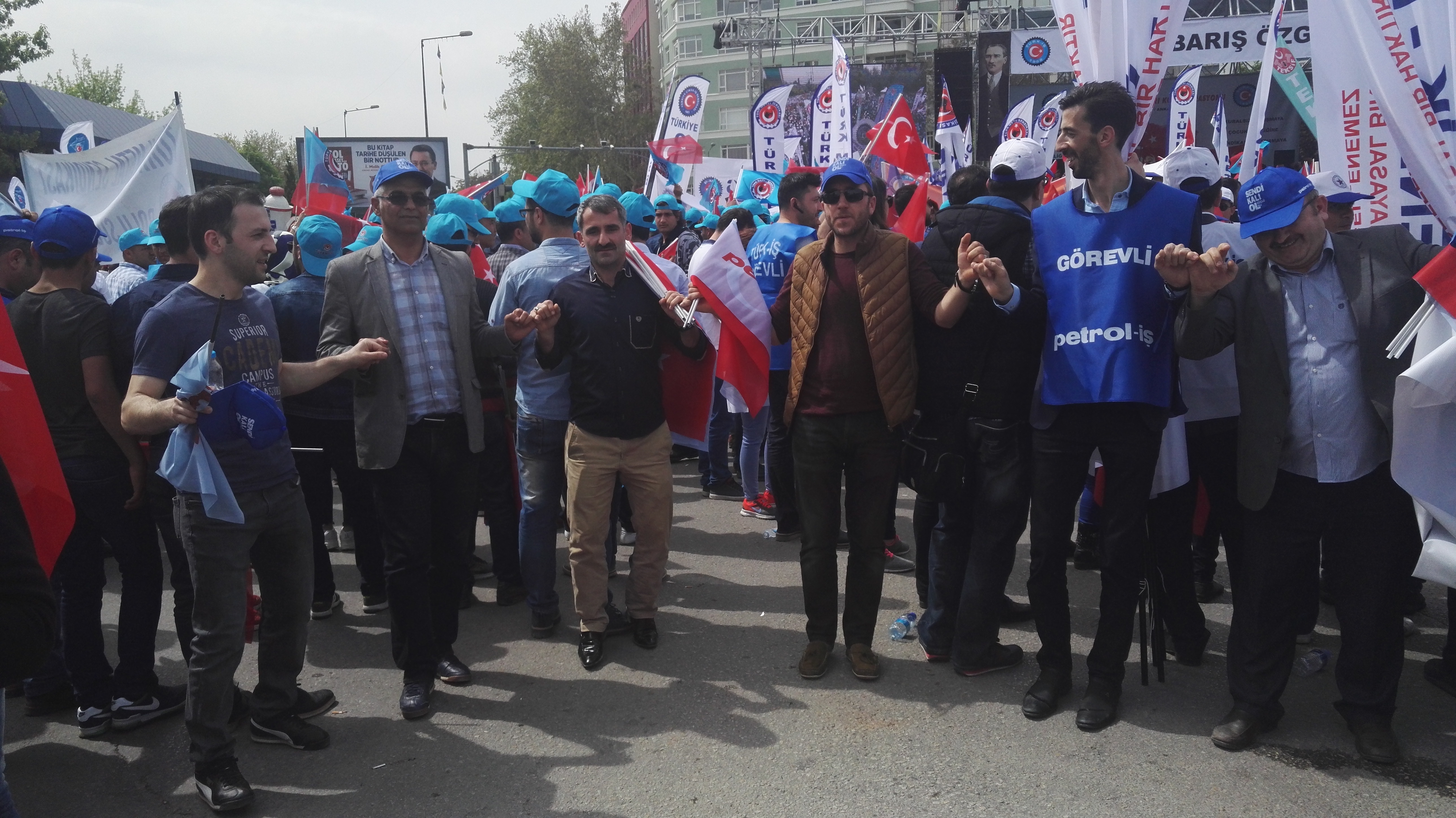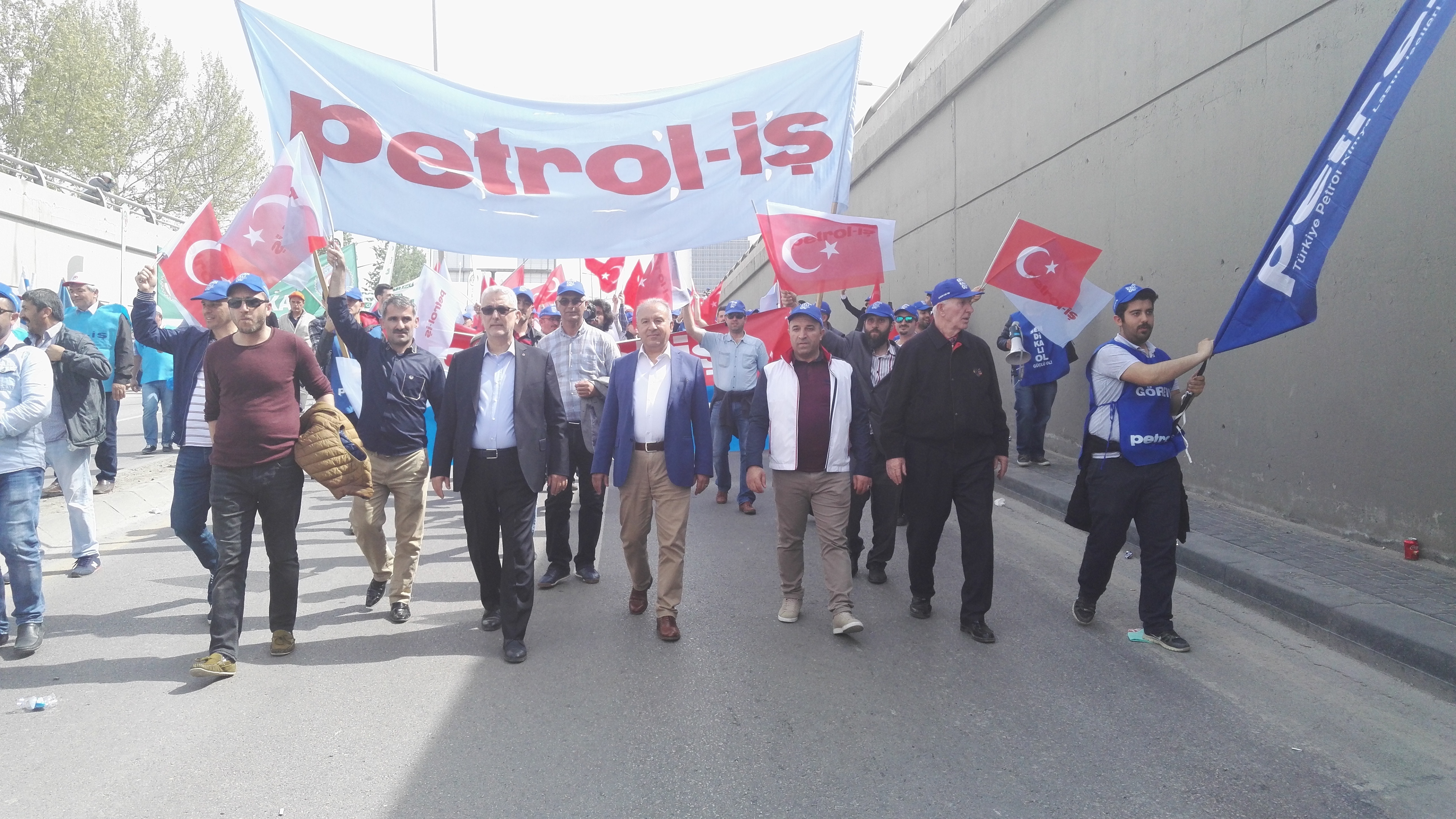 Bu yıl 1 Mayıs kutlamalarına Ankara, Adıyaman, Adana, Bursa, Kırıkkale, Kocaeli, İstanbul 1 Nolu Şube, İstanbul 2 Nolu ve Mersin şube yöneticilerimiz ve üyelerimizle kitlesel bir biçimde katılan Petrol-İş Sendikası’nı, merkez yönetim düzeyinde Genel Başkanımız Ali Ufuk Yaşar, Genel Sekreterimiz Ahmet Kabaca temsil ettiler.