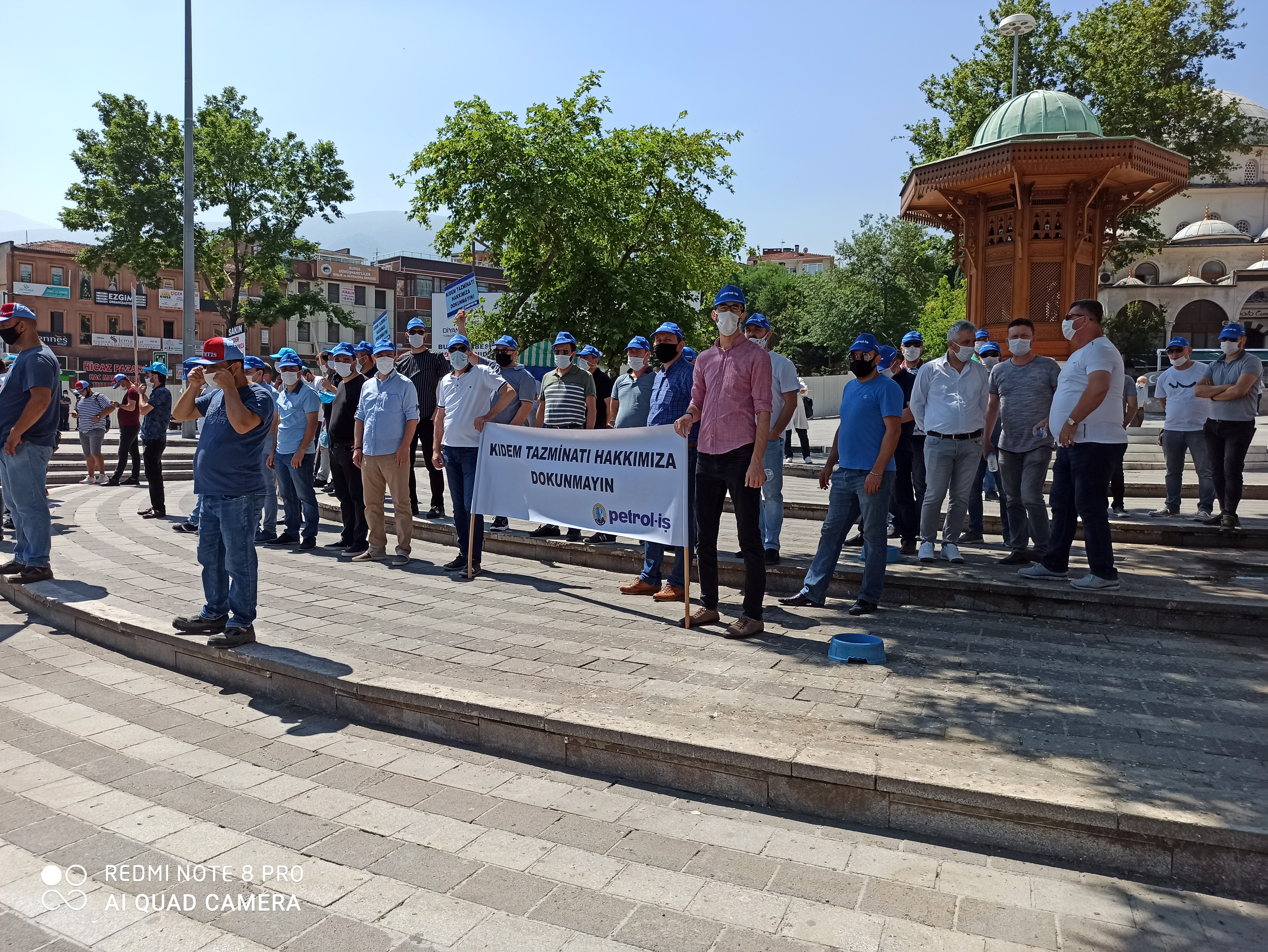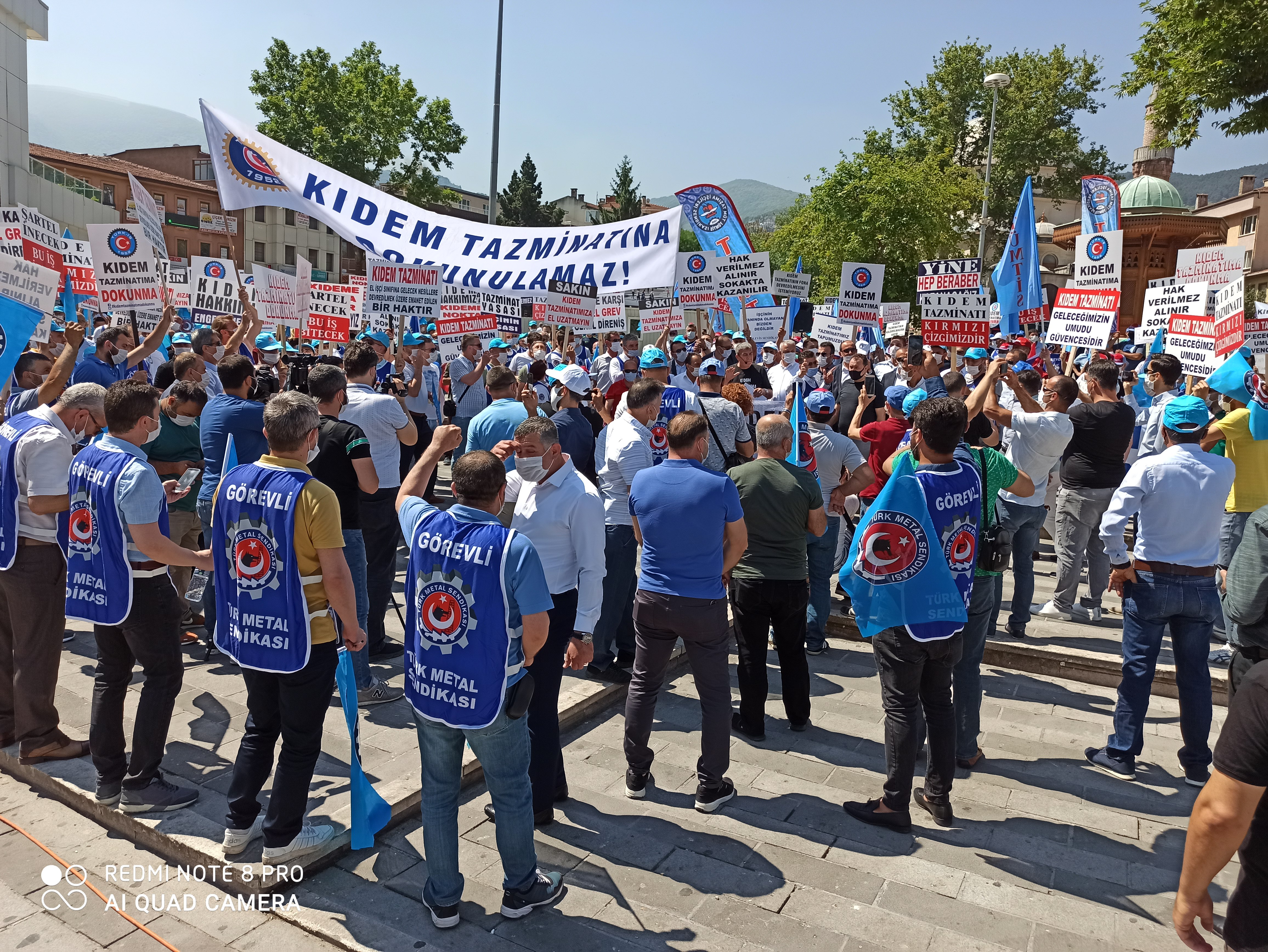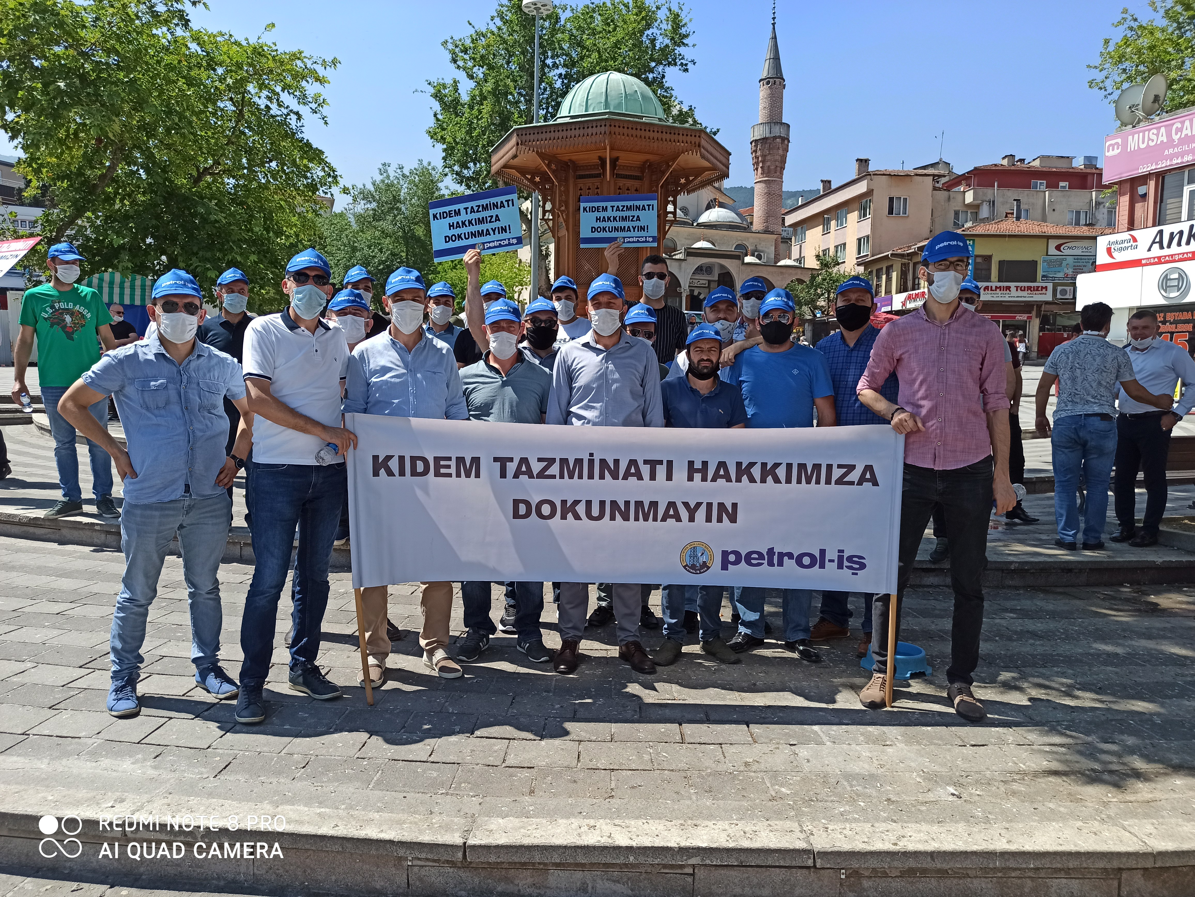 Bursa Şubemiz de, bugün saat 11.00’de, Bursa-Fomara Meydanı’nda yapılan kitlesel basın açıklamasına katıldı. Şube Başkanımız Ersin Birgül, Başkan Yard. Hüseyin Gürkaş ve Kamil Bayrak (Mali), yönetim, denetim, disiplin kurulu ve işyeri temsilcilerimizin katılımı ile destek verdiğimiz eylemde kıdem tazminatı hakkını geriye götürecek her müdahalenin genel grev nedeni olduğu vurgulandı. Ayrıca, bu kararın Türk-İş’in 21’inci, 22’inci ve 23’üçüncü Genel Kurulunda oy birliğiyle alınmış olduğuna dikkat çekildi.