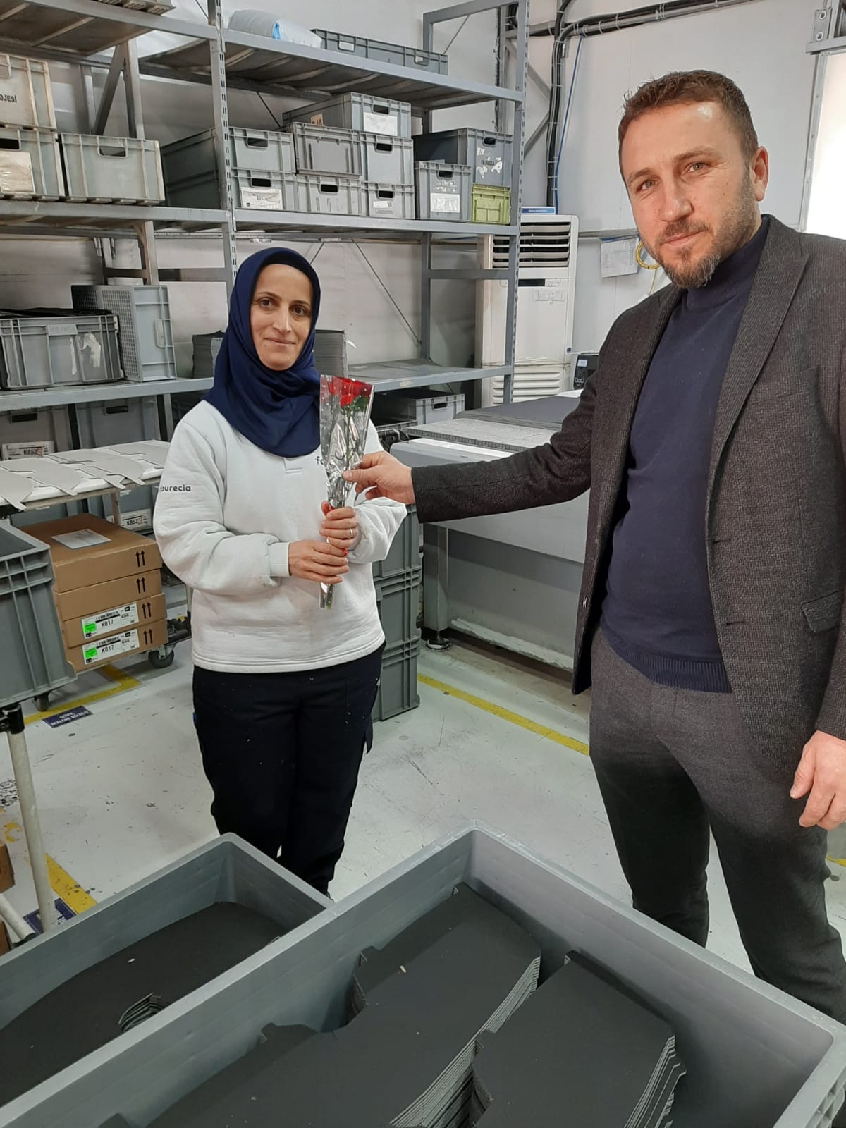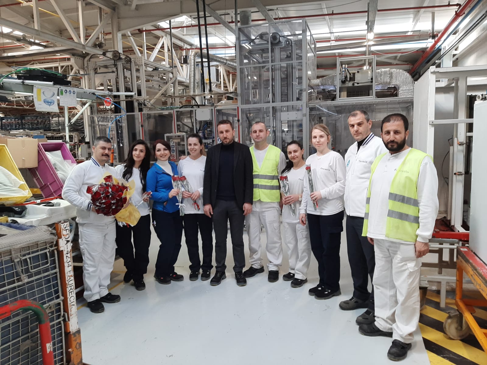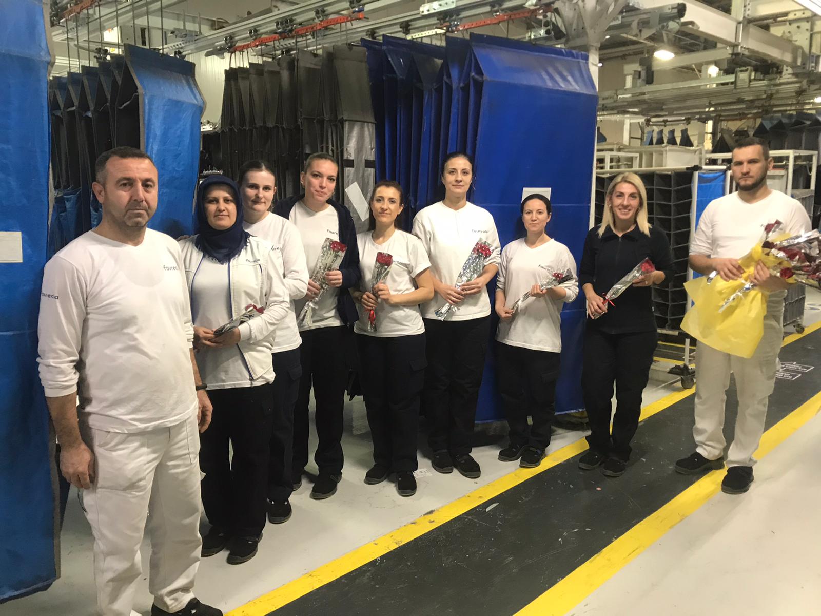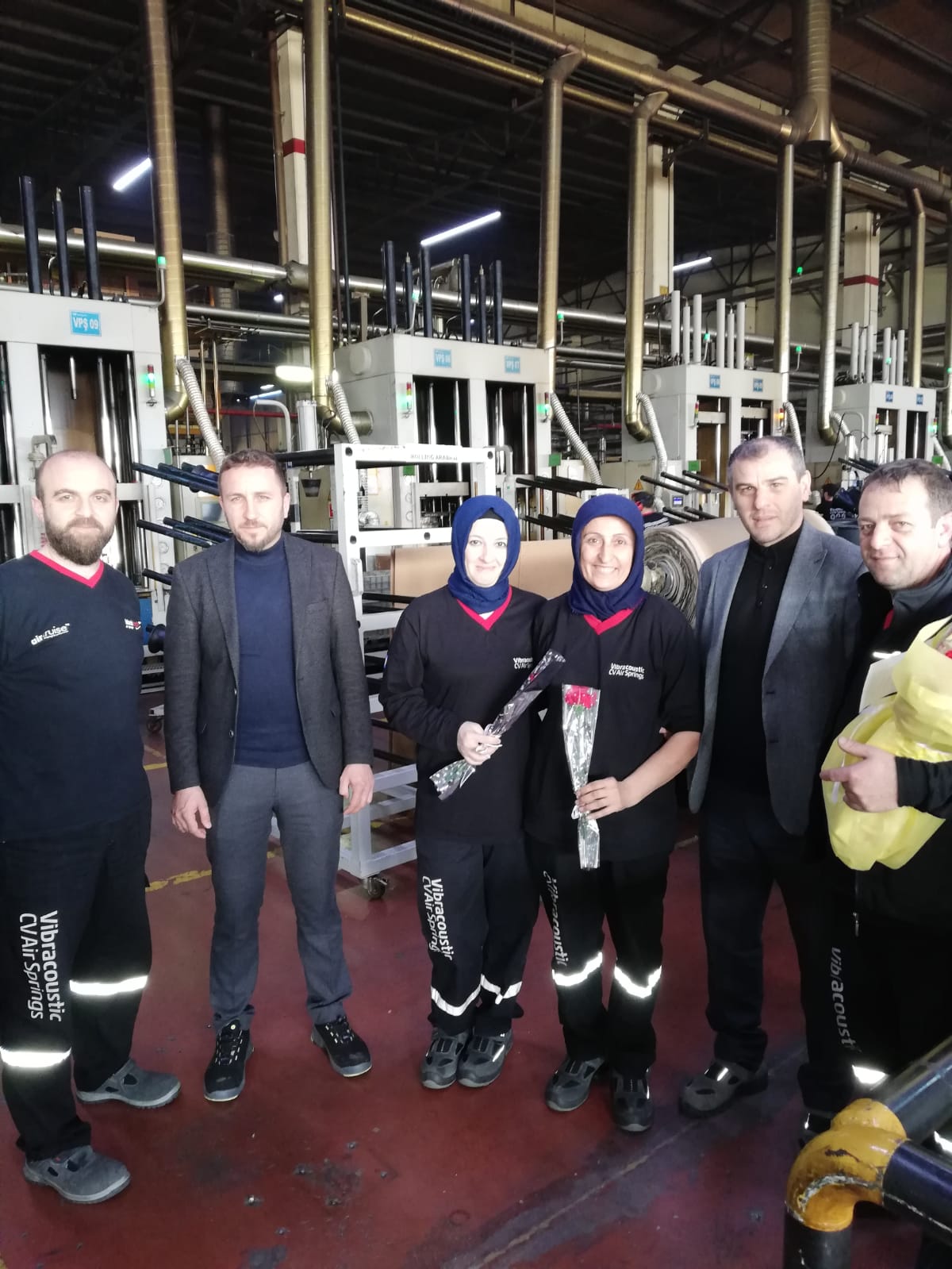 Bursa Şubemiz kapsamında örgütlü olduğumuz işyerlerinde 8 Mart kutlandı. Şube Başkanımız Ersin Birgül, Başkan Yardımcılarımız Hüseyin Gürkaş ve Kamil Bayrak(mali) ile işyeri temsilcilerimiz 8 Mart Pazar günü örgütlü olduğumuz Faurecia, Vibracoustic, Botaş, Autoneum, Aktaş, Contitech, Plastiform ve Solar Patlayıcı işyerlerimizi ziyaret ederek kadın üyelerimizin 8 Mart Dünya Emekçi Kadınlar gününü üyelerimize karanfil vererek, günün anlam ve önemini anlatarak kutladı.