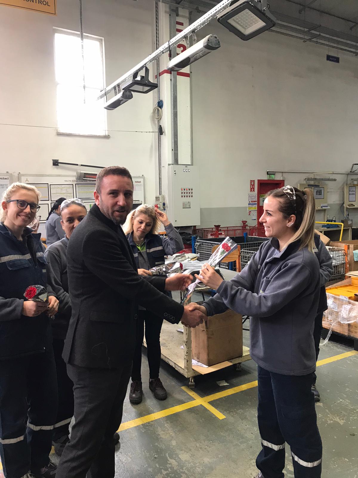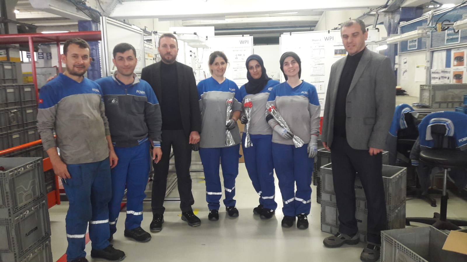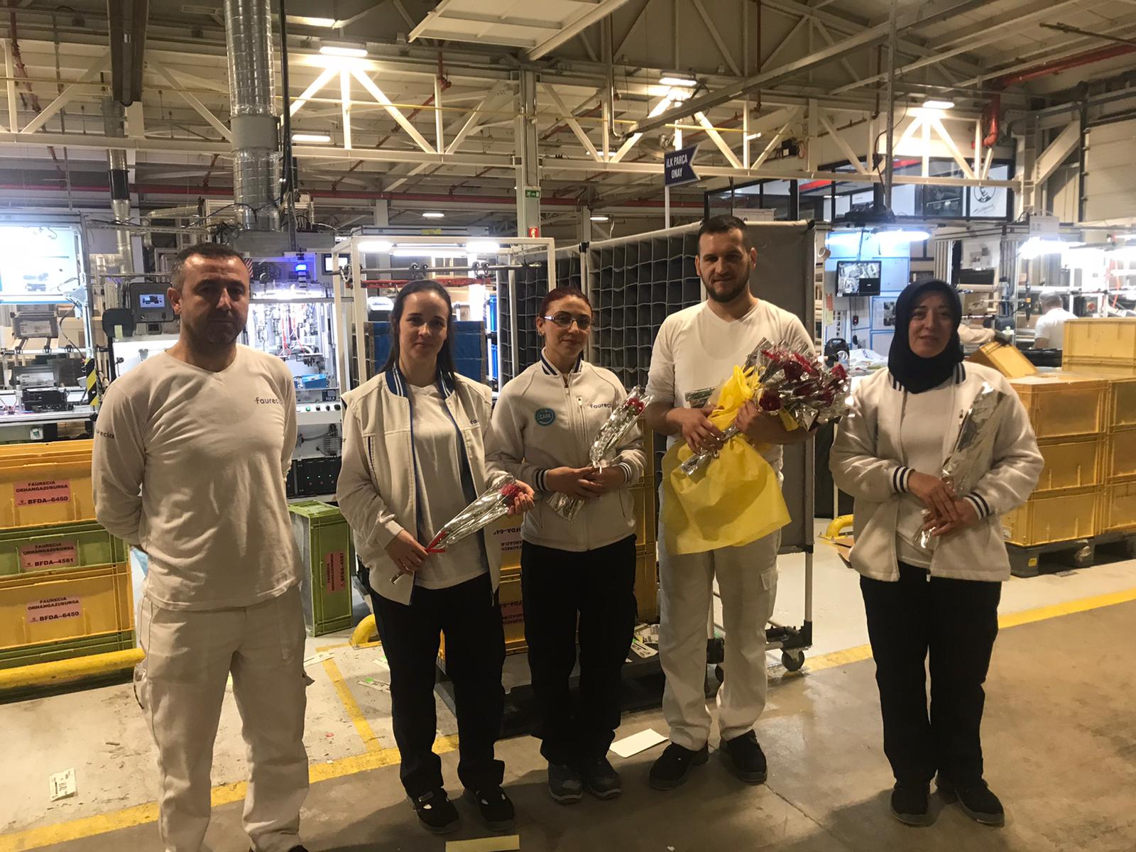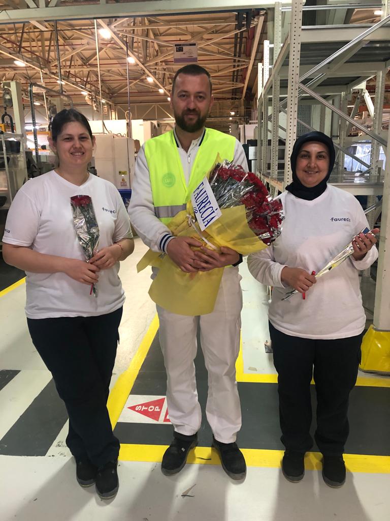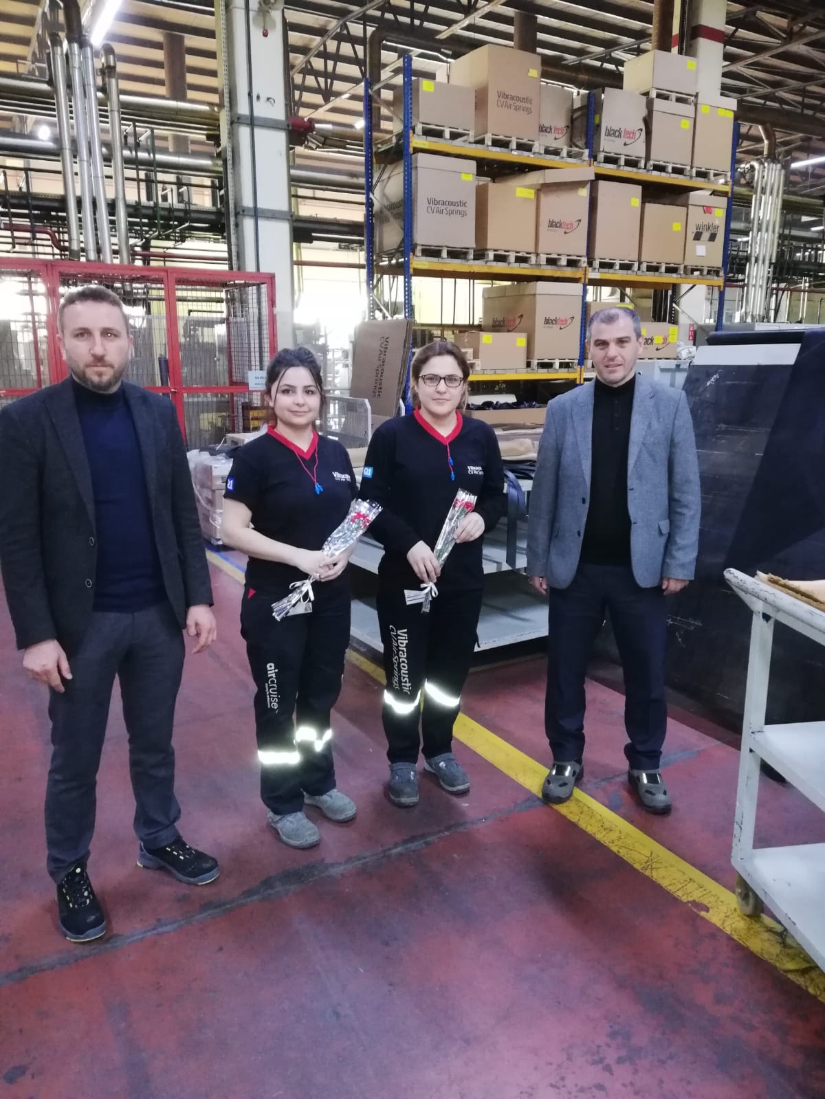 Bursa Şubemiz kapsamında örgütlü olduğumuz işyerlerinde 8 Mart kutlandı. Şube Başkanımız Ersin Birgül, Başkan Yardımcılarımız Hüseyin Gürkaş ve Kamil Bayrak(mali) ile işyeri temsilcilerimiz 8 Mart Pazar günü örgütlü olduğumuz Faurecia, Vibracoustic, Botaş, Autoneum, Aktaş, Contitech, Plastiform ve Solar Patlayıcı işyerlerimizi ziyaret ederek kadın üyelerimizin 8 Mart Dünya Emekçi Kadınlar gününü üyelerimize karanfil vererek, günün anlam ve önemini anlatarak kutladı.