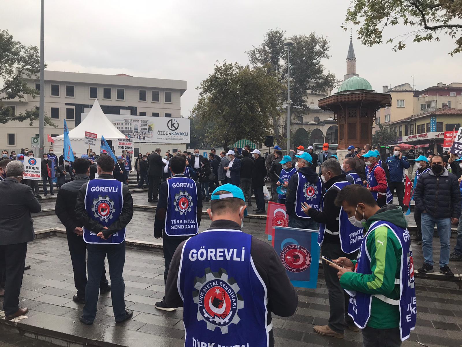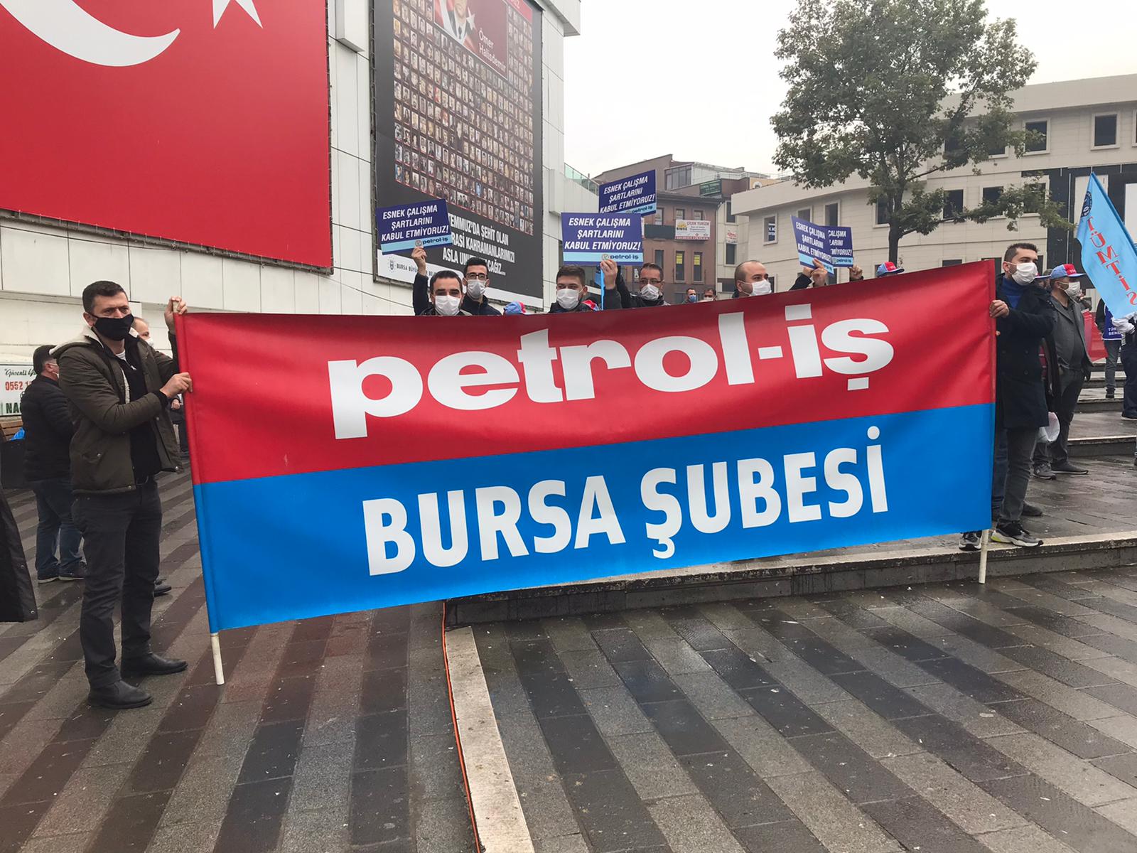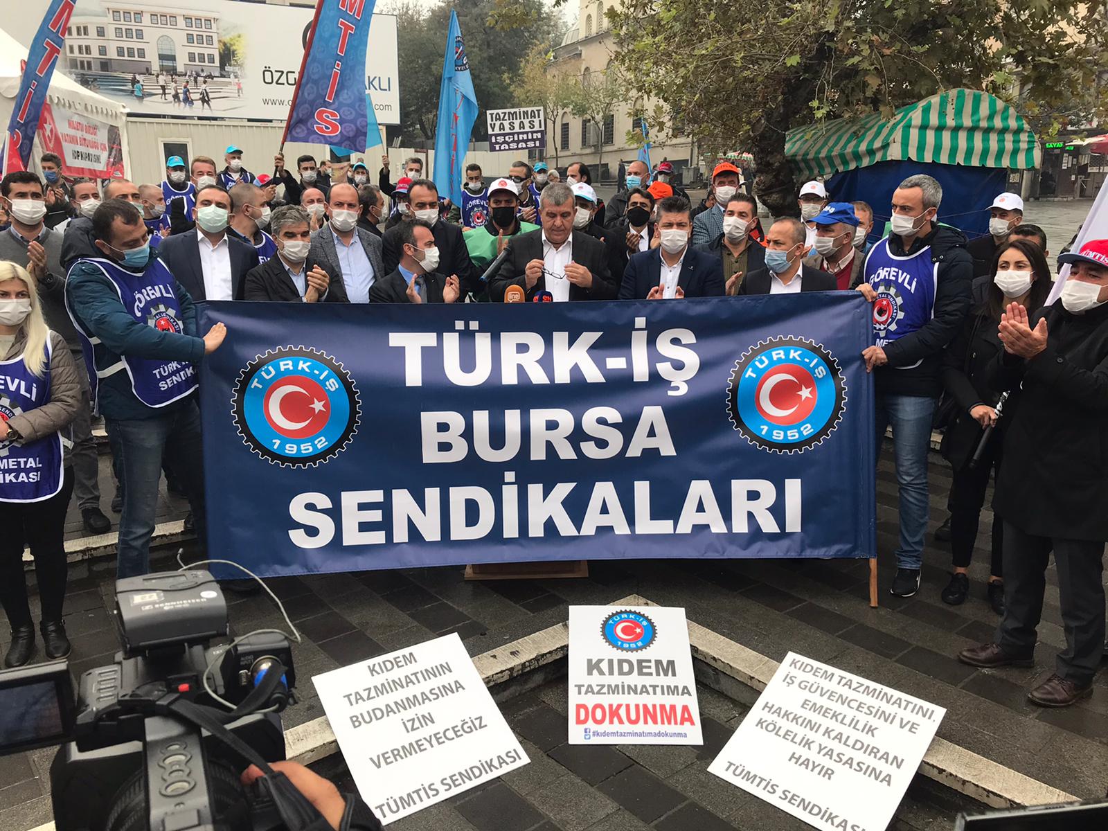 Burada biraraya gelen sendikalar yaptıkları ortak basın açıklamasında torba yasadaki maddelerin güvencesizlik, esnek çalışma ve sendikasızlaştırmanın önünü açacağını belirtilerek, TBMM gündeminden çıkartılması istedi. Ayrıca Bursa’da örgütlü olduğumuz işyerlerinde üyelerimiz, vardiya giriş çıkışlarında sloganlar atılarak tepkilerini dile getirdiler.