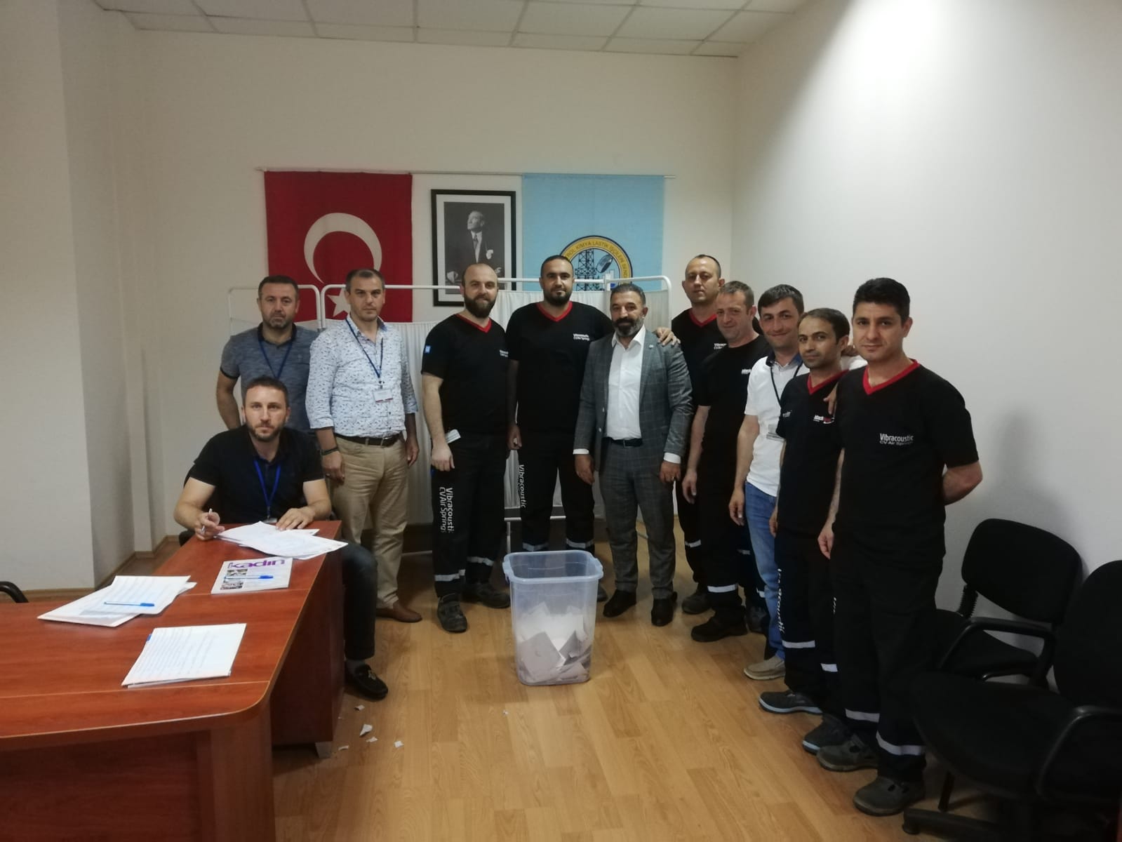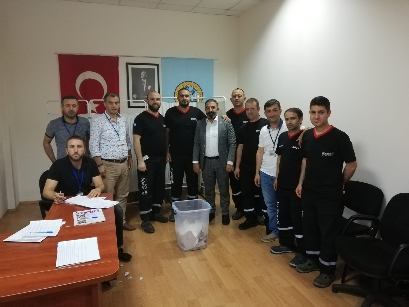Bursa Şubemizin örgütlü olduğu işyerlerinden Vibracoustic Cv Air Sprins Otomotiv Sanayi A.Ş.’de Ana üretim bölümü ve Yarı mamul – Sevkiyat depo bölümünde 25 Haziran Salı günü temsilcilik seçimi yapıldı. Ana üretim bölümünde Baş temsilciliğe Yavuz Demircan seçilirken temsilcilik görevlerine Zeki Demir ve Eyüp Esen, Yarı mamül – Sevkiyat depo bölümünde baş temsilciliğe Yavuz Giden, temsilcilik görevine Mustafa Yüksel seçildi. Şube Başkanımız Erhan Yakışan’da seçim sonrası işyerine giderek temsilci seçilen üyelerimizi tebrik edip temsilcilik görevlerinde başarılar dileyerek, yapılan bu seçimin şubemize, iş yerinde çalışan üyelerimize ve Petrol-İş sendikamıza hayırlı olması dileklerinde bulundu.