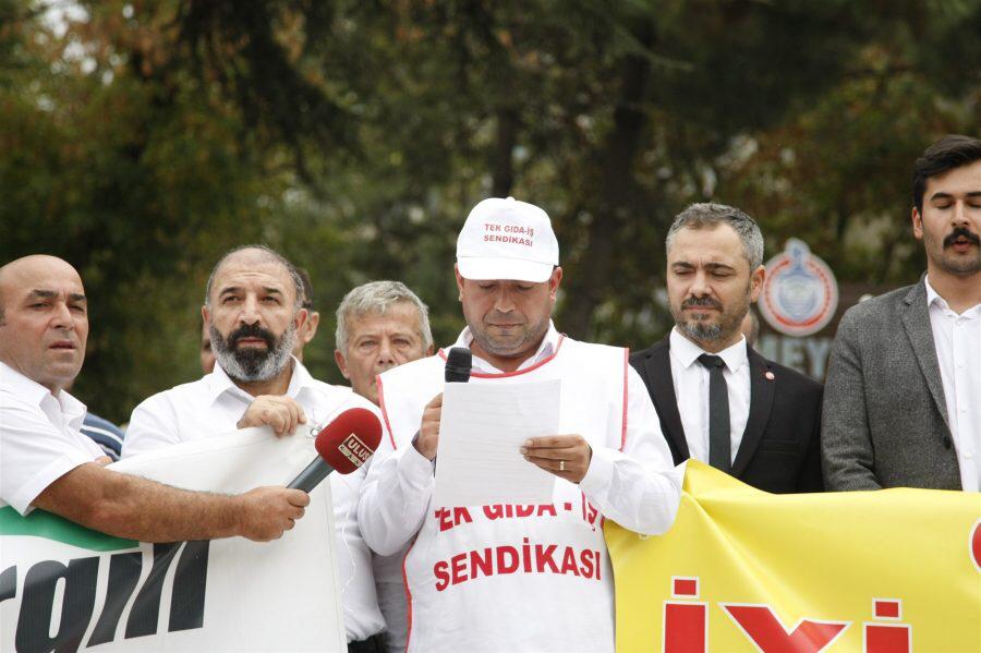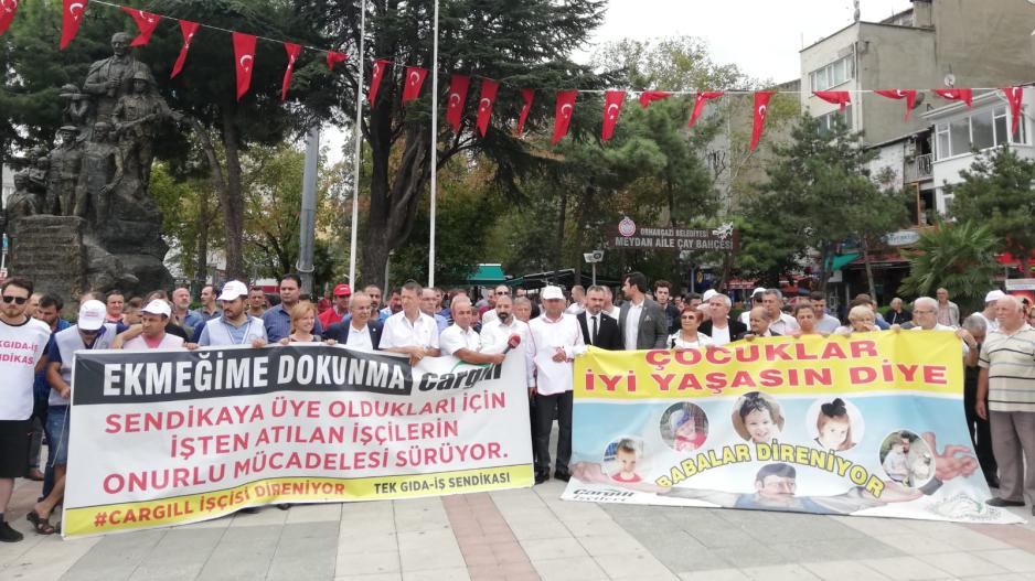 Bursa Şube Başkanımız Erhan Yakışan, Başkan Yardımcımız Mali Ersin Birgül ve Faurecia işyerinde çalışan üyelerimiz Tek Gıda-İş Sendikasının örgütlendiği Orhangazi’de kurulu bulunan Cargill Fabrikasında sendikalı oldukları için işten atılan 14 sendika üyesi işçi için 13 Eylül Perşembe günü Orhangazi Cumhuriyet meydanında yapılan basın açıklamasına katılarak destek verdiler.
