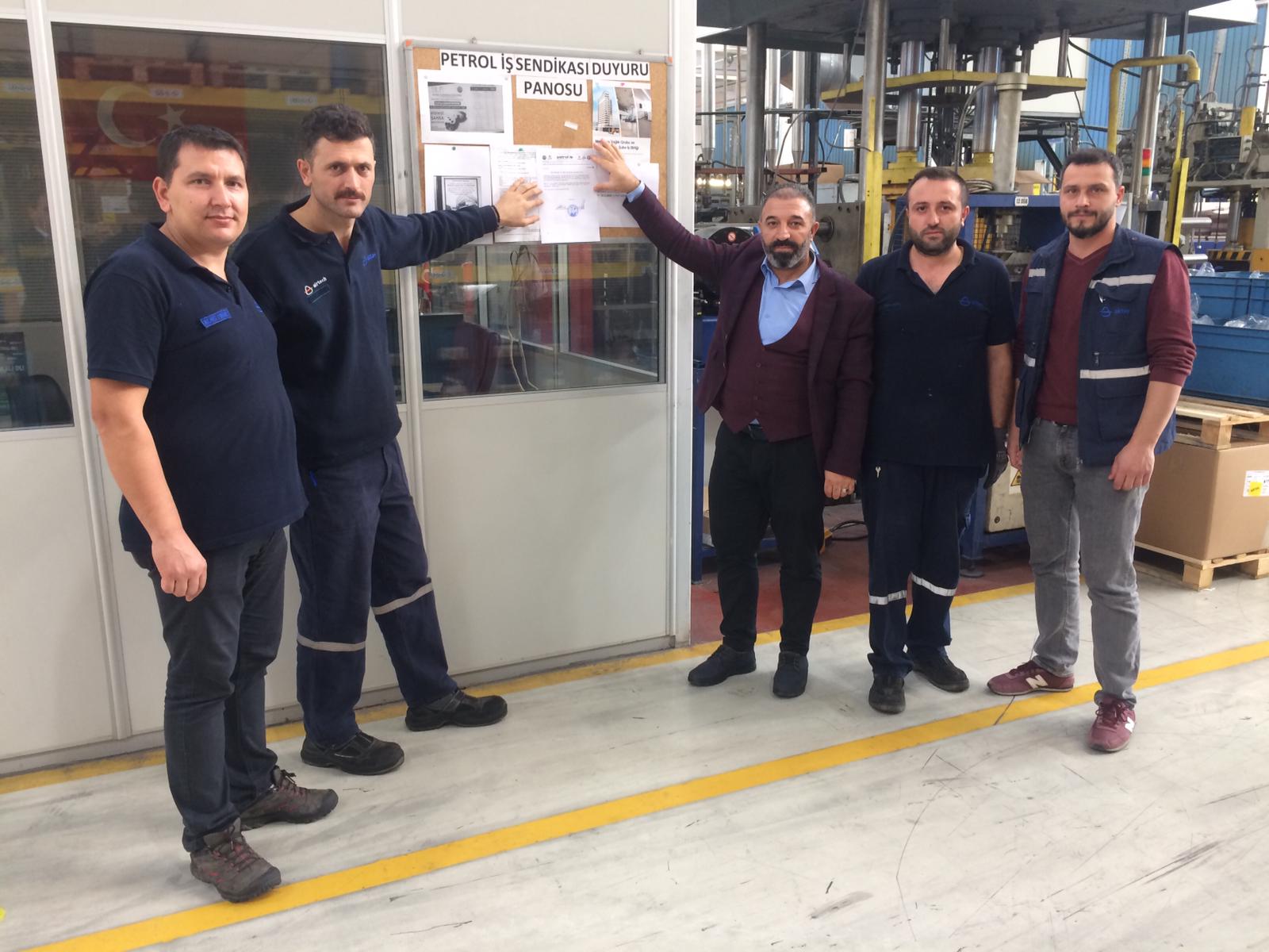7 Kasım Çarşamba günü Bursa Şubemize bağlı AKTAŞ HAVA SÜSPANSİYON SİSTEMLERİ SAN.TİC.A.Ş. iş yerinde grev kararı ve grev uygulama tarihi ilanı asıldı. Bursa Şube Başkanımız Erhan Yakışan, Başkan Yardımcısı Hüseyin Gürkaş ve iş yeri temsilcilerimiz ile birlikte grev kararı ve grev uygulama tarihi ilanını iş yerinin ilan panosuna astı. Sözleşme görüşmelerinde sonuç çıkmaması halinde 19 Aralık Çarşamba günü greve çıkılacaktır.