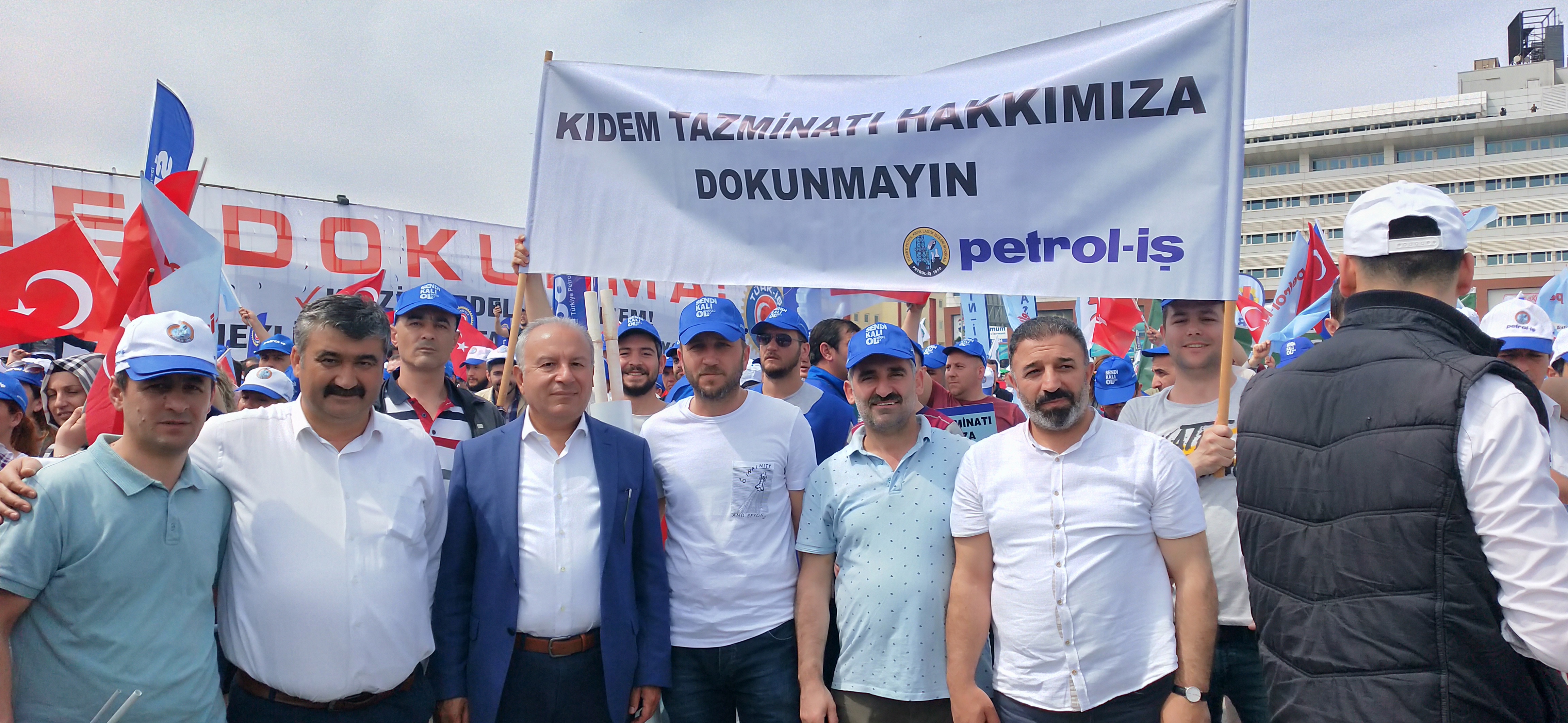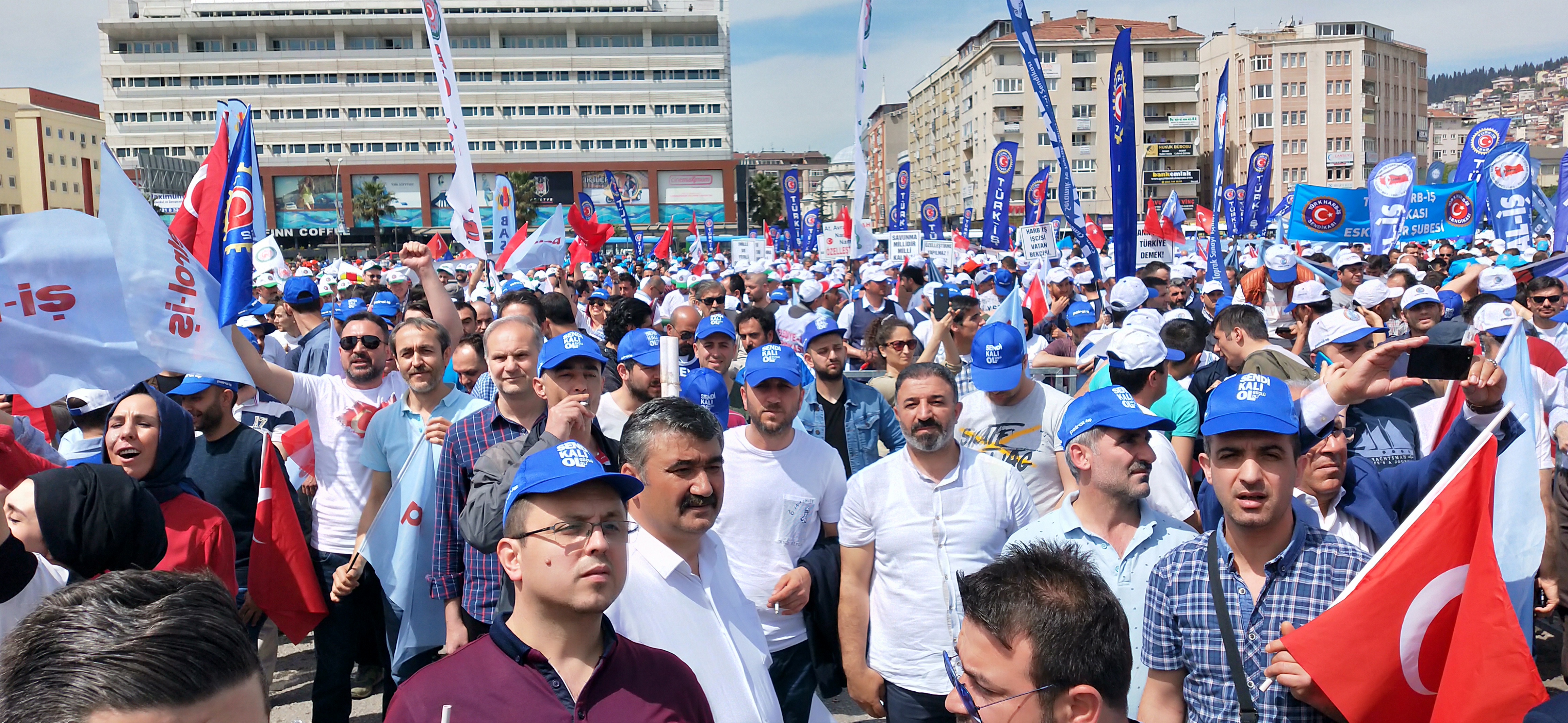 Bursa Şubemiz 1 Mayıs İşçi Bayramı kutlamalarına, Şube Başkanımız Erhan Yakışan, Başkan Yrd. Hüseyin Gürkaş, Başkan Yrd. Mali Ersin Birgül, Merkez Disiplin Kurulu Başkanı Hasan Akçay, Şube Yönetim Kurulu, Denetim kurulu, disiplin kurulu, örgütlü olduğumuz işyeri temsilcilerimiz ve 500’ü aşkın üyemizin katılımı ile Türk-İş Konfederasyonumuzun belirlediği Kocaeli Milli İrade meydanında katıldı. Katılım sağlayan üyelerimizi ilk önce Orhangazi Oksijen Avm de toplayarak bir konuşma yapan başkan Yakışan, 1 Mayıs’ın önemini ve bu 1 Mayıs’ın en önemli konularının Kıdem tazminatı ve işçi üzerinde en büyük yük olan vergi adaletsizliği olduğunu dile getirdi. Konuşmasında kıdem tazminatıma dokunma vurgusu yaparak hükümetin ellerini işçinin en büyük dayanağı olan kıdem tazminatı hakkından çekmesi gerektiğini ve bir daha açılmamak üzere gündemden kaldırmasını, işçinin üzerinde en büyük yük olan vergi adaletsizliğini bir an önce düzenlemesi gerektiğini vurgulayarak üyelerimize göstermiş oldukları yoğun katılımdan dolayı teşekkür ederek toplu bir şekilde miting alanına hareket edildi.