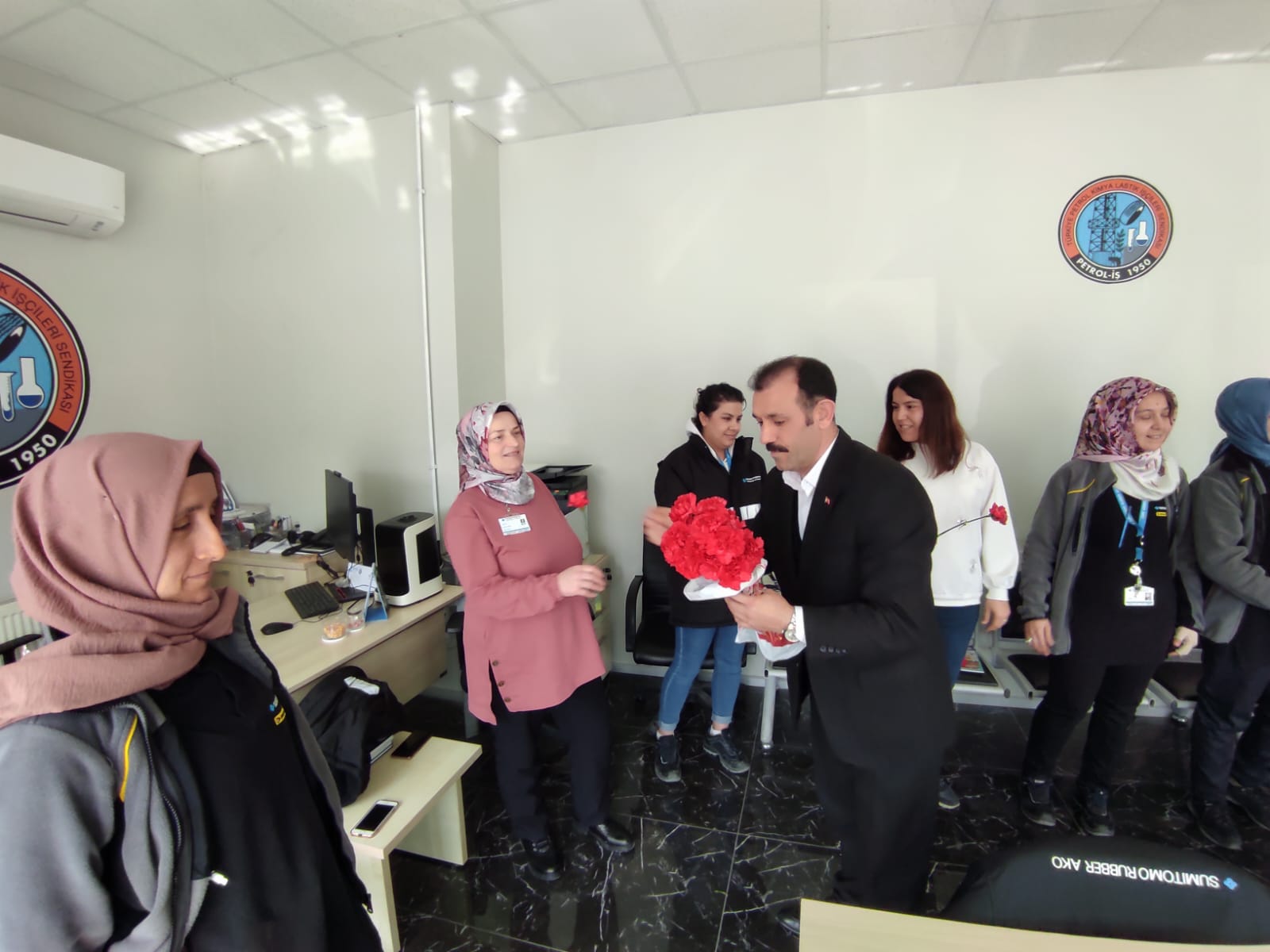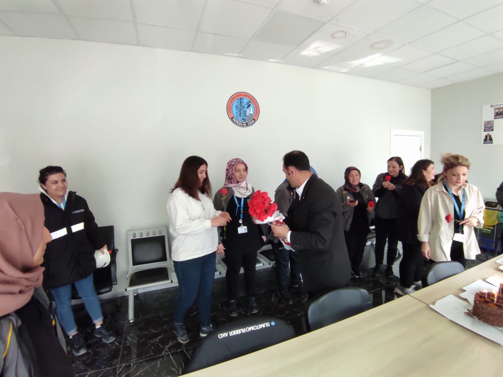 Sendikamız Çankırı Şubesinde 8 Mart Kadınların Uluslararası Mücadele ve Dayanışma Günü örgütlü olduğumuz Sumitomo işyerinde kutlandı. Çankırı Şube Yöneticilerimiz işyerini ziyaret ederek burada çalışan kadın üyelerimizle bir araya geldi. Günün anlamına yönelik yapılan sohbetin ardından, üyelerimize 8 Mart anısına karanfil hediye edildi.