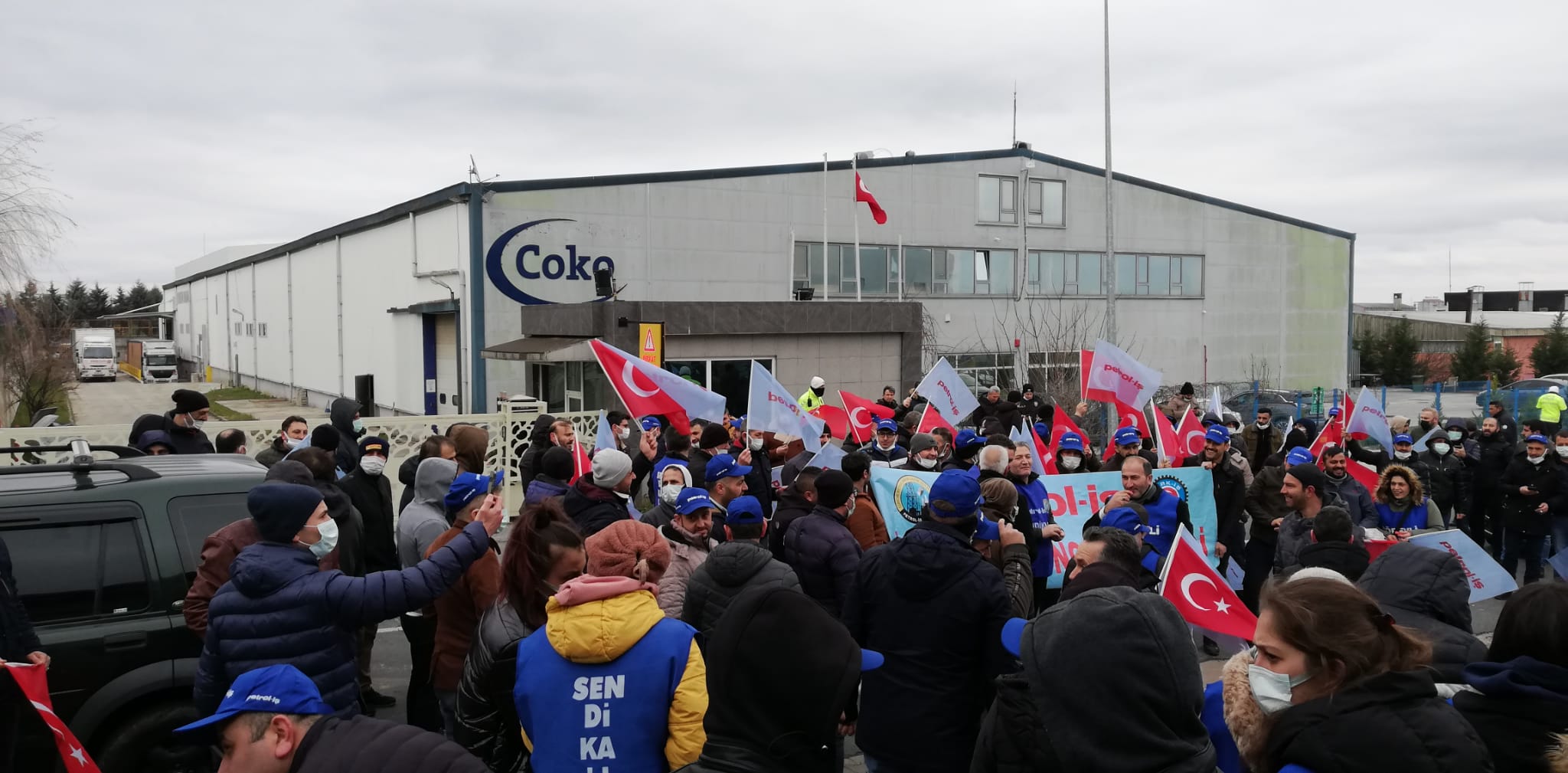 Bugün, yaklaşık 400 işçinin çalıştığı fabrikada hızlı bir şekilde örgütlenme faaliyeti yürütülürken, işyeri yönetiminin işçilerin sendikamız çatısı altında örgütlenmeye başladığını fark etmesi üzerine 17 üyemiz 23 Şubat tarihinde işten çıkarıldı. Bu sayı daha sonra 19 oldu. Çoğunluğu performans düşüklüğü sebep gösterilerek işten atılan işçiler arasında 7 yıllık Coko-Werk çalışanı da mevcut.