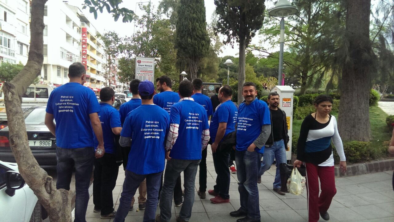 İzmir Şubemiz kapsamı alanında Manisa Organize Sanayi Bölgesinde faaliyet gösteren Çukurova Kimya San. A.Ş. iş yerinde 26 üyemiz tazminatsız işten çıkarılmıştır. Kamuoyunun dikkatine çekmek için işten çıkarılan arkadaşlarımız şubemizin hazırlatmış olduğu tişörtlerle Manisa caddelerinde dolaşarak esnaf ve Manisa halkıyla buluşmuştur. Desteklerinden dolayı tüm Manisa halkına teşekkürü borç biliriz.