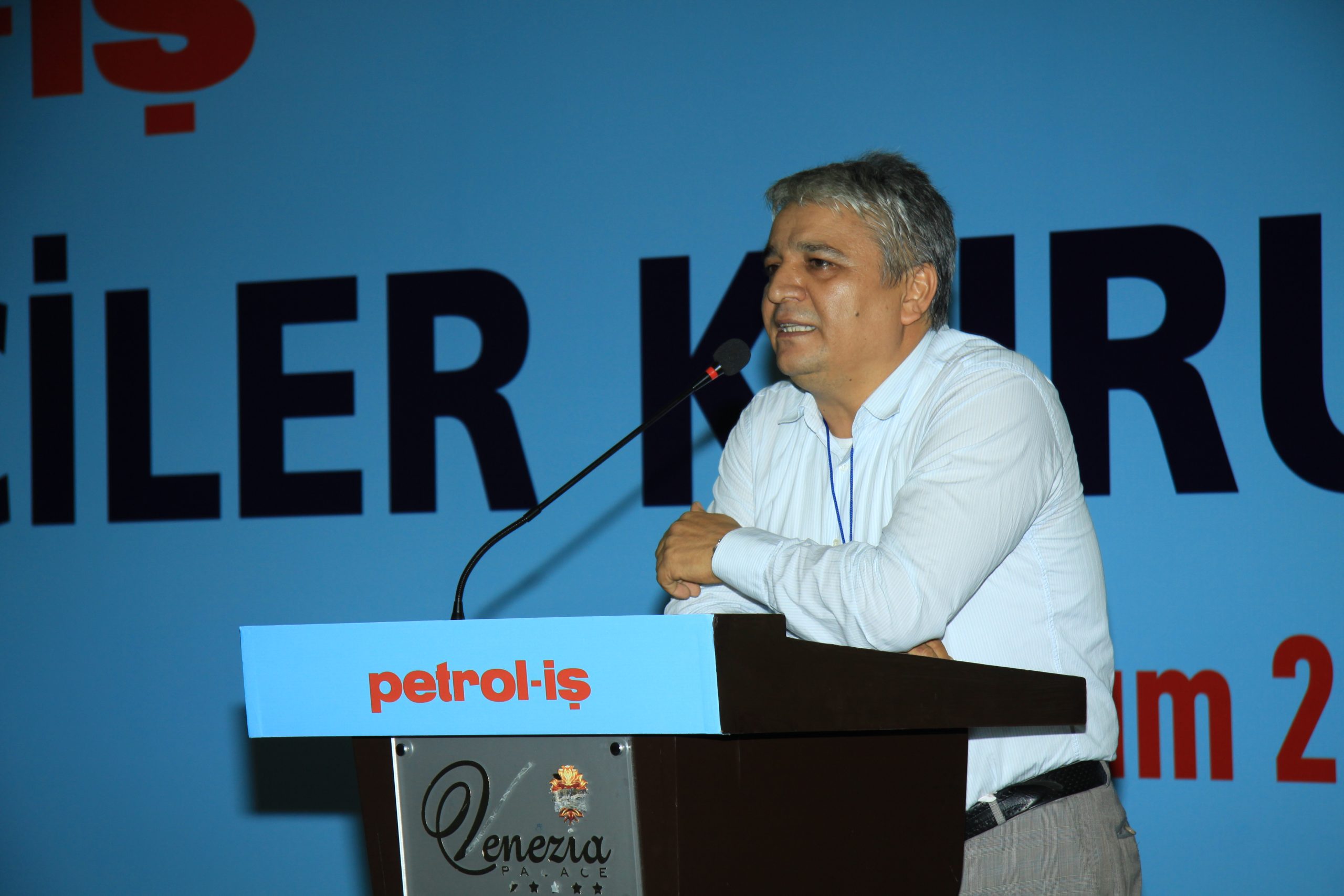 Genel Sekreterimiz daha sonra temsilciler kurulunun açılış konuşmasını yapmak üzere Genel Başkanımız Mustafa Öztaşkın’ı kürsüye davet etti. Sendikamızın ekonomik, demokratik ve özgürlükler mücadelesi çerçevesinde faaliyet gösterdiğine dikkat çeken Öztaşkın, eşitlik, barış ve özgürlüğe inanmayanların sendikacı iyi olamayacağını da vurgu yaptıktan sonra demokrasi savunusunun sendikacılık için olmazsa olmaz olduğuna değindi: “Demokrasi sendikaların yaşam kaynağıdır, biz darbelere ve anti- demokratik uygulamalara karşıyız. Çünkü sendikacı aynı zamanda ve öncelikle iyi bir demokrat olmalıdır. İşyerinde, ülkesinde, dünyada gerçek demokrasi bizim ellerimizle kurulacaktır. Hepinizi gerçek demokratlar olmaya çağırıyorum” dedi.