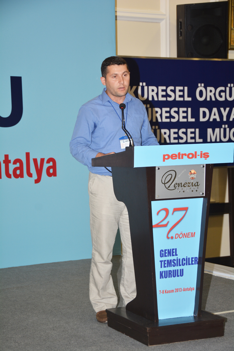 Petrol-İş Sendikası 27. Dönem Genel Temsilciler Kurulu 8 Kasım Cuma günü sona erdi. Temsilciler Kurulu Perşembe günü saat 10.15’de Genel Başkanımız Mustafa Öztaşkın’ın açılış konuşması ile başladı. Aynı gün 16 şubeden önceden belirlenmiş temsilcilerin konuşmalarıyla devam eden temsilciler kurulunun, ikinci gününde e- devlet uygulaması seminerinden sonra eğitim servisi uzmanlarımız sendikadaki eğitimleri anlattılar. İki gün boyunca akşam saatlerinde şube etkinlikleri ile şenlenen temsilciler kurulu, genel başkanımızın kapanış konuşması ile son buldu.