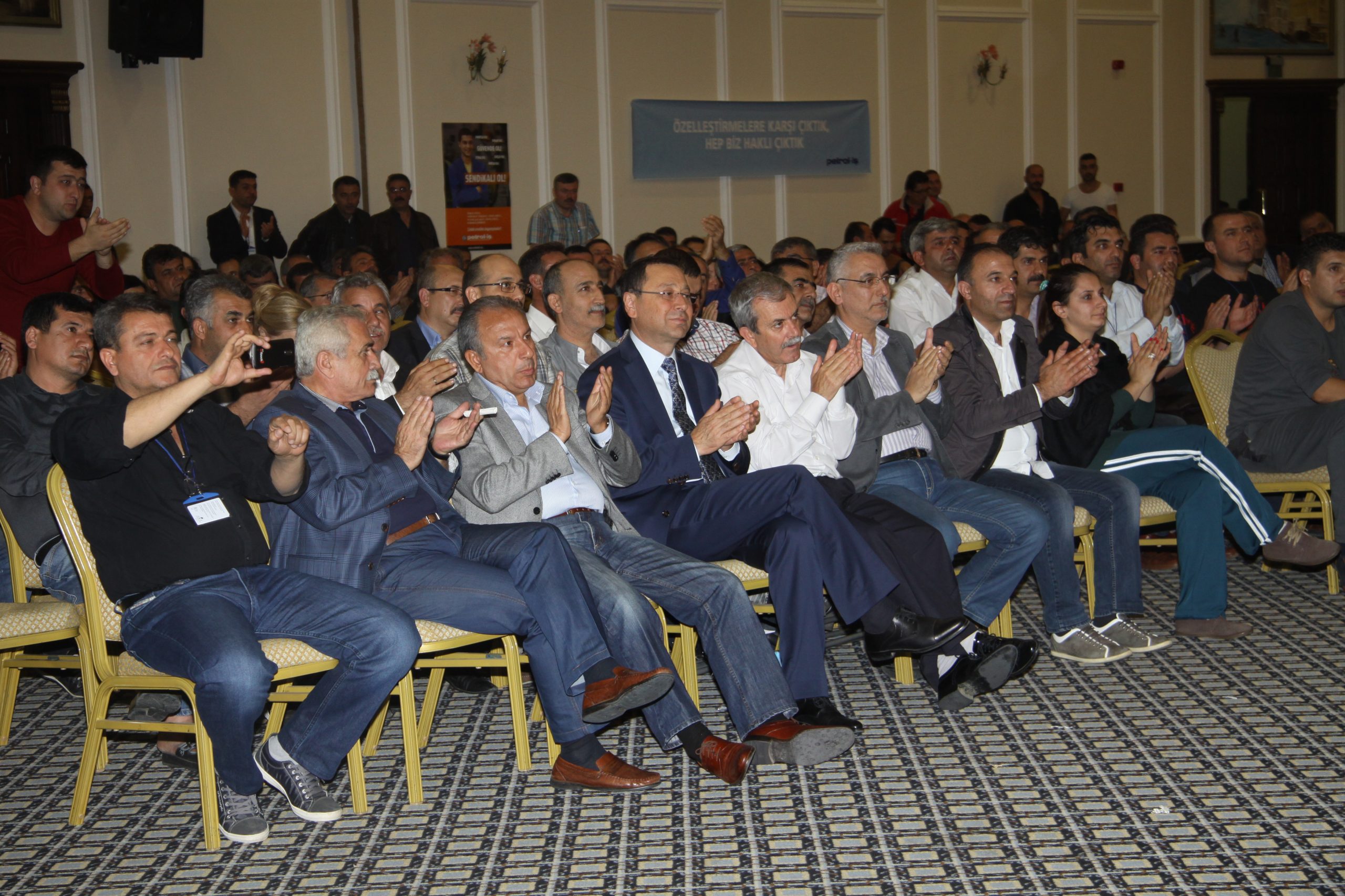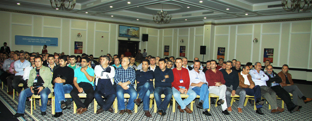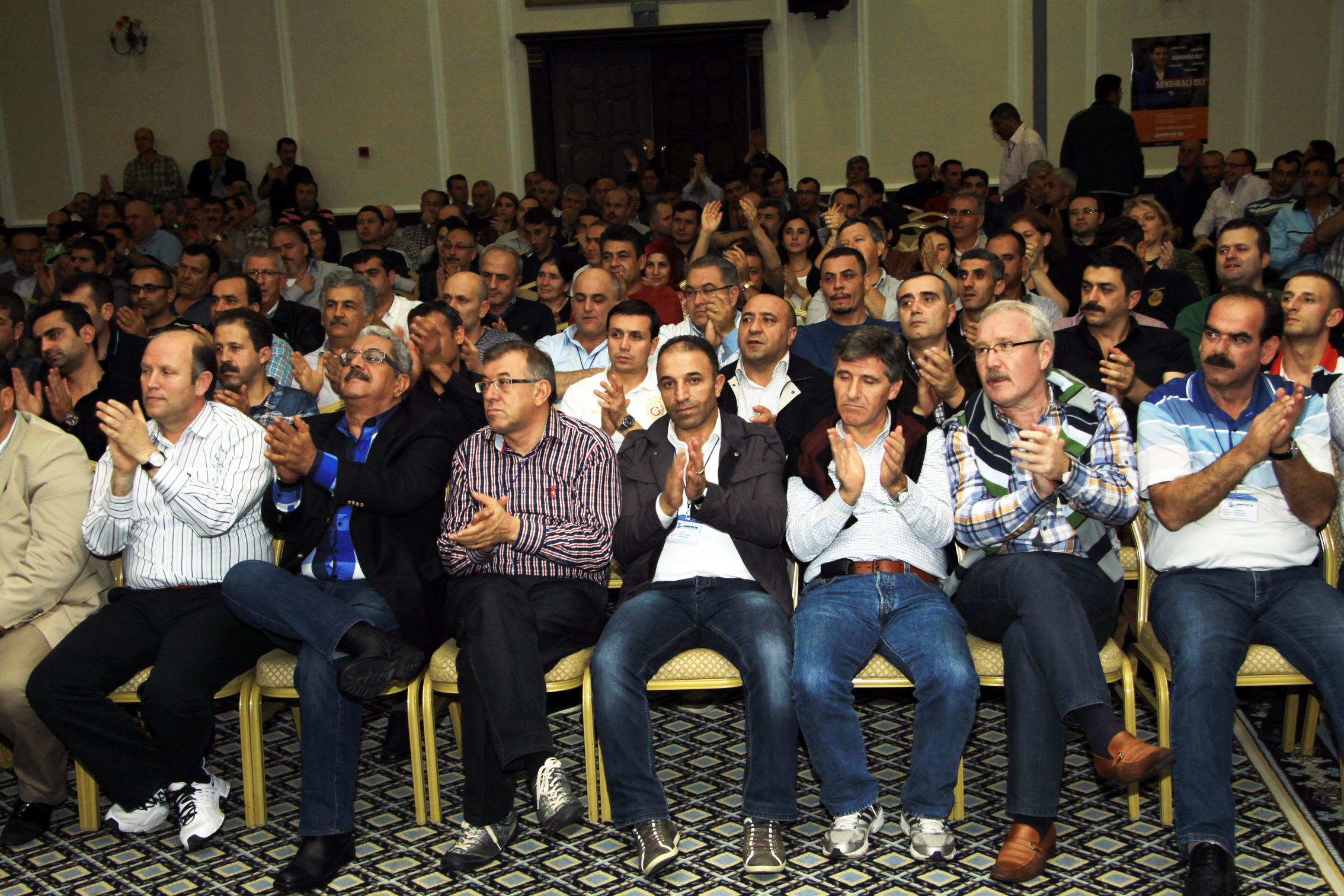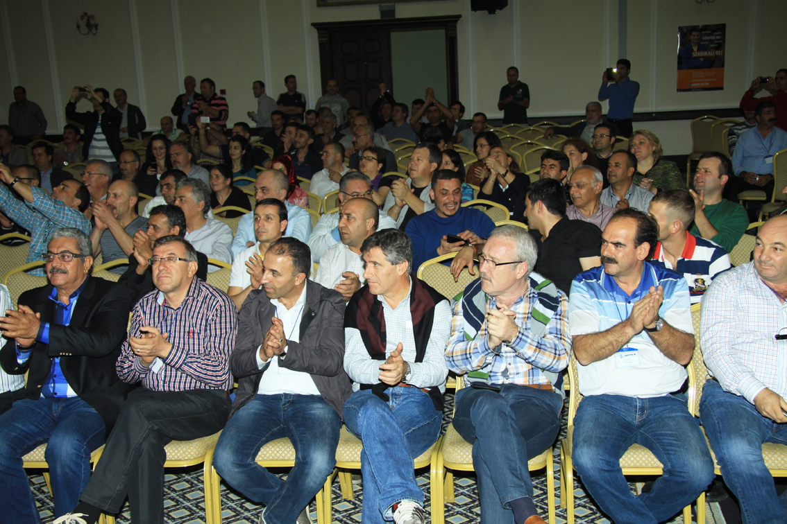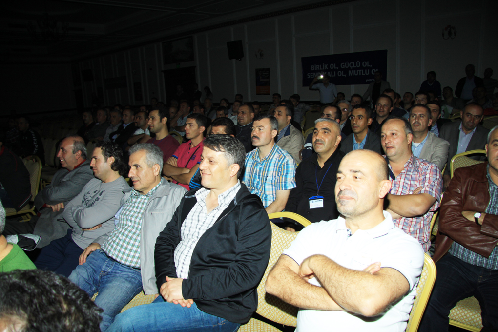 Genel Başkanımızın açılış konuşmasının ardından, Petrol-İş Sendikası’nın toplam 16 şubesinden gelen temsilcilerimiz, şubeleri adına konuşma yaptılar. Temsilcilerimizin konuşmalarında vurgulanan konuların başında kıdem tazminatı hakkı yer aldı. Kimse kazanılmış haklarını geri vermek niyetinde değildi. Ortak tutum kıdem tazminatının kırmızı çizgimiz olduğu doğrultusundaydı.