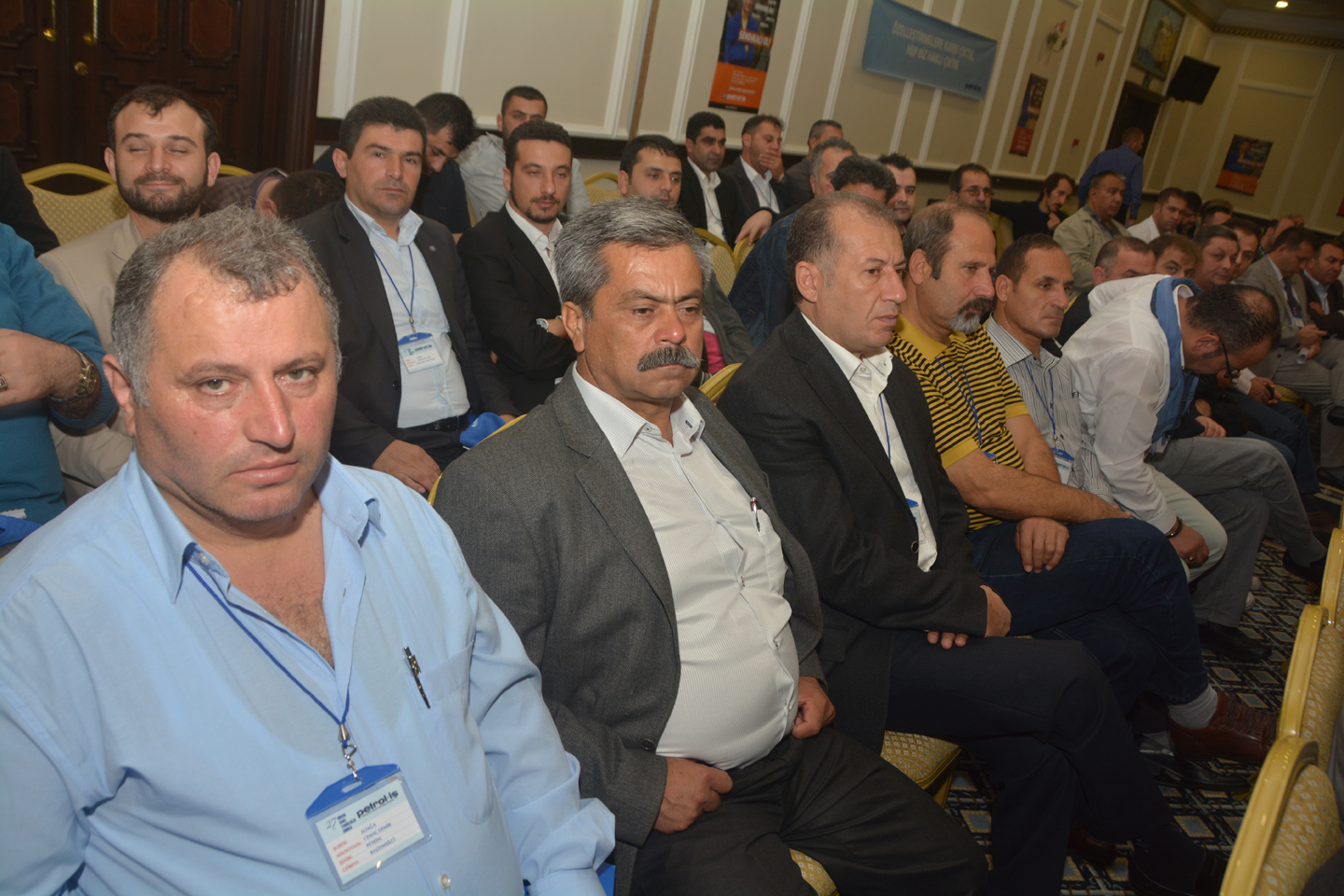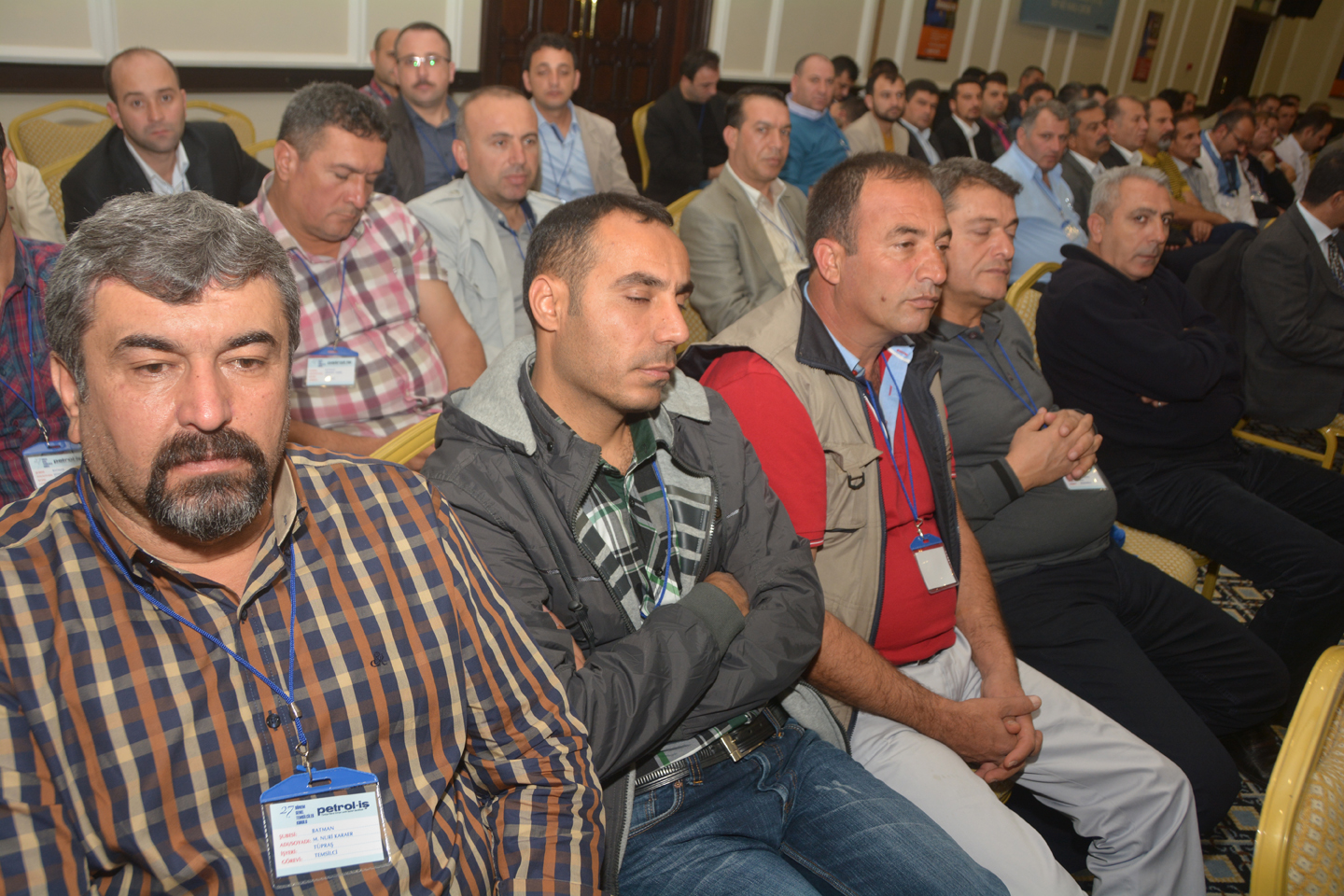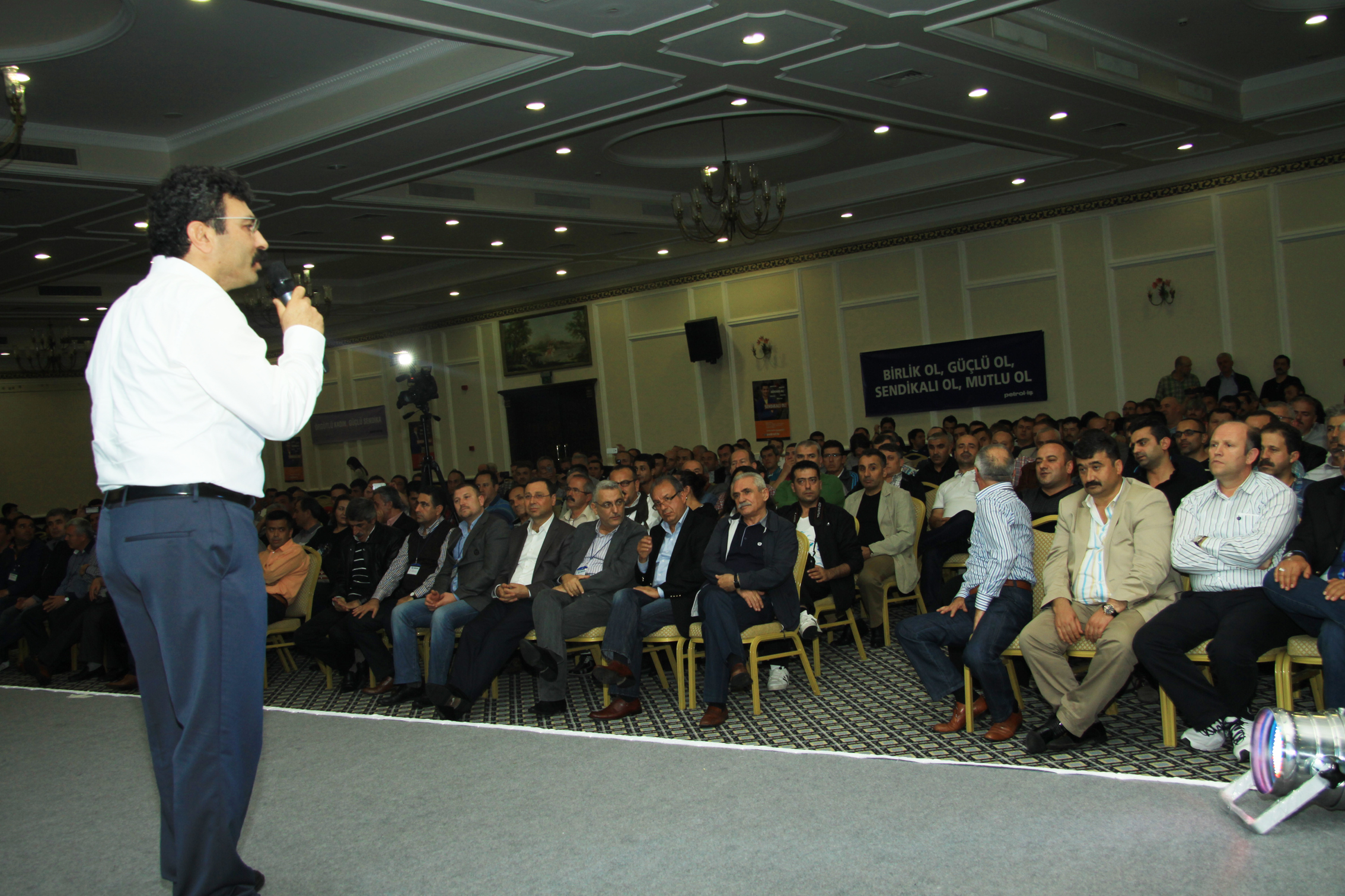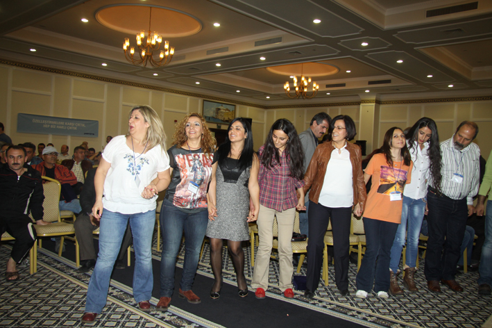 Genel Başkanımızın açılış konuşmasının ardından, Petrol-İş Sendikası’nın toplam 16 şubesinden gelen temsilcilerimiz, şubeleri adına konuşma yaptılar. Temsilcilerimizin konuşmalarında vurgulanan konuların başında kıdem tazminatı hakkı yer aldı. Kimse kazanılmış haklarını geri vermek niyetinde değildi. Ortak tutum kıdem tazminatının kırmızı çizgimiz olduğu doğrultusundaydı.