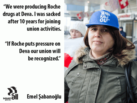Deva işyerlerine her ne pahasına olursa olsun sendika sokmamak için fütursuz bir tavırla ulusal yasaları ve uluslararası çalışma normlarını çiğneyen Philipp Haas ve şirket yönetimi Türkiye’de kötü bir üne sahip. İsviçre’nin Basel şehrinde yapılan Roche Genel Kurulu’ndaki sendika heyetinde, Petrol-İş’e üye olduğu için 31 arkadaşıyla birlikte işten atılan Emel Şabanoğlu da yer alıyordu.