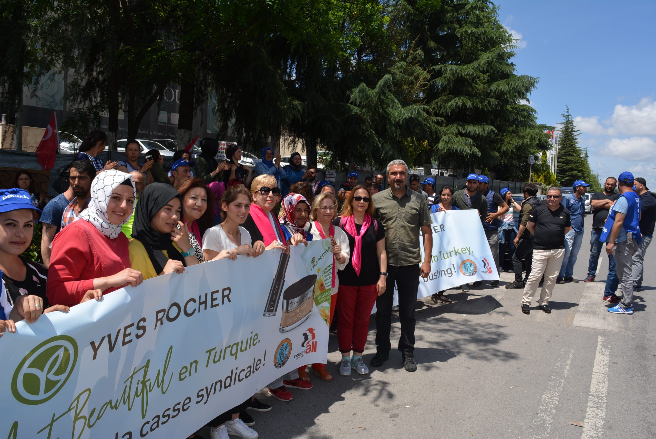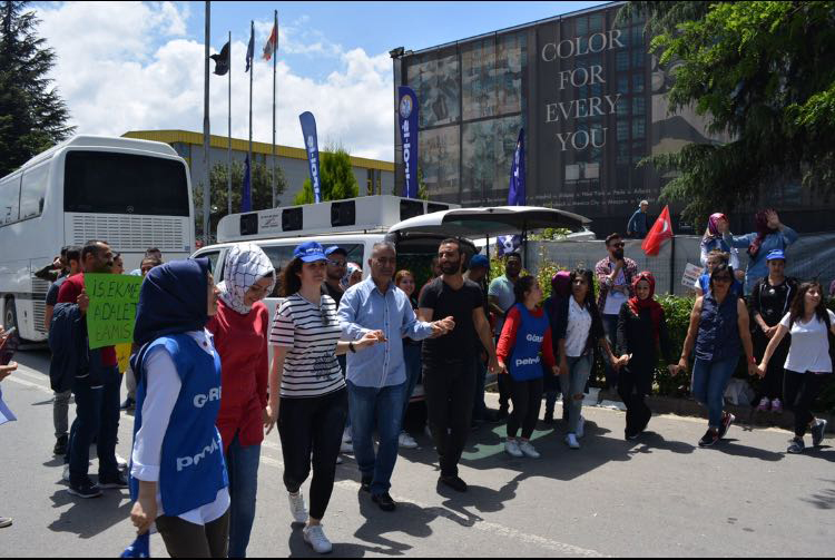 Gebze Şubemizde örgütlenen ve örgütlendikleri için işten atılan Flormar işçileri, işyeri önündeki mücadelelerine kesintisiz ve coşkuyla devam ediyorlar. Direnişin 17. gününde Genel Örgütlenme ve Eğitim Sekreterimiz Mustafa Mesut Tekik Gebze’de Flormar önündeydi. Tekik, Flormar işçilerine hitaben yaptığı konuşmada, Flormar direnişini sonuna kadar götüreceklerini ve her zaman işçilerle bir arada olacaklarının  altını çizdi. İşten atılan tüm işçilerin geri alınana kadar mücadeleyi  yaygınlaştırarak sürdürüleceğini belirten Tekik, işverene de çağrı yaptı. Yaptığı çağrıda işten atılan tüm işçilerin işe geri alınması ve işçilerin sendikalı olma iradesine saygı duyulması halinde Petrol-İş’in diyaloğa açık olduğunu belirtti.