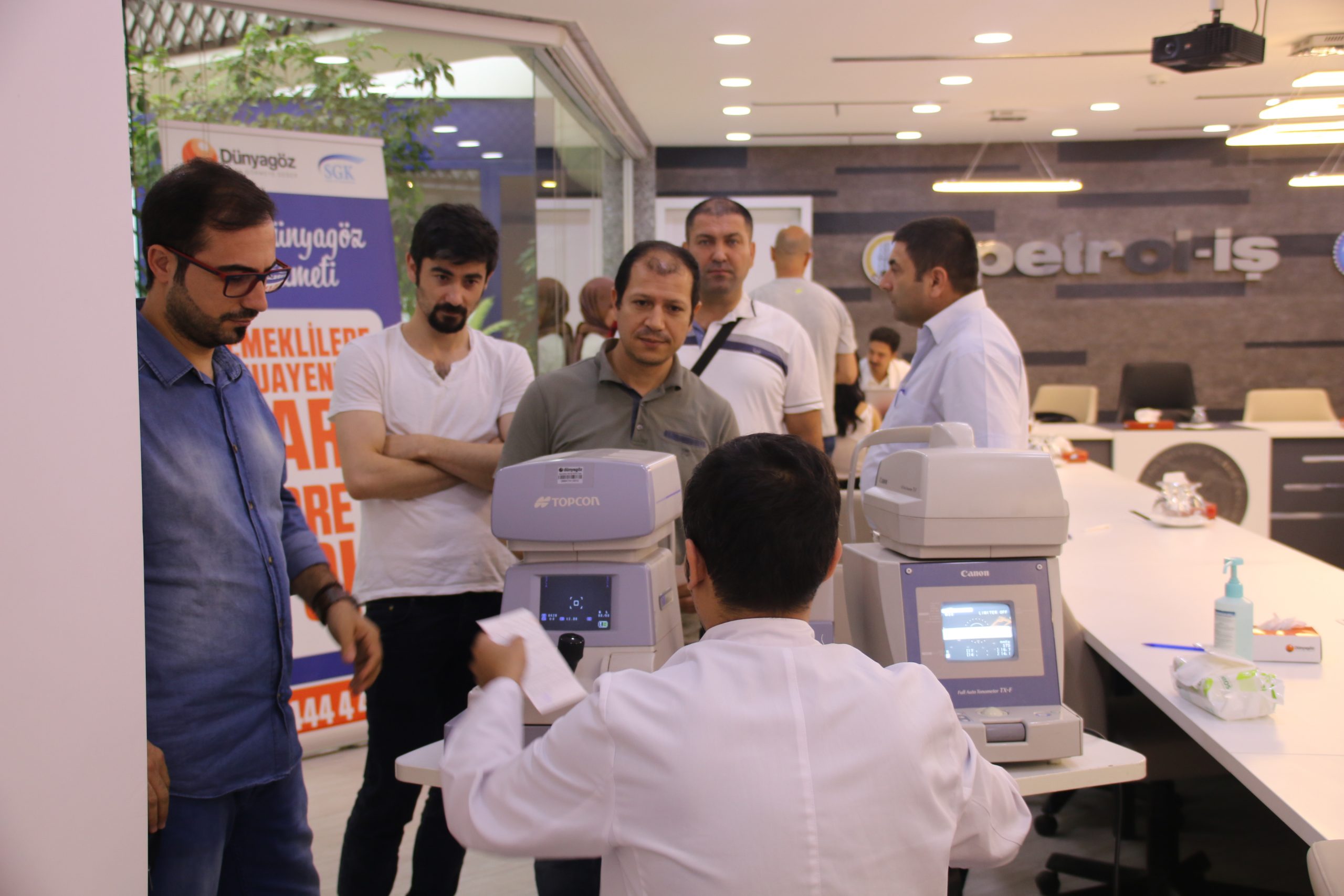 Sendikamızın anlaşmalı kurumlarından olan Dünya Göz Hastanesinden gelen uzman ekip tarafından üyelerimize ve genel merkez çalışanlarımıza göz taraması yapıldı. 4 Ağustos Cuma günü yapılan göz taraması genel merkezimizde gerçekleştirildi.