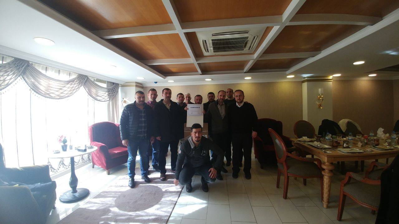 Düzce Şube Başkanımız Muzaffer İşık, Şube Başkan Yardımcılarımız Oktay Bozdemir ve  Kadir Akyıldız, ve temsilcilerin katılımıyla 7 Şubat Salı günü bir ödül töreni yapıldı. Ödül töreninde Petrol-İş Sendikası Marş Yarışması’nda dereceye giren Düzce Şubemizin örgütlü olduğu Standard Profil’de çalışan üyemiz Emre Özcan’a, plaket ve ödülü Düzce Şube Başkanımız tarafından verildi.
