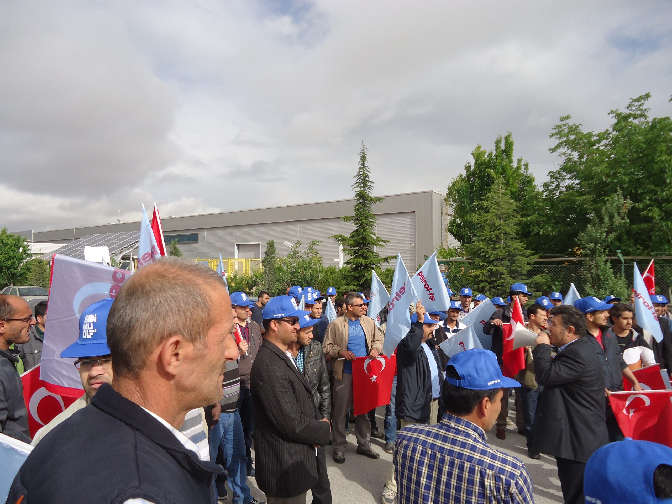 Üretimin kesintisiz biçimde devam ettiği işyerinde, işyerinde istenmeyen olayların yaşanmasına engel olmak için sendika yetkilileri tarafından vardiyası sona eren üye işçiler fabrika dışına çıkartılmış, baskı ve tehditlere karşı fabrika önünde akşam saatlerine kadar protesto eylemi sürdürülmüştür.
