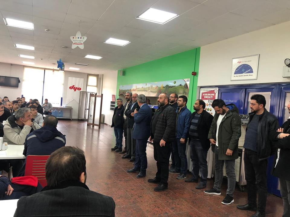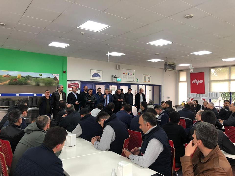 Gebze ve İzmir Şube Yöneticilerimiz 17 Nisan Çarşamba günü örgütlü oldukları DYO Boya işyerini imzalanan toplu iş sözleşmesinin ardından ziyaret ettiler. Ziyaret esnasında yöneticilerimiz üyelerimizle sendikal gündem ve toplu iş sözleşmesi hakkında bilgilendirmelerde bulundular.Şube Başkanlarımız imzalanan sözleşmenin tüm üyelerimize hayırlı olması temmenisinde bulundular.