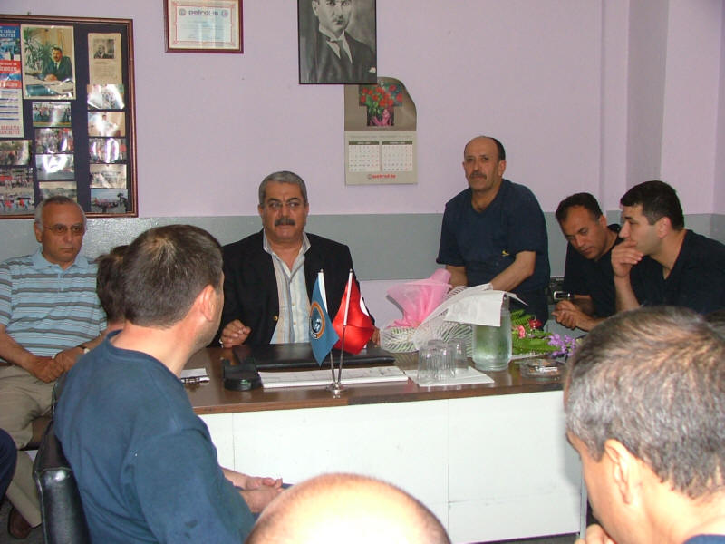 DYO MATBAA MÜREKKEPLERİ A.Ş. İŞYERİ ZİYARETİ19 Nisan 2007 tarihinde anlaşma ile sonuçlanan TİS sonrasında 9 Mayıs 2007 tarihinde işyerinde üyelerimizle yapılan toplantıda, üyelerimiz şube başkanımızı çiçekle karşılamıştır.Şube başkanımız A.Gani GÜNDOĞDU üyelerimize TİS yetki prosedürü süresince ve sonrasında sendikanın almış olduğu kararlar arkasında sonuna kadar destek oldukları için teşekkür etti.