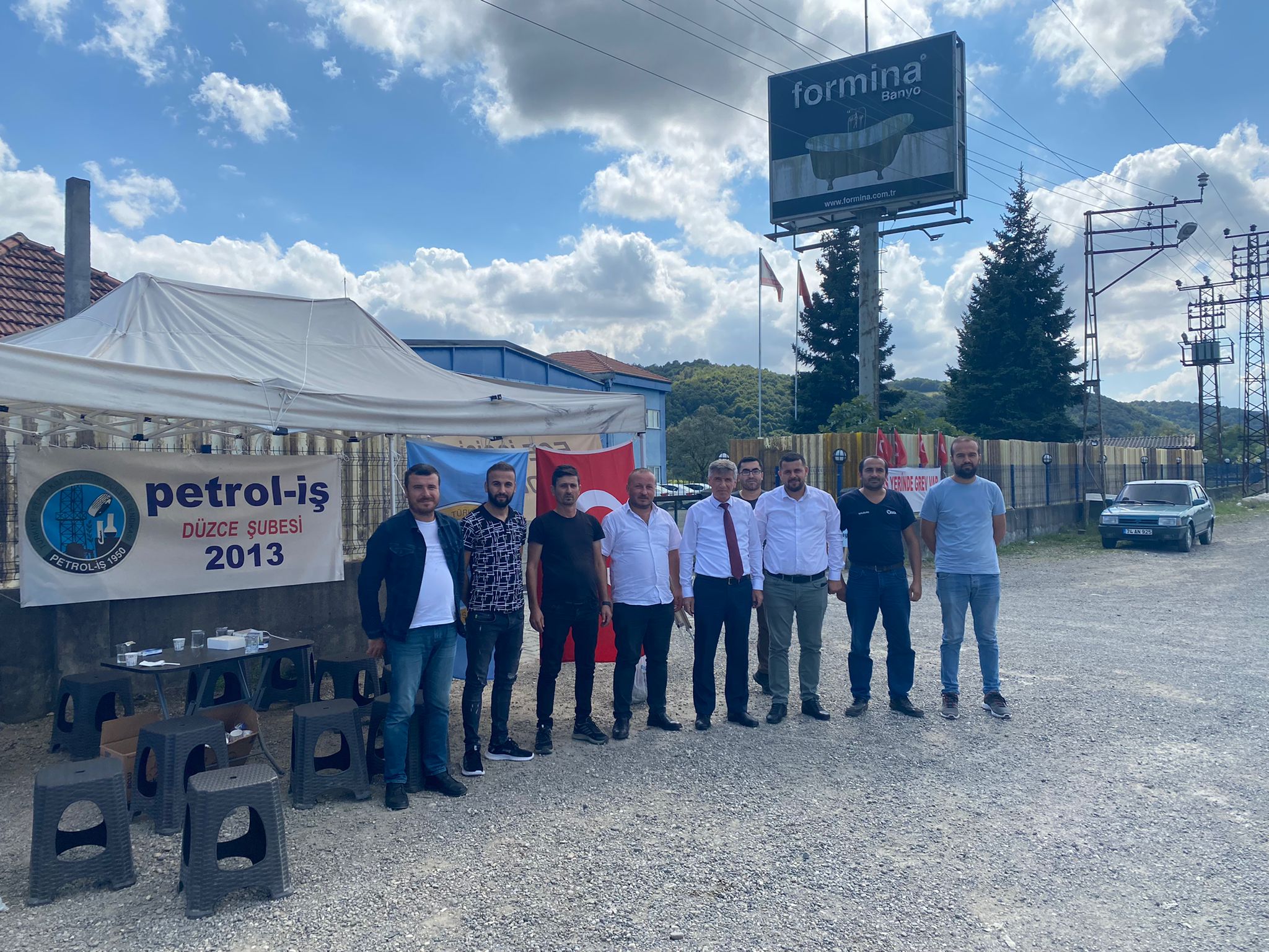 19 Eylül Pazartesi günü sendikamız Genel Başkanı Süleyman Akyüz grev alanını ziyaret ederek Şube Yöneticilerimiz ve üyelerimizle biraraya geldi. Ziyarette, grevin seyrine ilişkin fikir alışverişinde bulunularak, başarıya ulaşması için mücadelenin sürdürüleceğine vurgu yapıldı. Genel Başkanımız Akyüz, Petrol-İş Sendikası’nın tüm örgütüyle Ece Seramik işçisinin yanında olduğunu bir kez daha yineledi.