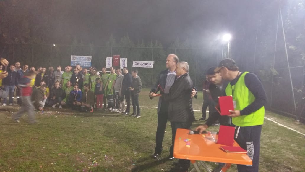 Petrol-iş Kocaeli Şube Başkanımız Salih Akduman, Başkan Yardımcılarımız Nesimi Yetişoğlu ve Tekin Kara’nın da hazır bulunduğu ve Turnuva Şampiyonunun belirlendiği maç sonunda Sendikamız adına kısa bir konuşma yapan Şube Başkanımız Salih Akduman; Turnuvanın gerçekleşmesini sağlayan başta işyeri temsilcilerimiz olmak üzere emeği geçen herkese teşekkür etti. Turnuvaya katılan takım oyuncularını da göstermiş oldukları centilmence davranışlardan dolayı kutladı. Turnuvanın 1. 2. ve 3.olan takımlarına sendikamız adına çeşitli hediyeler verildi.