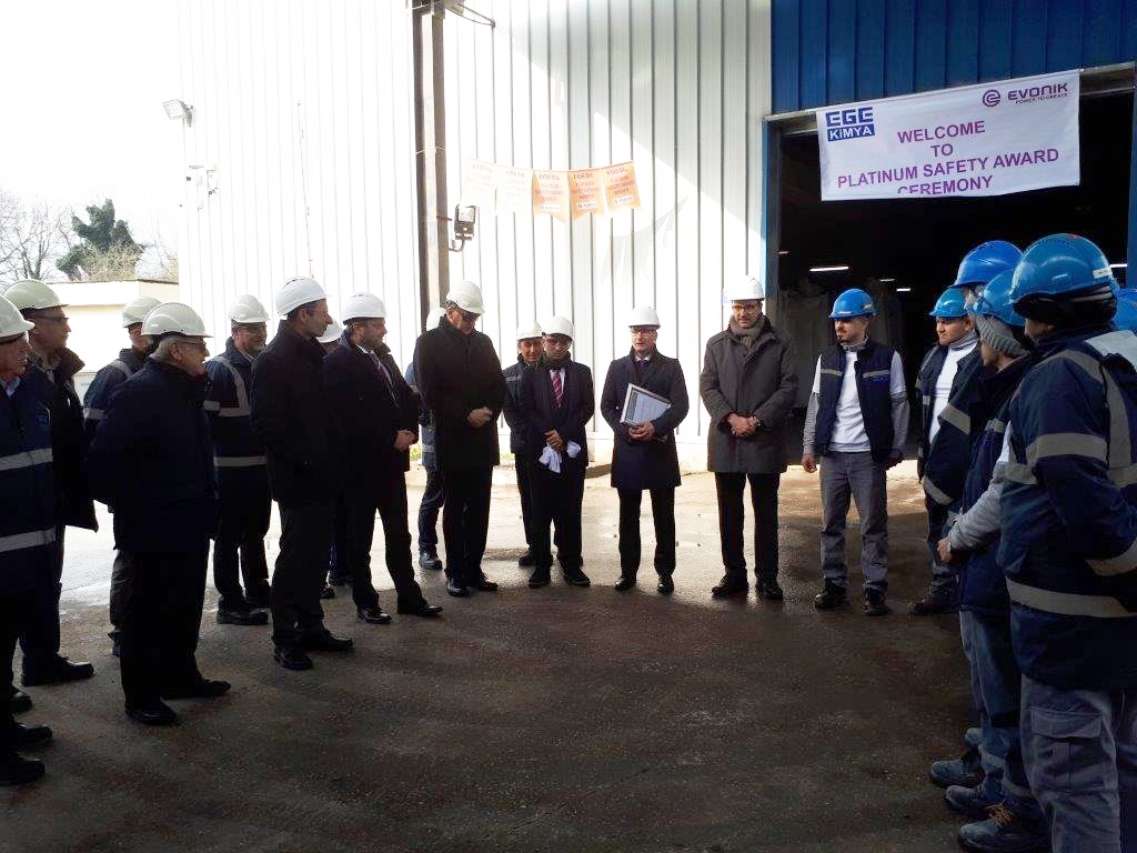 Kocaeli Şubemizin örgütlü olduğu Ege Kimya’nın Alman ortağı olan EVONİK RE tarafından Ege-SİL Kimya çalışanlarına PLATİNİUM ödülü verildi.Daha önce Ege Sil Kimya işyerinde 10 yıl iş kazası meydana gelmemesi nedeniyle ALTIN ödülü alan Ege-Sil Kimya çalışanları, işyerinde 15 yıldır iş kazası yaşanmaması üzerine PLATİNİUM ödülü aldılar. EVONİK RE adına Yönetim Kurulu Başkanı Andreas Fischer tarafından verilen PLATİNİUM ödülünü Ege-Sil Kimya çalışanları adına işyeri temsilcilerimize verildi.