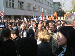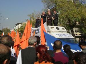 “Emekçileri Karşısına Alan Bedel Öder”11.11.2004 Sosyal Sigortalar Kurumu’na ait Sağlık Birimlerinin Sağlık Bakanlığı’na devredilmesi ve Köy Hizmetleri Genel Müdürlüğünün kapatılmasına karşı Emek Platformunun aldığı eylem kararları uygulanmaya devam ediyor. 11 Kasım 2004 Perşembe günü Emek Platformu bileşenleri SSK hastanelerinin bulunduğu tüm illerde hastanelere sahip çıkma ziyaretleri yaparak basın açıklamasında bulundular. Ankara’da, Konur Sokaktaki “SSK Yenişehir Polikliniği” önünde yapılan basın açıklamasında, Konfederasyon Başkanımız Sayın Salih KILIÇ; “Emekçileri karşısına almakla hükümetin büyük hata yaptığını, geçmişteki hükümetlerin bunun bedelini ağır ödediklerini, AKP Hükümetinin de bu bedeli çok ağır ödeyeceğini söyledi.”Emekçiler “20 Kasım’da Kızılay’dayız.” sloganı atarak dağıldılar. Saygılarımızla, Petrol-İş Sendikası Ankara Şubesi Yönetim Kurulu Adına Mustafa ÖZGEN Başkan