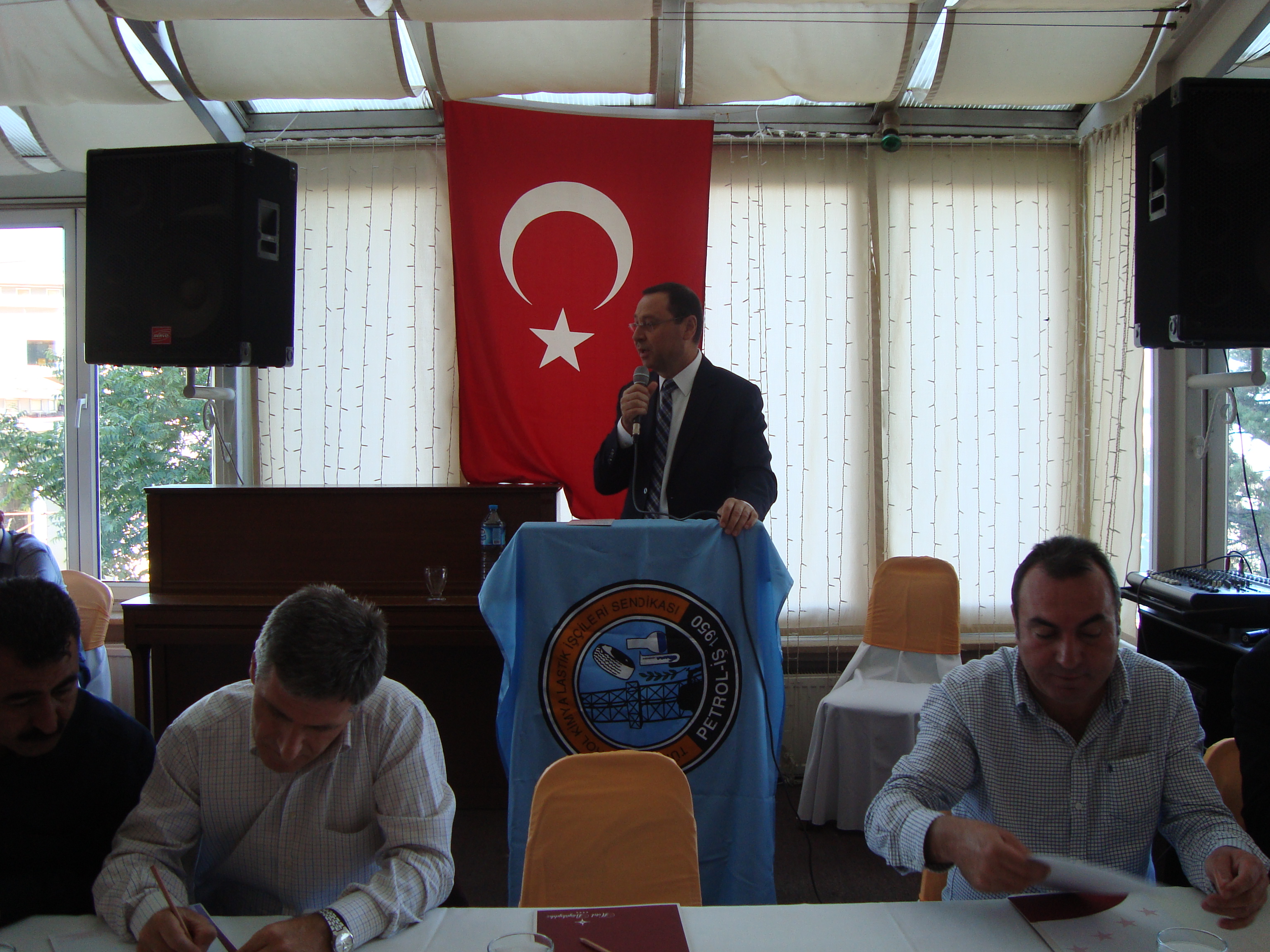 Bursa Şube’nin Genel Kurulu’nda bir konuşma yapan Genel Başkanımız Mustafa Öztaşkın Sendikalar Yasası’ndaki tutumu nedeniyle Türk-İş yönetiminin ihanet içinde olduğunu söyledi. Türk-İş yönetimini eleştiren Öztaşkın, Sendikalar ve Toplu İş Sözleşmesi Yasa Tasarısının kapalı kapılar ardında imzalanan bir protokol ile hazırlandığını bildirdi.