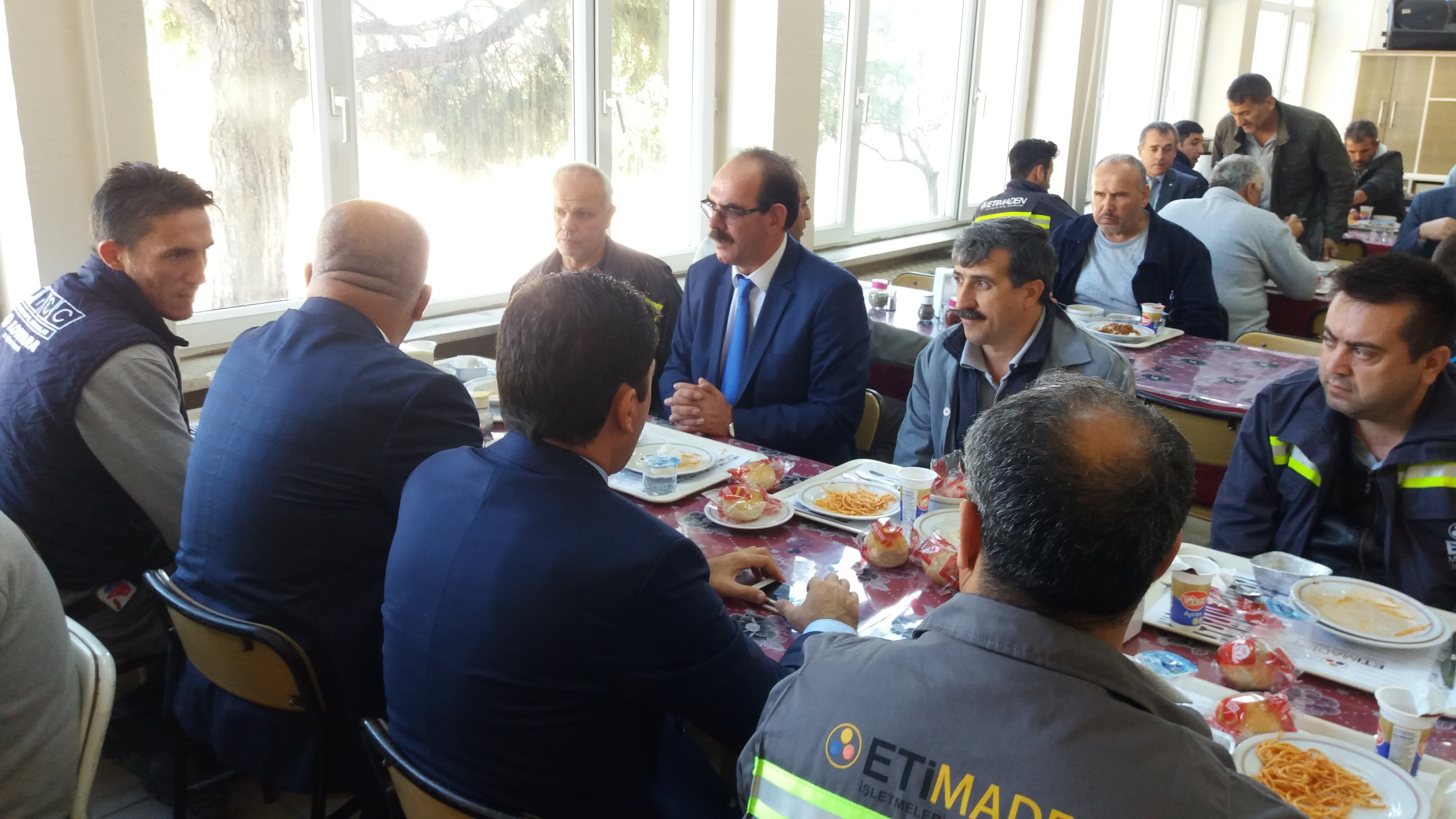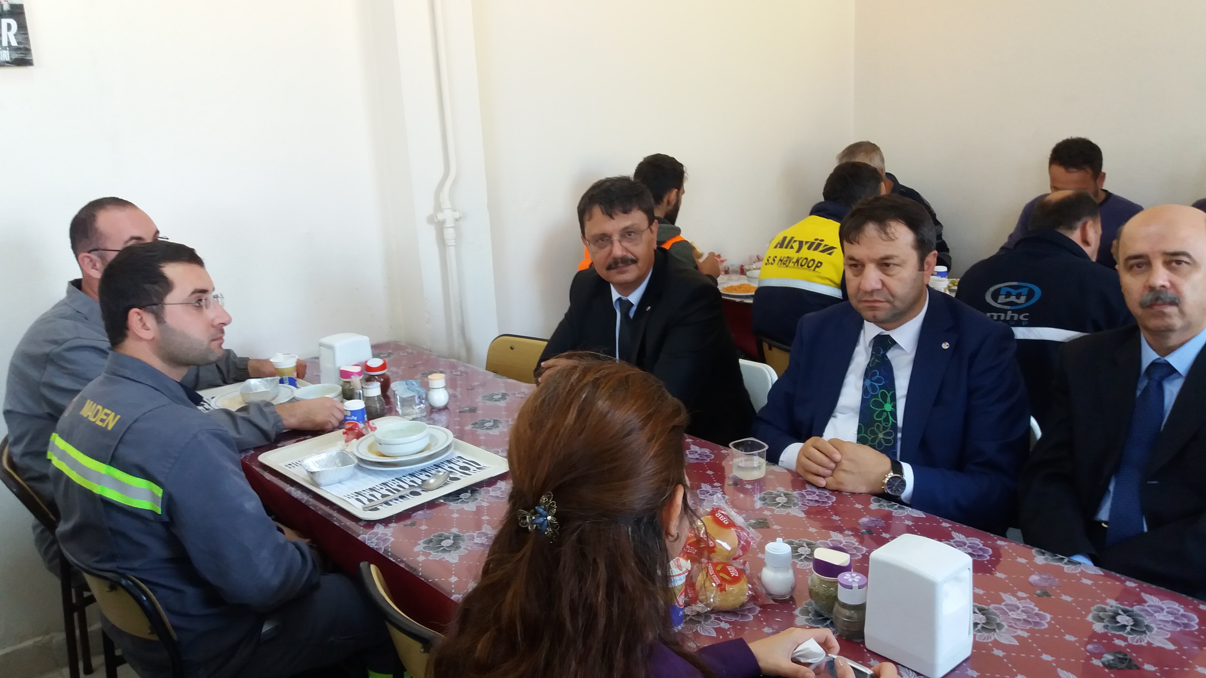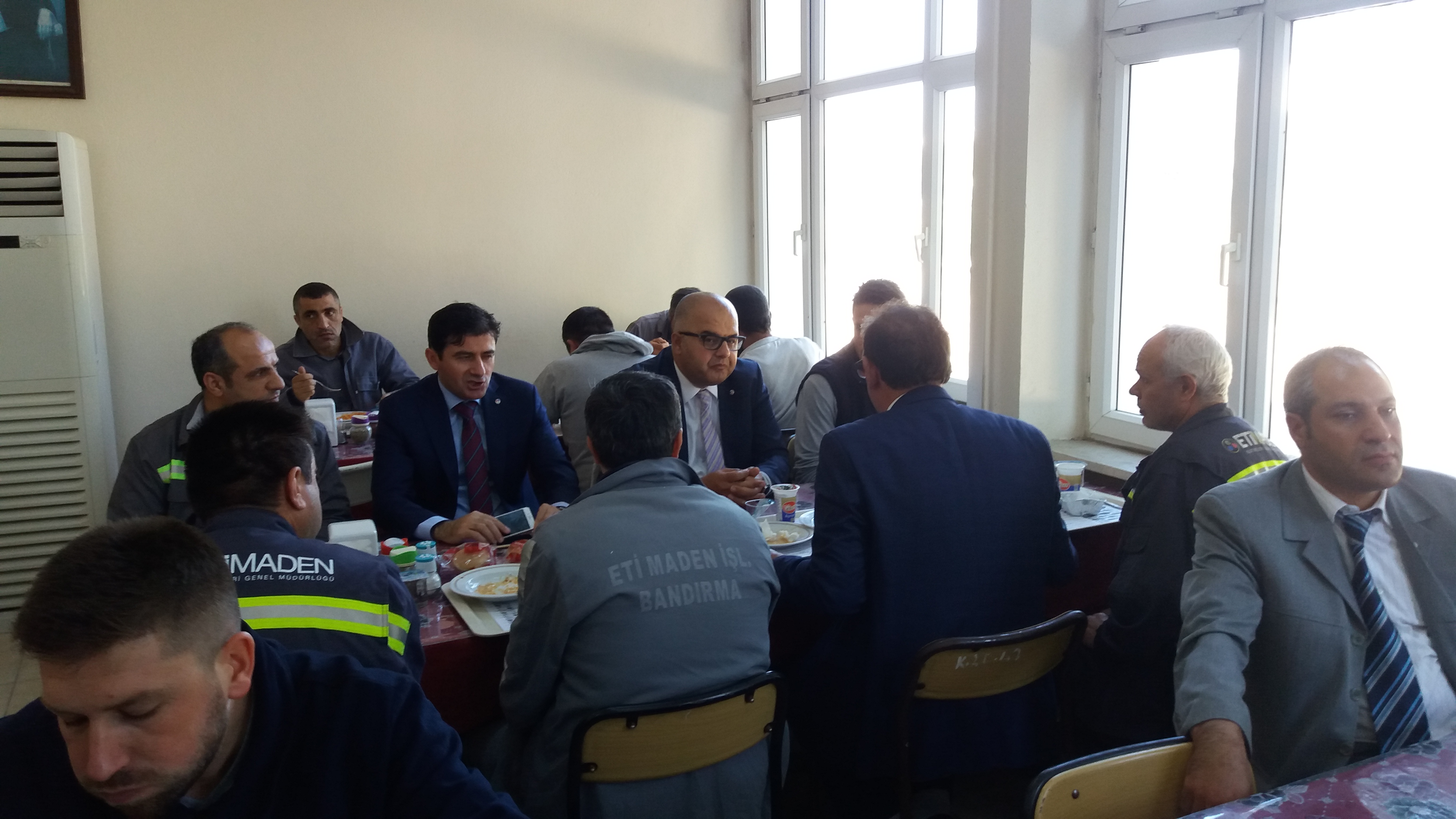 Eti Maden İşletmeleri Genel Müdürü Serkan Keleşer, Genel Müdür Yardımcısı Özgür Saç, Lojistik Daire Başkanı Ömer Çatal, Üretim ve Koordinasyon Daire Başkanı Ömer Çatal, İşletme Müdürü Münür Yahşi ve Bandırma Şube Başkanımız İsmail Kayan, Bandırma Yönetim Kurulu üyelerimiz ve temsilcilerimizle, Bandırma Eti Maden İşletmeleri işyerlerimizi ziyaret edip, üyelerimiz ile birlikte öğlen yemeği yediler. Bandırma Şube Yönetim Kurulumuz ziyaretlerinden dolayı kendilerine teşekkürlerini ilettiler.
