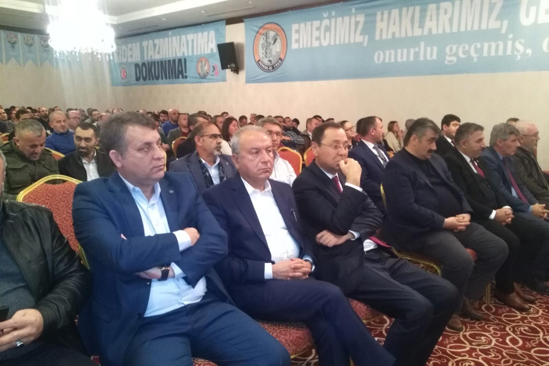Genel kurul açış konuşmasını Genel Başkanımız  Süleyman Akyüz yaptı. Akyüz konuşmasında, “Biz bu sendikanın tozuyuz dedim, hâlâ da diyorum. Bu sendika büyük bir sendika. Biz de ona yakışır mücadele etmeliyiz” dedi.”35 yıldır kıdem tazminatıyla uğraşıyoruz” diyen Akyüz, “Kıdem tazminatını zaten kuşa çevirdiler. Eskiden tazminat hakkımız SSK tavanına eş değerdi, kopardılar. Tazminatın üçte biri böyle gitti. Kalanı da almaya çalışıyorlar. ‘Kırmızı çizgimizdir’ derken olay başa geldikten sonra birşey yapmamalıyız. Ortak bir mücadele bugünden başlamalı” dedi.