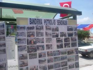 FESTİVALDE STAND AÇILIŞI 15.06.2005 01–10 Haziran 2005 tarihlerinde 18’incisi yapılan Kuşcenneti Kültür ve Turizm Festivalinde, Petrol-İş Sendikamızın öncülüğünde Genel-İş Sendikası ile birlikte bir stand açıldı.Standın açılışında bir konuşma yapan Genel-İş Sendikası Şube Başkanı öncelikle bu standı veren Belediye Başkanına teşekkür ederek, “Özelleştirmelerin olduğu bir dönemde, Bandırma’lılara sendikacılığı anlatmak ve bilgilendirmek için burada bu satandı açmış bulunuyoruz” dedi. Daha sonra Şube Başkanımız Hüseyin Koçyiğit bize bu standı ücretsiz olarak veren Bandırma Belediye Başkanına teşekkür ederek ve festivalde halkla içiçe olmak için stand açtıklarını belirterek, “Bizler sendikalar olarak toplumla bir olmak, aynı şeyleri paylaşabilmek, sendikaların önemini anlatabilmek için bu standı açtık. Burada sergilenen yayın organları ile halkımızı bilgilendirmek, sendikal mücadelemizi onlara anlatmak istiyoruz. Burada özelleştirmelerin yanlış olduğunu ve çözüm yollarını aktarıyoruz. Özelleştirilmek istenen Tüpraş’ın 5 yıllık geliri ile Türkiye’nin IMF’ye olan borcu kapatılıyor. Bunun yanında Hazine’ye büyük bir katkı sağlıyor. Ayrıca, bu 5 yıllık gelir ile 2 tane daha Tüpraş ve 1 tane daha Petkim kurulabilir” diye konuştu. Hüseyin Koçyiğit, böylece özelleştirilmek istenen Tüpraş’ın önemine dikkat çekti. Şube Başkanımız ayrıca, açtığımız standa Bandırmalılar’ın büyük bir ilgi gösterdiğini söyledi. Yönetici, temsilci ve eğitimci arkadaşlarımızın büyük gayreti ile standımız 10 gün süre ile açık kaldı ve burada sendikamızın bütün yayın organları, özellikle özelleştirmelerle, Petkim–Tüpraş yayınlarımız ve Bor’lar ile ilgili hazırladığımız bildiriler halkımıza dağıtıldı. Halkımızdan görülen yoğun ilgiden dolayı bazı yayınlarımız kısa sürede tükendi.