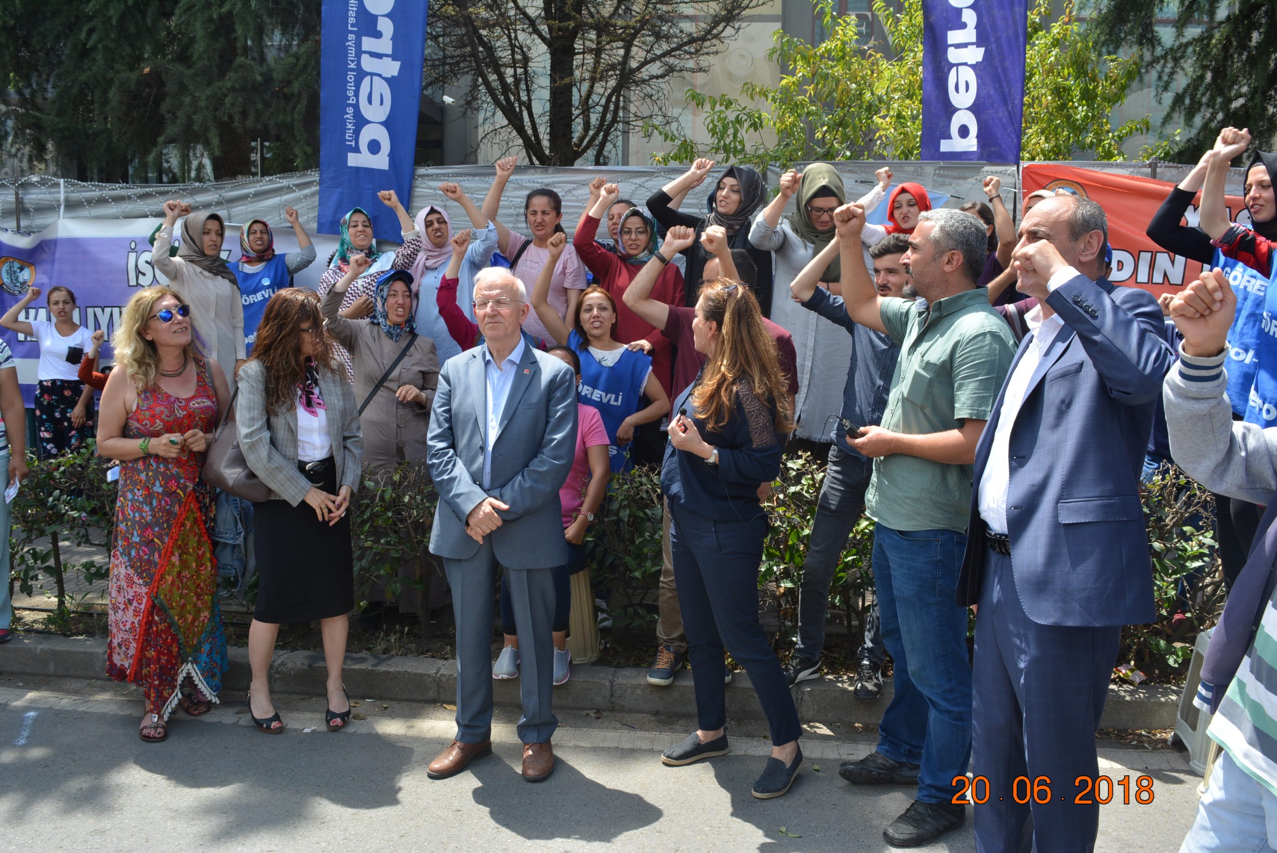20 Haziran Çarşamba günü CHP İstanbul 1. Bölge Milletvekili Adayı Anayasa Hukukçu Akademisyen Prof. Dr. İbrahim Kaboğlu, DİSK Konfederasyon kurucusu ve ilk Genel Başkanı Kemal Türkler’in kızı Nilgün Türkler eylemde olan işçilere dayanışma ziyaretinde bulundular.