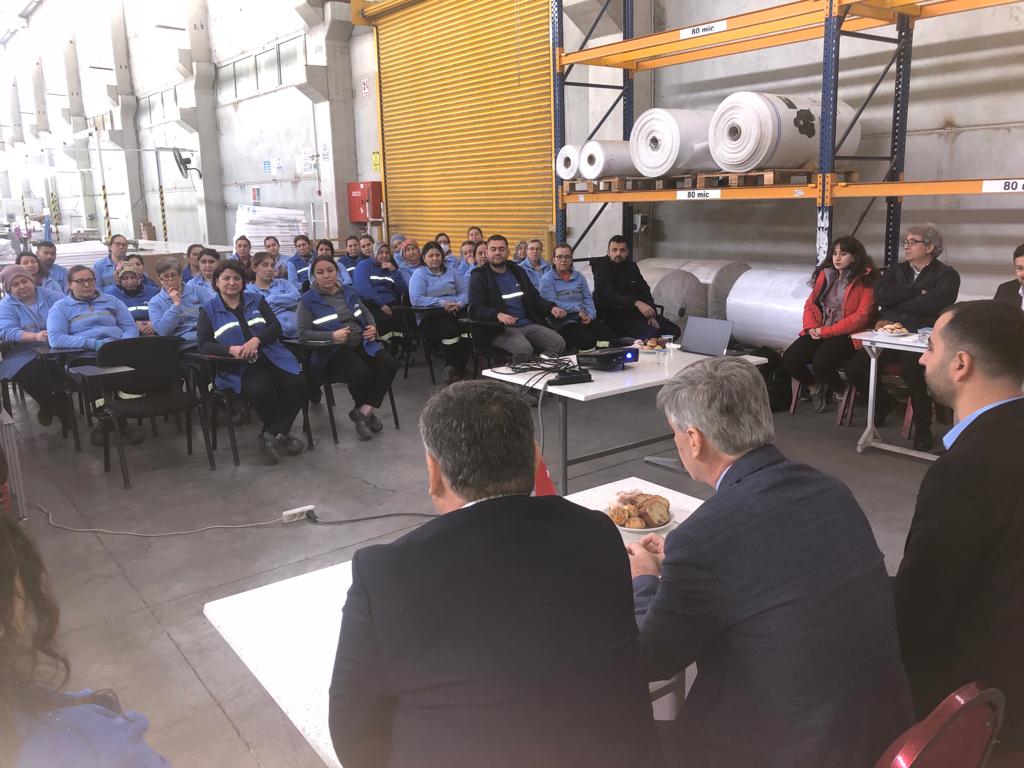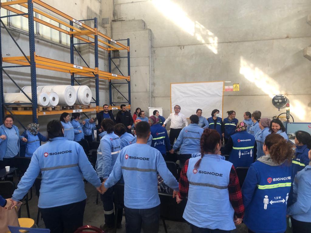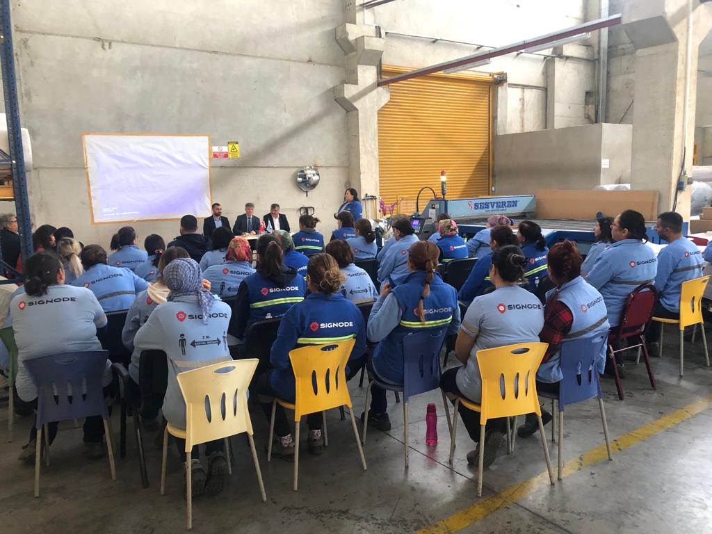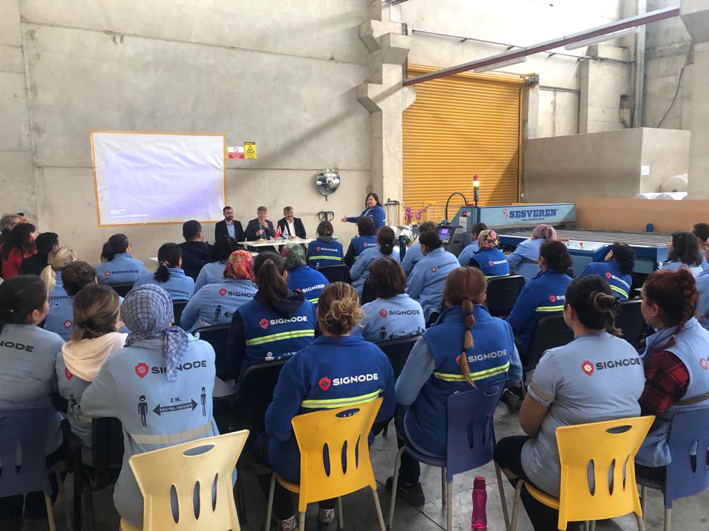 Sendikamız İzmir Şubesi’nin örgütlü olduğu Form Koruyucu işyerinde 10 Ocak Salı günü yeni üye eğitimi yapıldı. Fabrika üretim sahası içerisinde gerçekleştirilen eğitime yaklaşık 40 üyemiz katıldı.