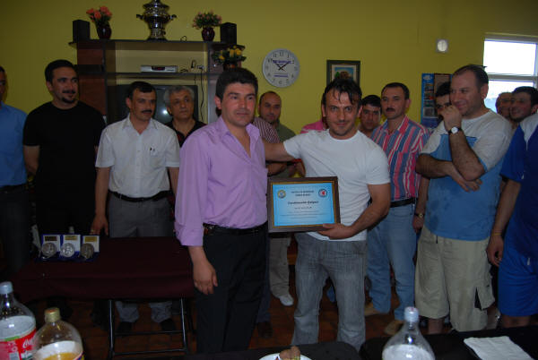 PETROL-İŞ SENDİKASI GEBZE ŞUBESİ SÜLEYMAN ÜSTÜN HOCA HALI SAHA DOSTLUK VE DAYANIŞMA FUTBOL TURNUVASIPetrol-İş Sendikası Gebze Şubemizin düzenlemiş olduğu Halı Saha Dostluk ve Dayanışma futbol turnuvası 25 Mayıs 2008 pazar günü oynanan final maçlarıyla sona erdi.Final maçında Süperlas ile Unilever takımları karşı karşıya geldi. Karşılaşmayı Süperlas takımı Unilever takımını 4-3 yenerek şampiyon oldu. Unilever takımı ikinci oldu.Üçücülük , dördüncülük maçında ise Bayer Türk takımı, Öncü takımını 6-3 yenerek üçüncü oldu. Bayer Türk : 6 Öncü: 3Bayer Türkr: Ceyhun, Yıldıray, Olgun, Yunus, Bayram, Mustafa(Oktay)Öncü: Sezgin, Mehmet, Batur, İnan, Sezai, Hüsmen (Alişan)Goller::Bayer Türk: Yunus 2, Mustafa, Olgun, Yıldıray, Bayram . Öncü: İnan 2, SezaiKırmızı Kart: Sezai, İnanSüperlas : 4 Unilever: 3Süperlas : Ümit, Muhammet, Orhan(Ali), Ahmet(Engin), Muharrem, İsa(Gökhan)Öncü: Ergun, Ali Kemal(Sadettin), Ahmet(Ömer), Murat, Burak (Türker), İlhanSarı Kart: Ümit(Süperlas)Kırmızı Kart: Muhammet (Süperlas)Goller: Süperlas: Muharrem 3, Ahmet. Unilever: Ahmet, İlhan, Ömer Gol Krallığı : 30 gol: Muharrem (Süperlas), 19 gol: Ahmet Kaya (Unilever), 18 gol: Olgun (Bayer), 17 gol: İnan (Öncü ) 15 Gol: İlhan (Unilever) 14 gol: Sezai (Öncü)Oynanan maçlar sonucunda kupa töreni düzenlendi. Şampiyonluk kupasını , Şube Başkanı Süleyman Akyüz , Süperlas takımına verdi. İkinci olan Unilever takımına kupasını , Şube İdari Sekreteri Eyüp Akdemir verdi.Üçüncü olan Bayer Türk takımına kupasını , Şube Mali Sekreteri Orhanettin Yıldız verdi. Gol kralı Süperlas takımından Muharrem’ e kupasını Şube Yönetim Kurulu üyesi Dönmez Aytekin verdi.Gol kralı ikincisi Unilever takımından, Ahmet Kaya’ya Şube Yönetim Kurulu üyesi Hüseyin Köse tarafından şilt verildi.Gol kralı üçüncüsü Bayer Türk işyerinden Olgun Kiraz ‘a Şube Yönetim Kurulu üyesi Şivan Kırmızıçıçek tarafından şilt verildi. Turnuvaya katılımlarından dolayı Polifen Kimya, Basf Çalışanları, Dyo ve Tekno Kauçuk işyerlerine şilt verildi. Maçlarımızı Yönetin hakem Ender Usta’ya şilt verildi. Oynanan maçları izleyen ve gazetelere haber olarak yayınlayan Gebze Haber, Çağdaş Kent ve Gebze gazetelerine sendikamızdan teşekkür mahiyetinde şilt verildi. Değerli basınımıza duyurulur.