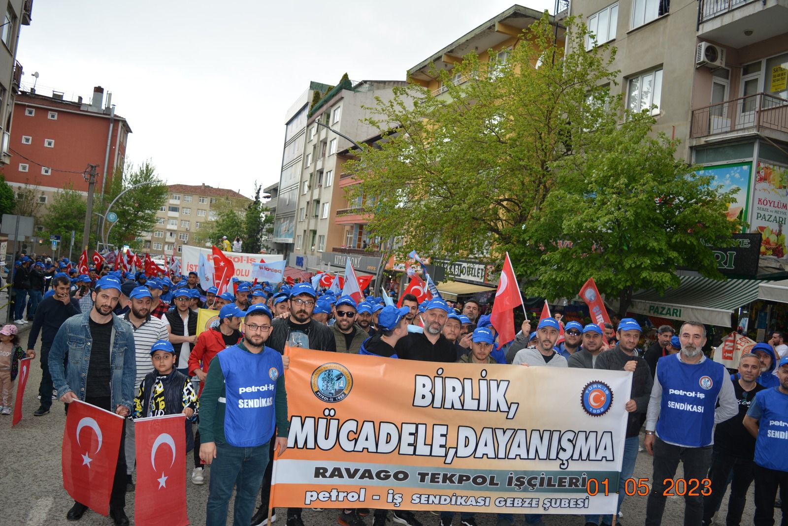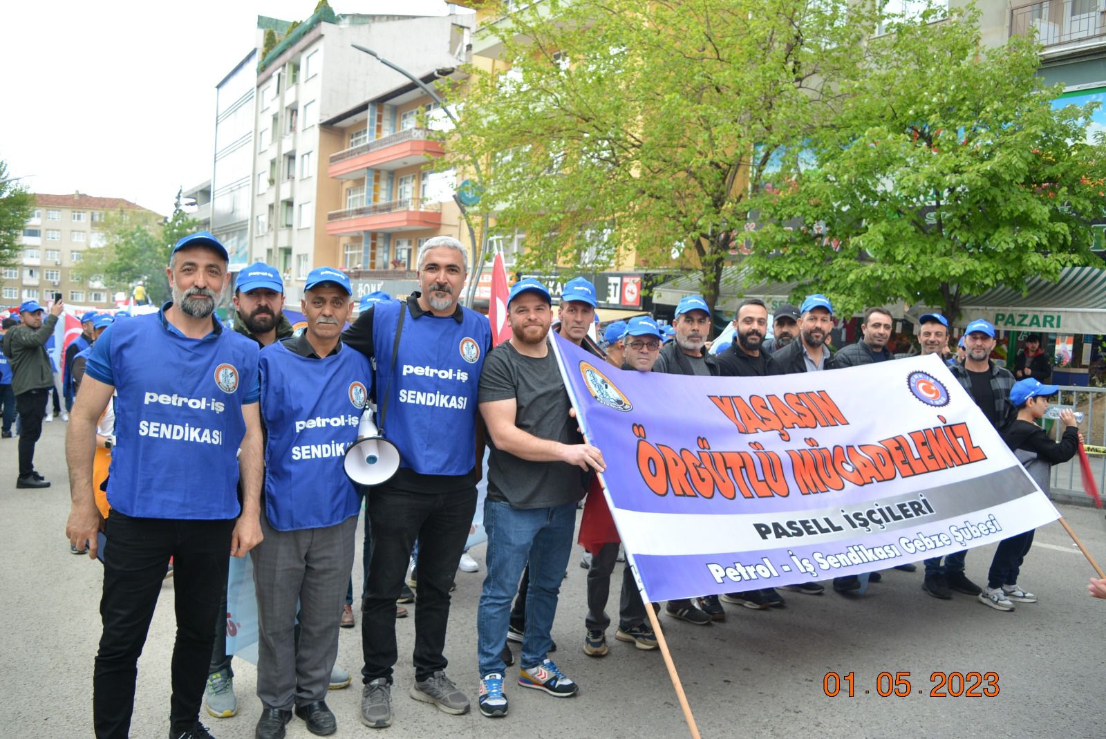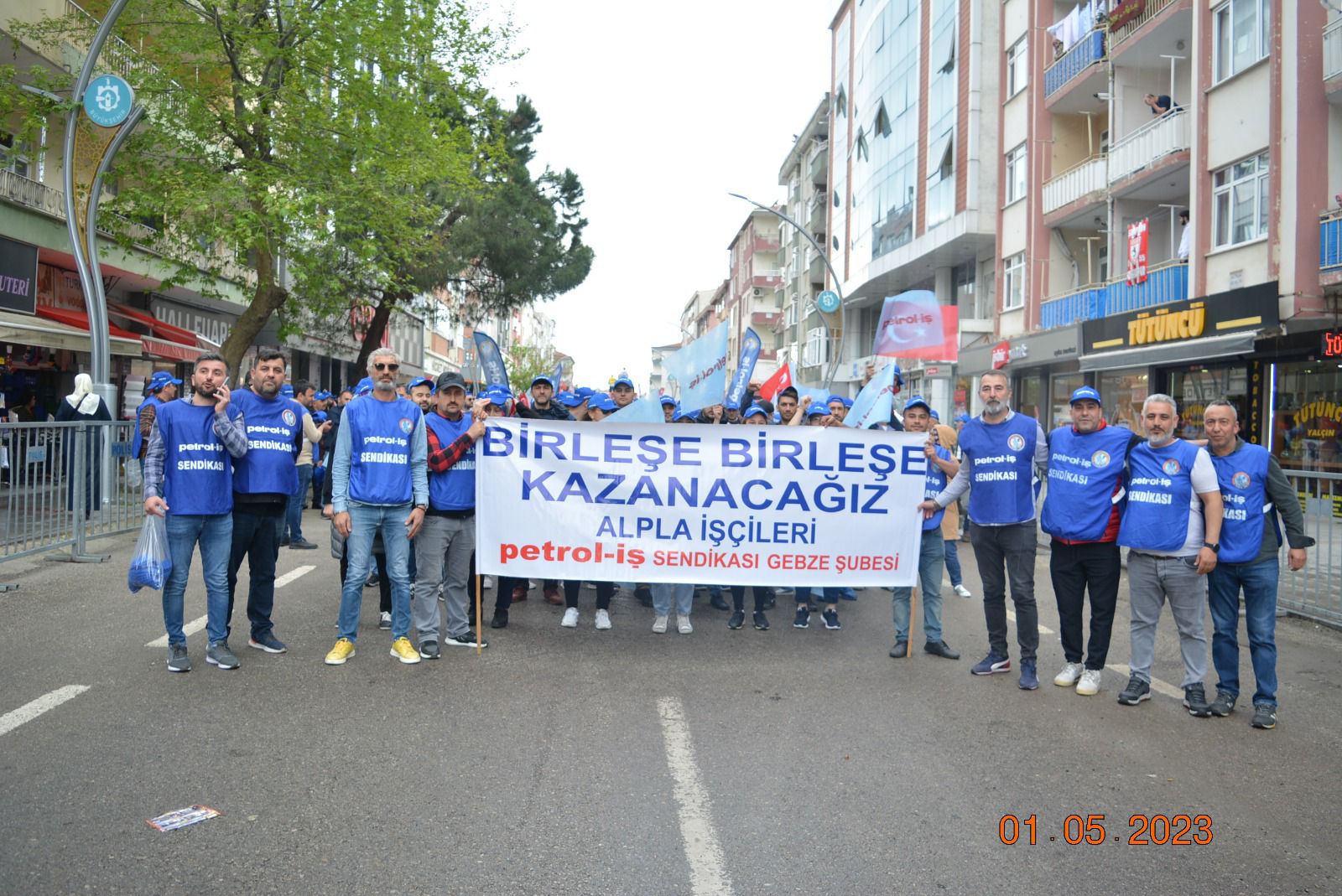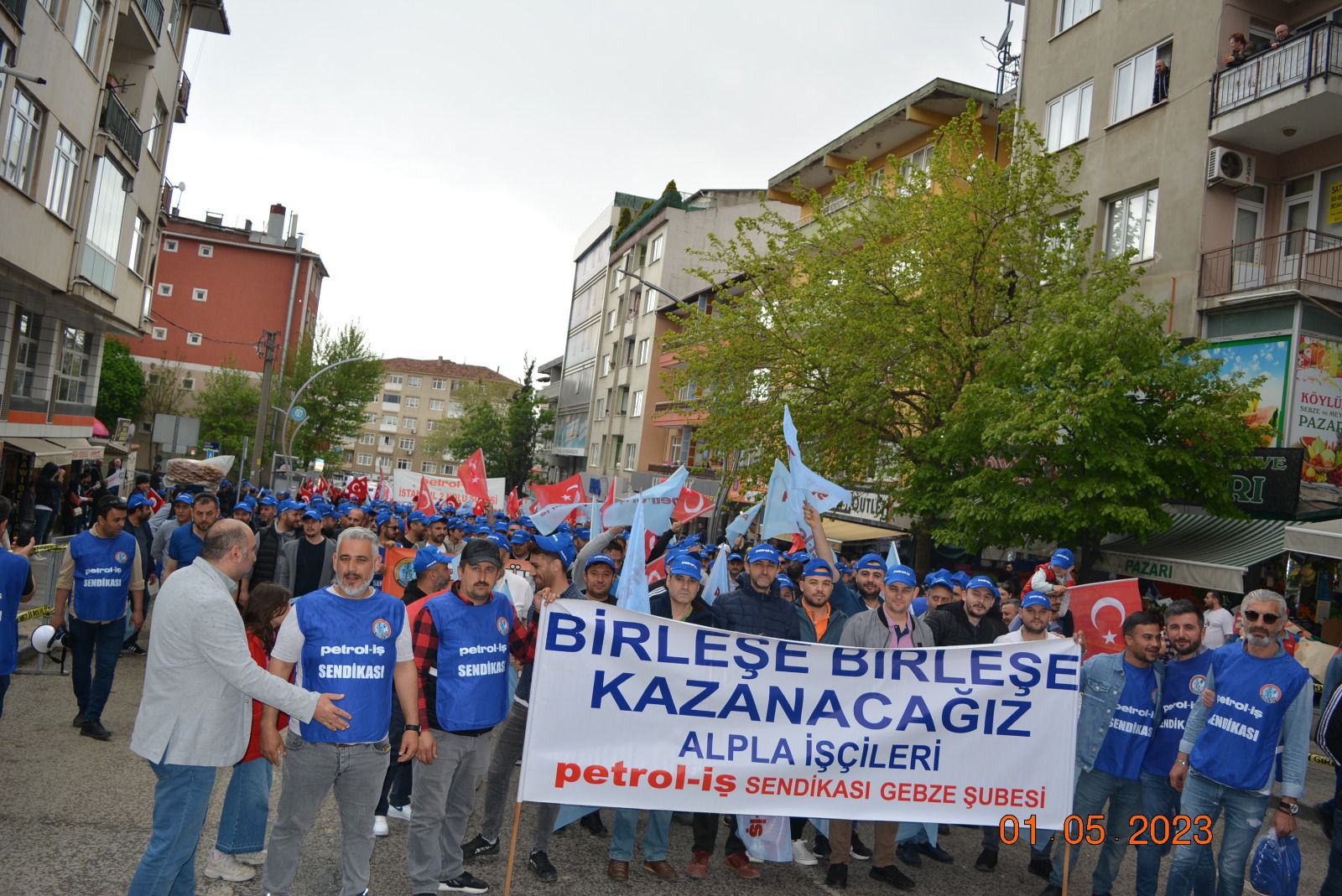 Sendikamız Gebze Şubesi, Uluslararası Birlik Mücadele ve Dayanışma Günü 1 Mayıs’ı Gebze Kent Meydanı’nda kutladı. Gebze Sendikalar Birliğinin çağrısıyla kutlanan 1 Mayıs’a katılım oldukça yoğun oldu. Gebze Şubemizin örgütlü olduğu işyerlerinden de yoğun katılımın olduğu 1 Mayıs kutlamasında sendikamıza üye işçiler açtıkları pankart, taşıdıkları döviz ve attıkları sloganlarla taleplerini dile getirdiler. 1 Mayıs açıklamasını Gebze Sendikalar Birliği Dönem Sözcüsü ve sendikamız Gebze Şube Başkanı Eyüp Akdemir okudu.