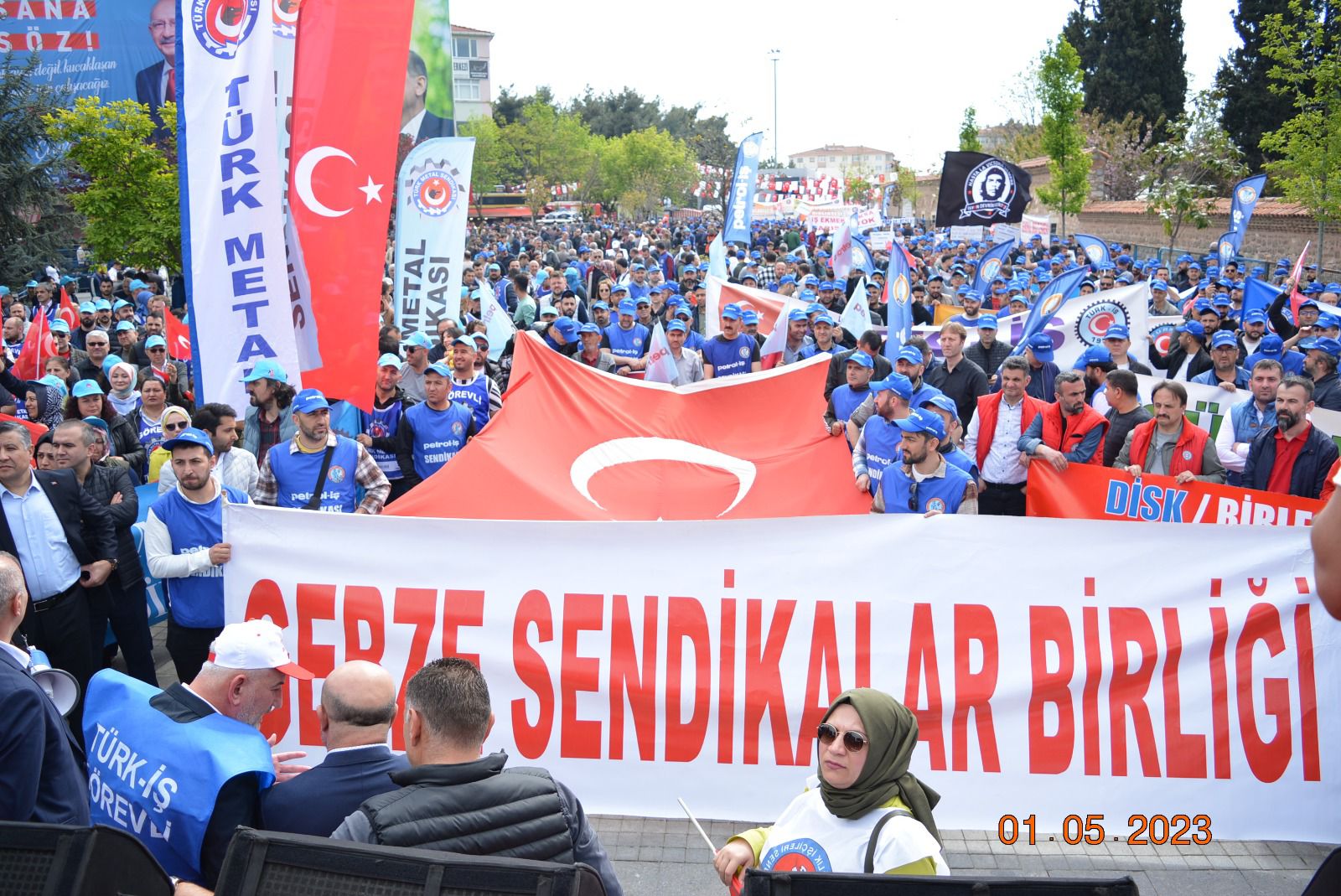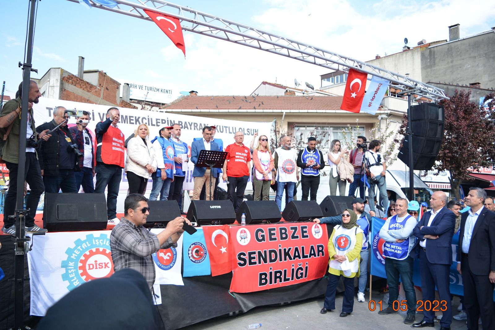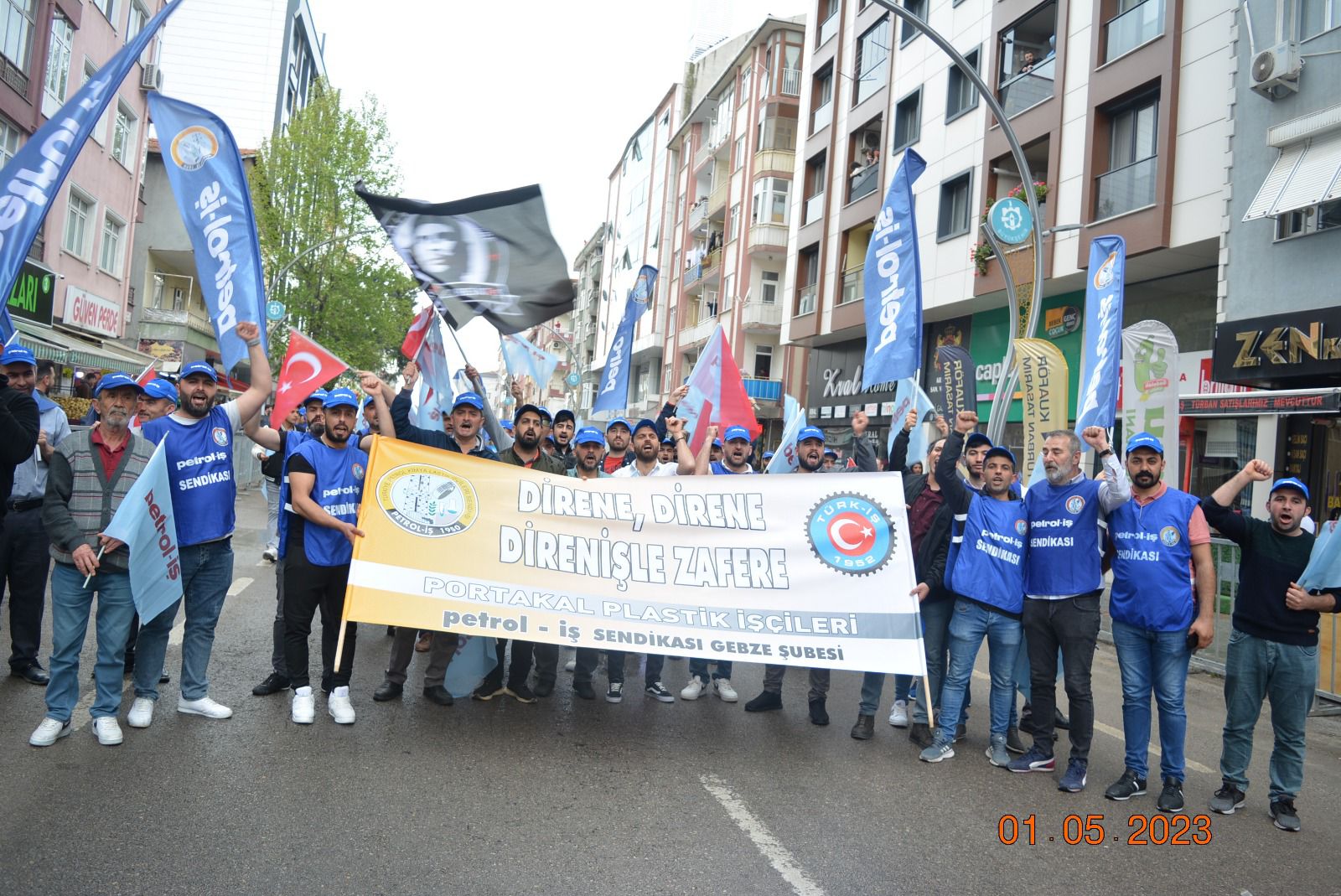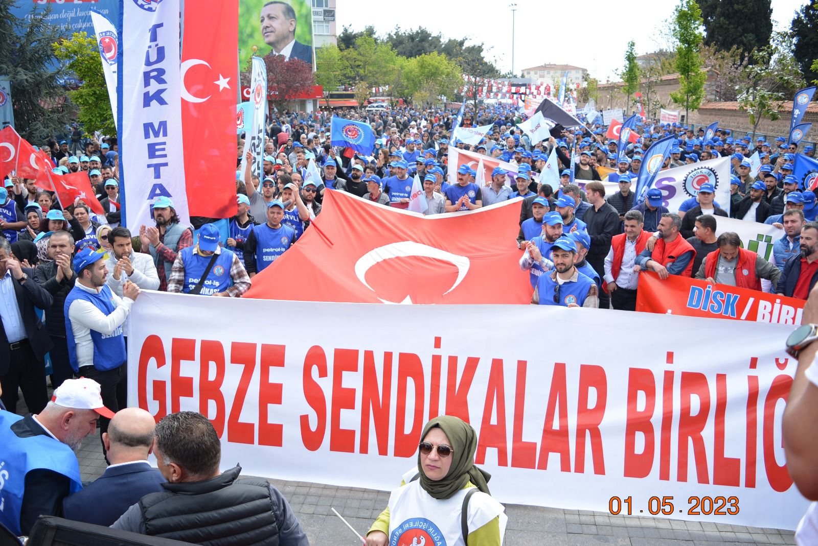 Sendikamız Gebze Şubesi, Uluslararası Birlik Mücadele ve Dayanışma Günü 1 Mayıs’ı Gebze Kent Meydanı’nda kutladı. Gebze Sendikalar Birliğinin çağrısıyla kutlanan 1 Mayıs’a katılım oldukça yoğun oldu. Gebze Şubemizin örgütlü olduğu işyerlerinden de yoğun katılımın olduğu 1 Mayıs kutlamasında sendikamıza üye işçiler açtıkları pankart, taşıdıkları döviz ve attıkları sloganlarla taleplerini dile getirdiler. 1 Mayıs açıklamasını Gebze Sendikalar Birliği Dönem Sözcüsü ve sendikamız Gebze Şube Başkanı Eyüp Akdemir okudu.