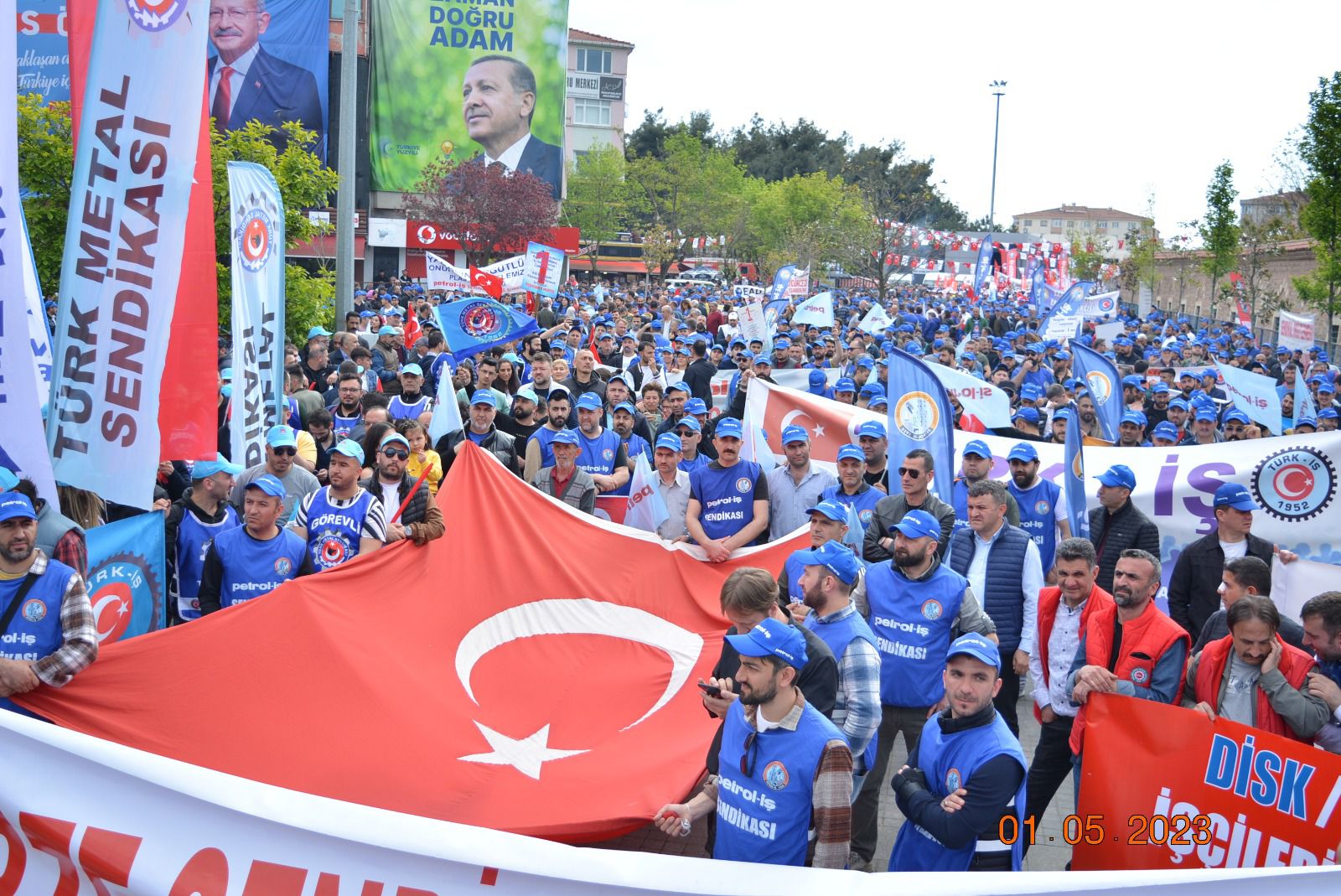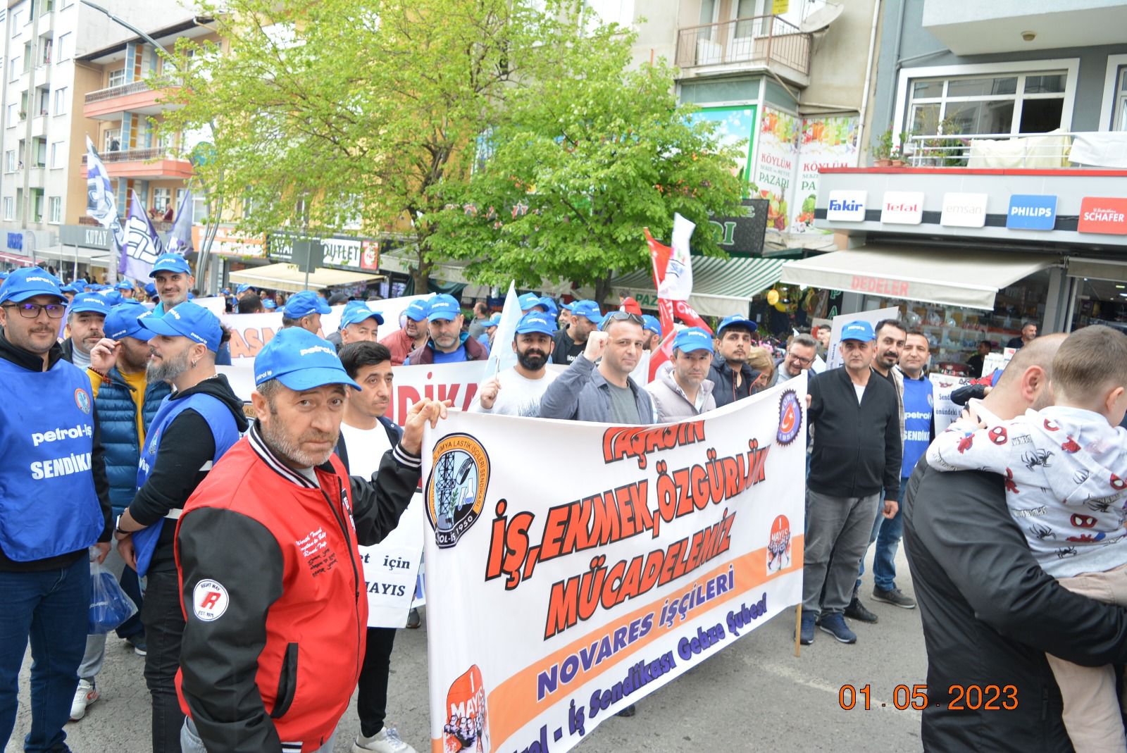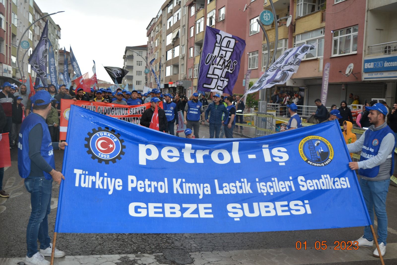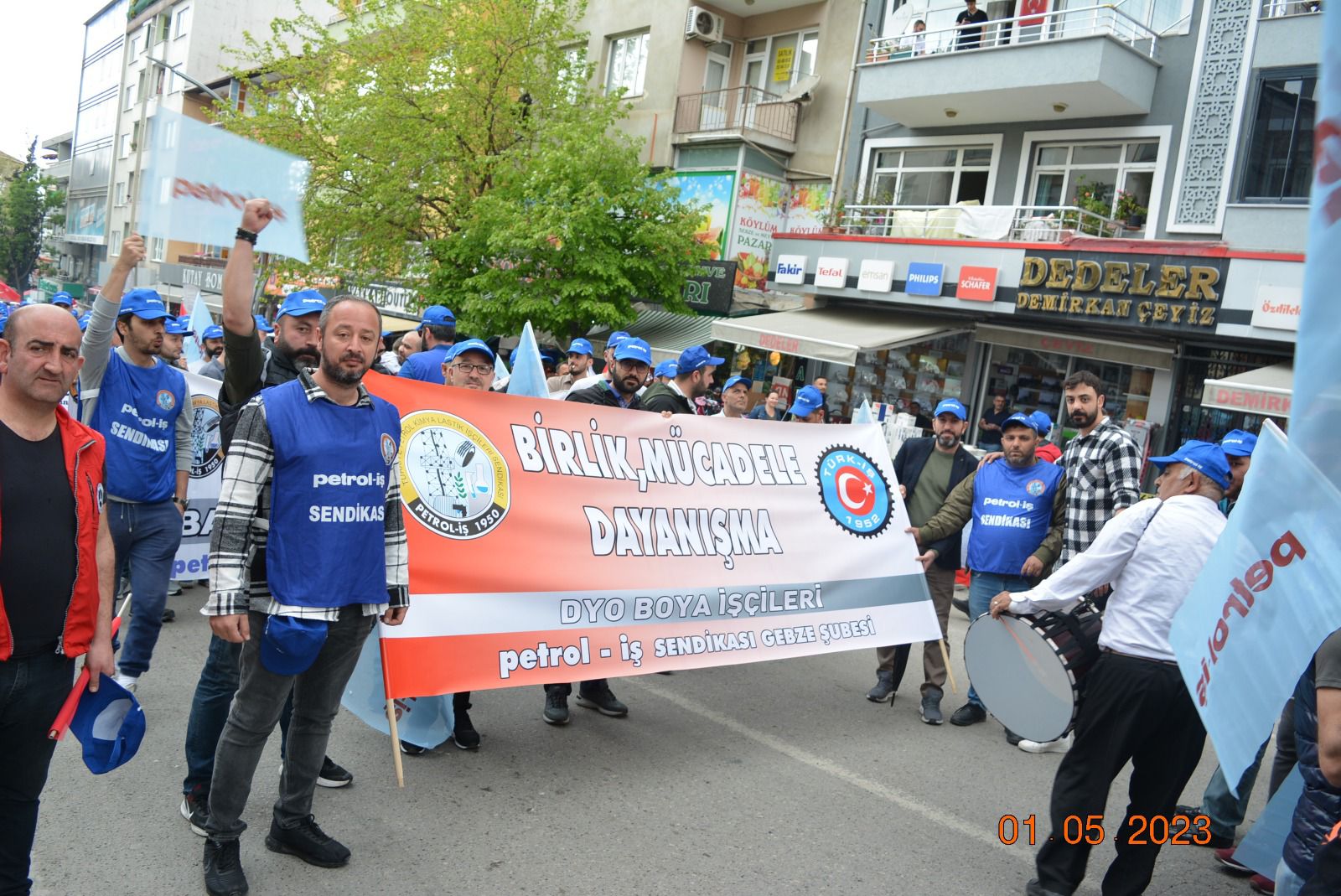 Sendikamız Gebze Şubesi, Uluslararası Birlik Mücadele ve Dayanışma Günü 1 Mayıs’ı Gebze Kent Meydanı’nda kutladı. Gebze Sendikalar Birliğinin çağrısıyla kutlanan 1 Mayıs’a katılım oldukça yoğun oldu. Gebze Şubemizin örgütlü olduğu işyerlerinden de yoğun katılımın olduğu 1 Mayıs kutlamasında sendikamıza üye işçiler açtıkları pankart, taşıdıkları döviz ve attıkları sloganlarla taleplerini dile getirdiler. 1 Mayıs açıklamasını Gebze Sendikalar Birliği Dönem Sözcüsü ve sendikamız Gebze Şube Başkanı Eyüp Akdemir okudu.