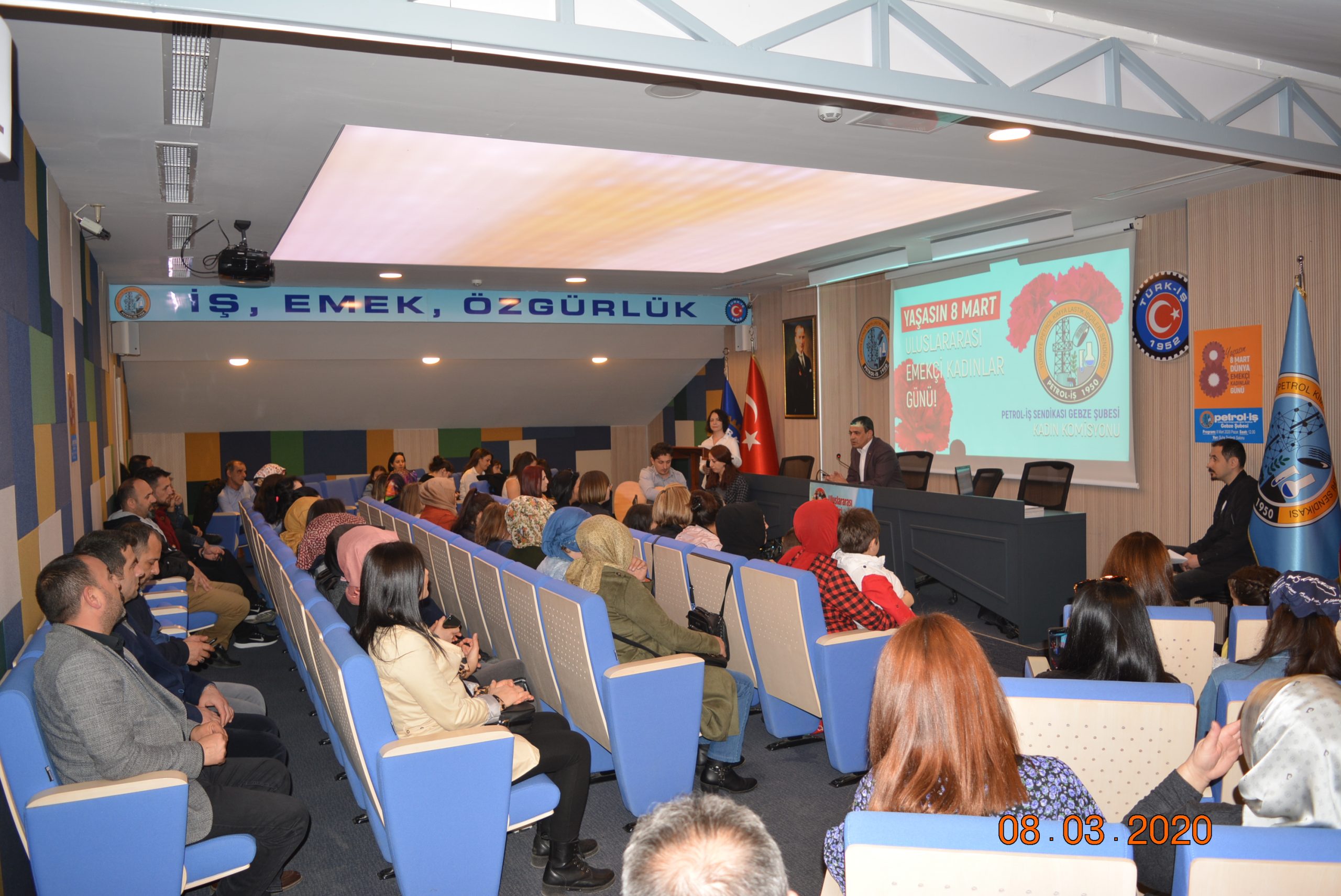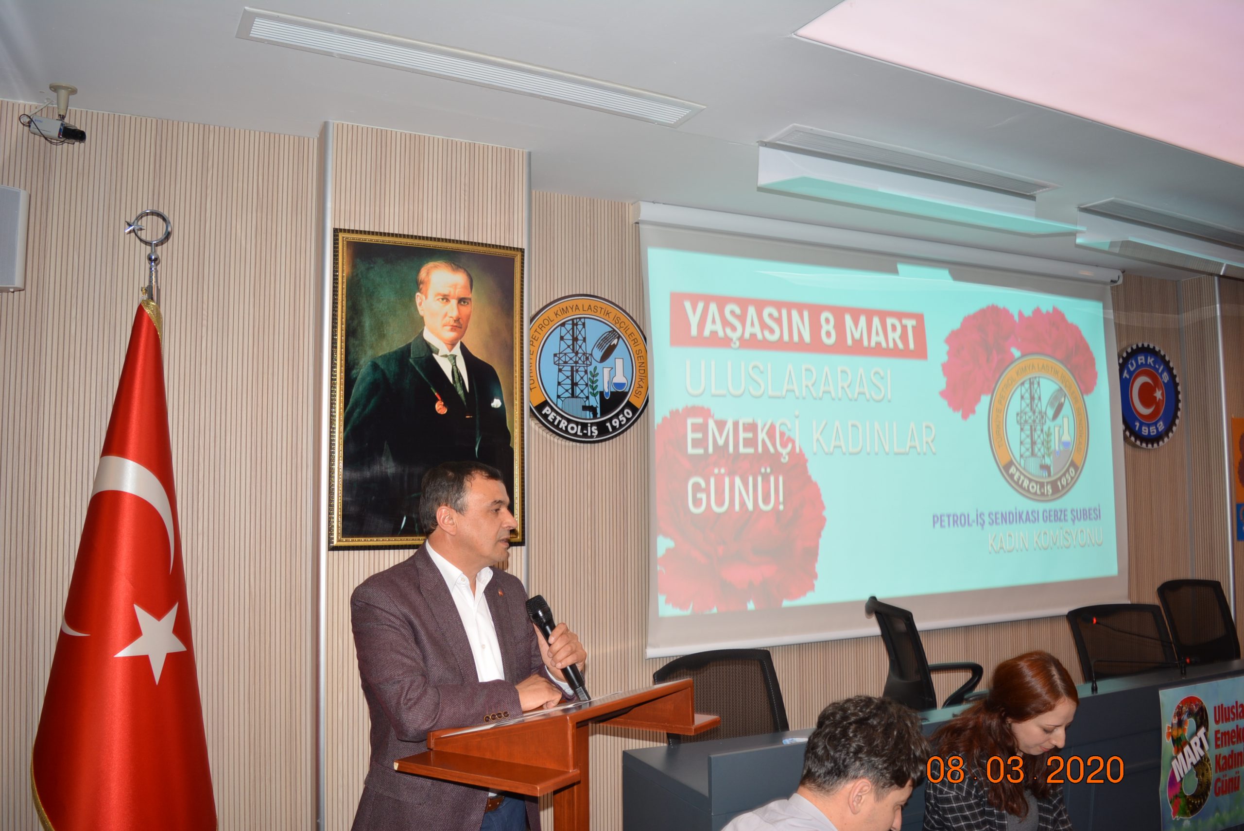 Sendikamız Gebze Şubesinde kadın üye ve temsilcilerimizin katılımıyla Kadınların Uluslararası Mücadele ve Dayanışma Günü 8 Mart kutlandı. Gebze Şubemizin toplantı salonunda yapılan etkinliğe şube yöneticilerimiz ve temsilcilerimiz de katıldı.