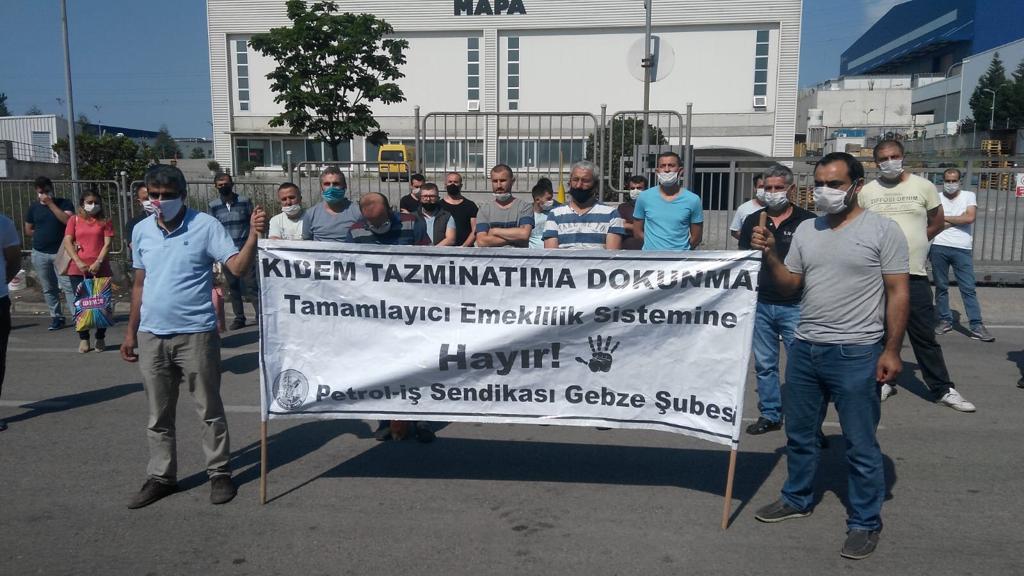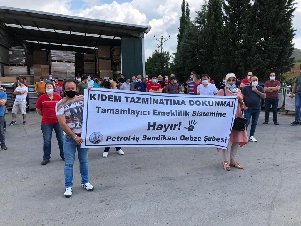 Gebze Şubemizin örgütlü olduğu işyerlerinde kıdem tazminatı eylemleri başladı. Hükümetin yıllardır ısrarla gündeme getirdiği ve her seferinde “reform”, “isithdam kalkanı” gibi olumluluk içeren bir kavramla servis ettiği kıdem tazminatının fona devri konusu yeniden kamuoyunun gündeminde.