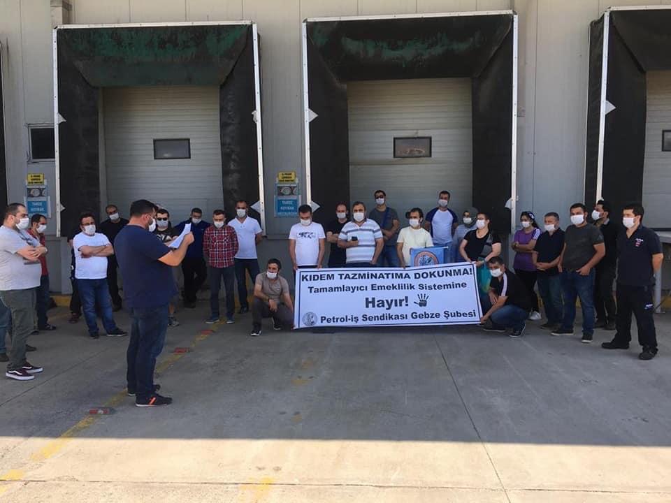 Gebze Şubemiz de örgütlü olduğu işyerlerinde kıdem tazminatı hakkına sahip çıkmak için 25 Haziran tarihinde eylemlere başladı. Vardiya çıkışlarında yürüyüş ve basın açıklaması şeklinde olan eylemlerimiz 26 Haziran Cuma günü(Bugün) de sürecek.