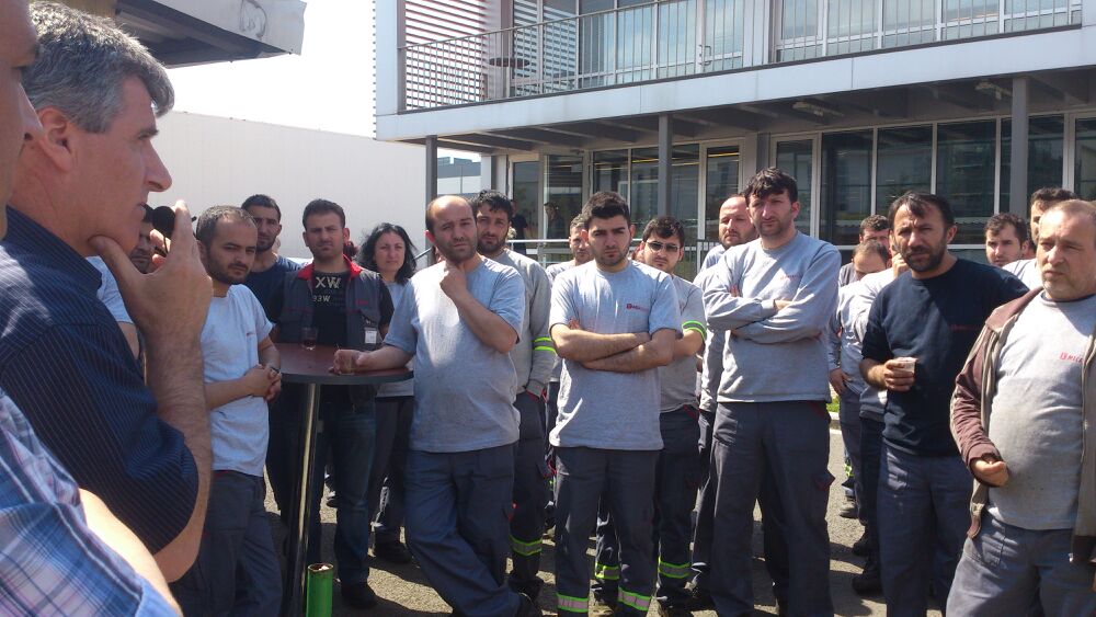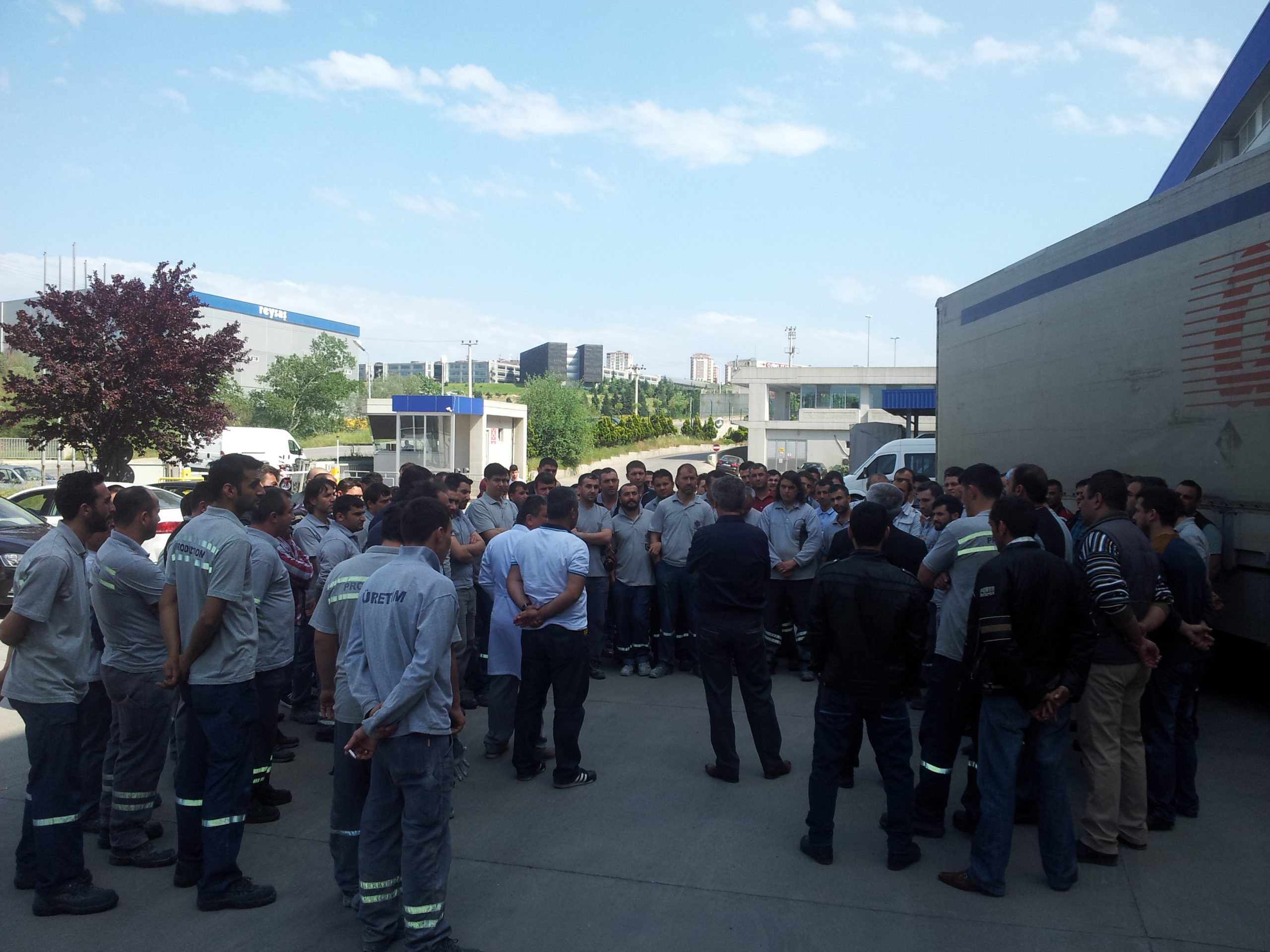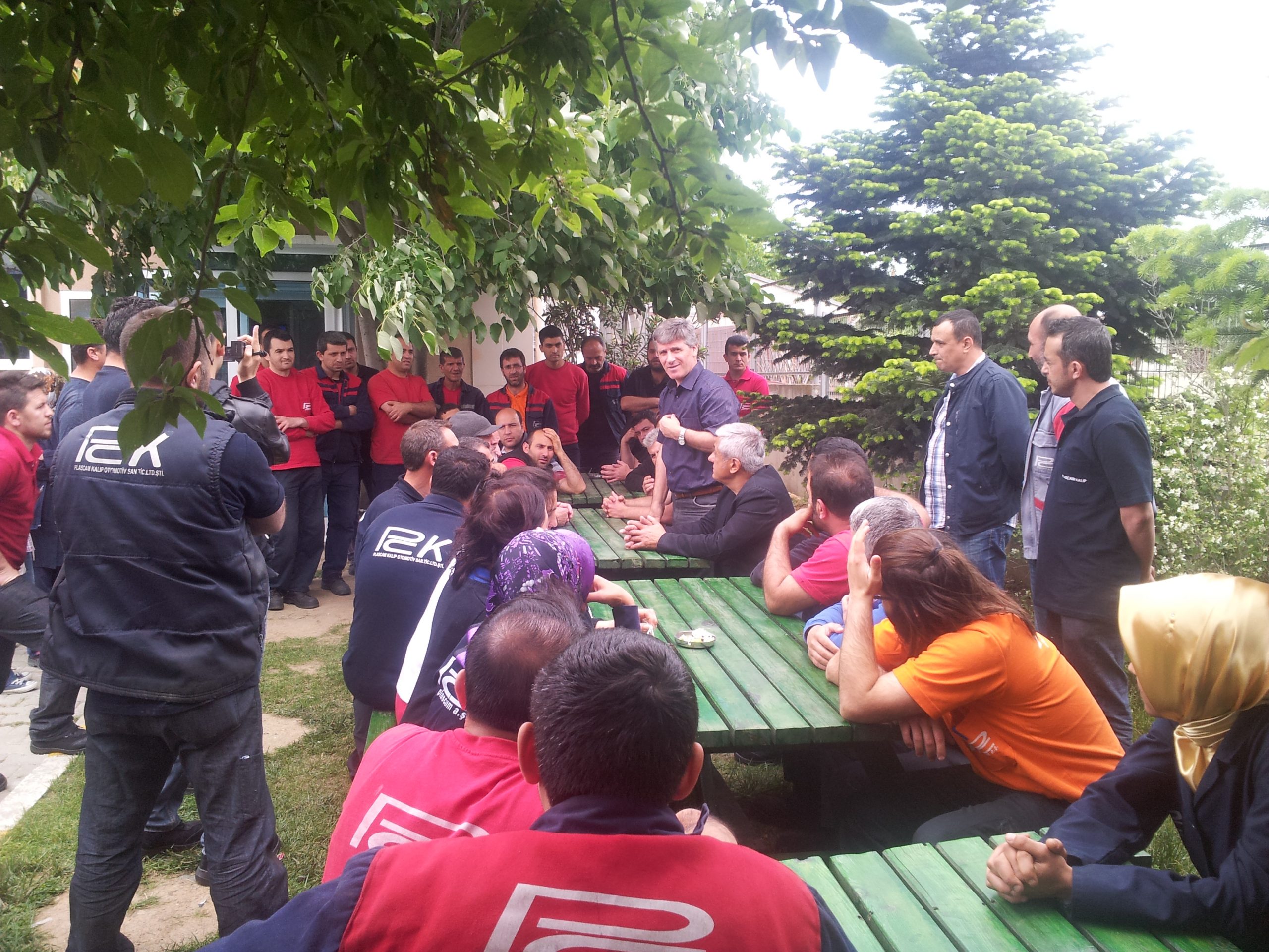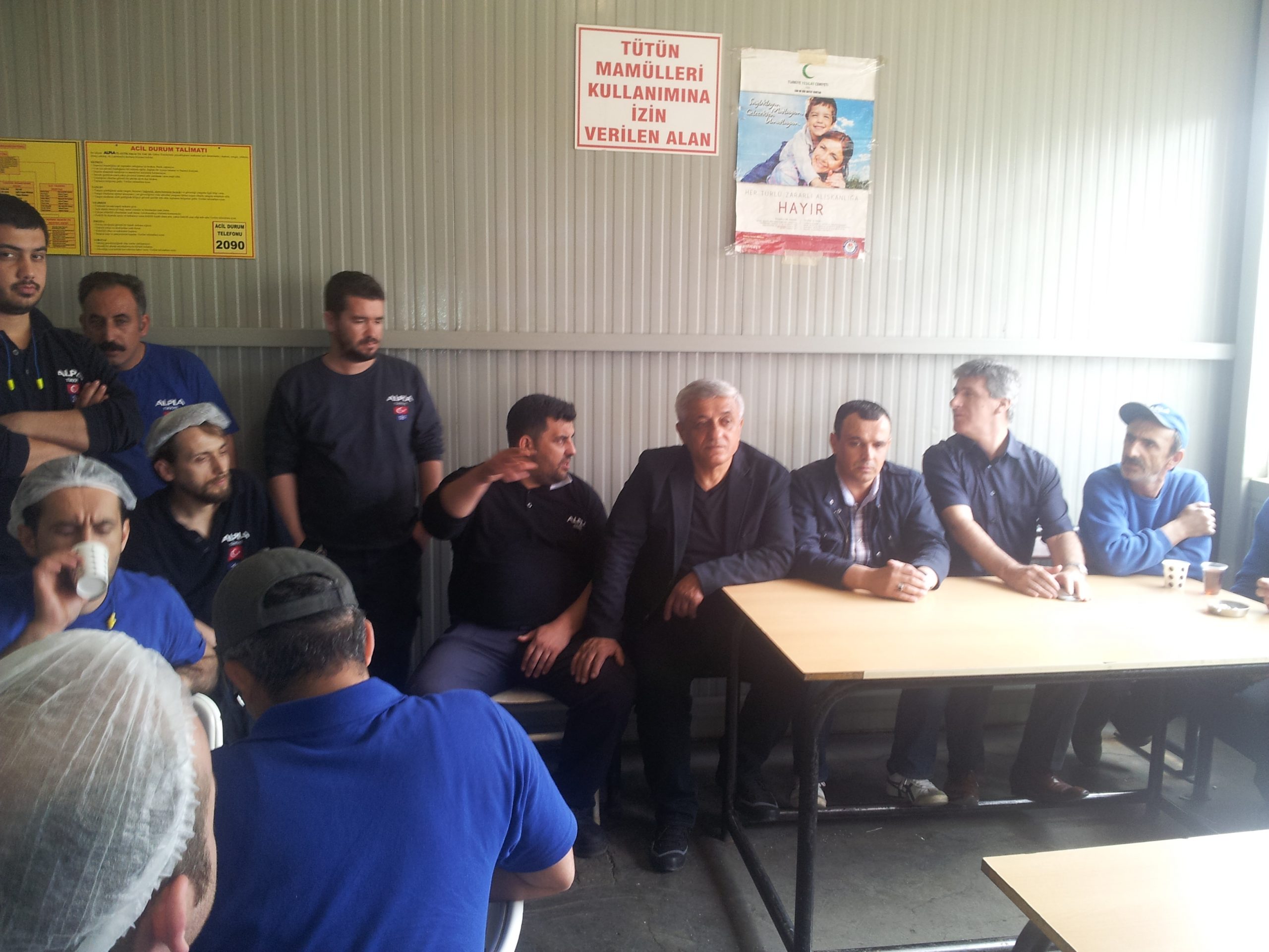 Gebze Şube Genel Başkanı Süleyman Akyüz ve Şube Yönetim Kurulu Üyelerimiz DYO ve Unilever’in ardından Betesan, Superlas-1, Bayer, Cambro Ozay, Superlas-2, Alpla, Plascam, Tekno Kaucuk, Mega-1, Mega-2 ve Ravago fabrikalarına giderek iş bırakma eyleminde olan işçilerle biraraya geldiler. Bu fabrikalarda sendika adına Şube Başkanımız Süleyman Akyüz açıklama yaptı. Akyüz yaptığı açıklamada özelleştirmelere, taşeronlaşmaya, ucuz emek sömürüsüne, kuralsız ve gücencesiz çalışmaya karşı mücadelenin daha güçlü devam edeceğini , bu kapsamda sınıfsal ve dayanışma içinde bir karşı koyuşun sergilenmesinin öneminden bahsetti.