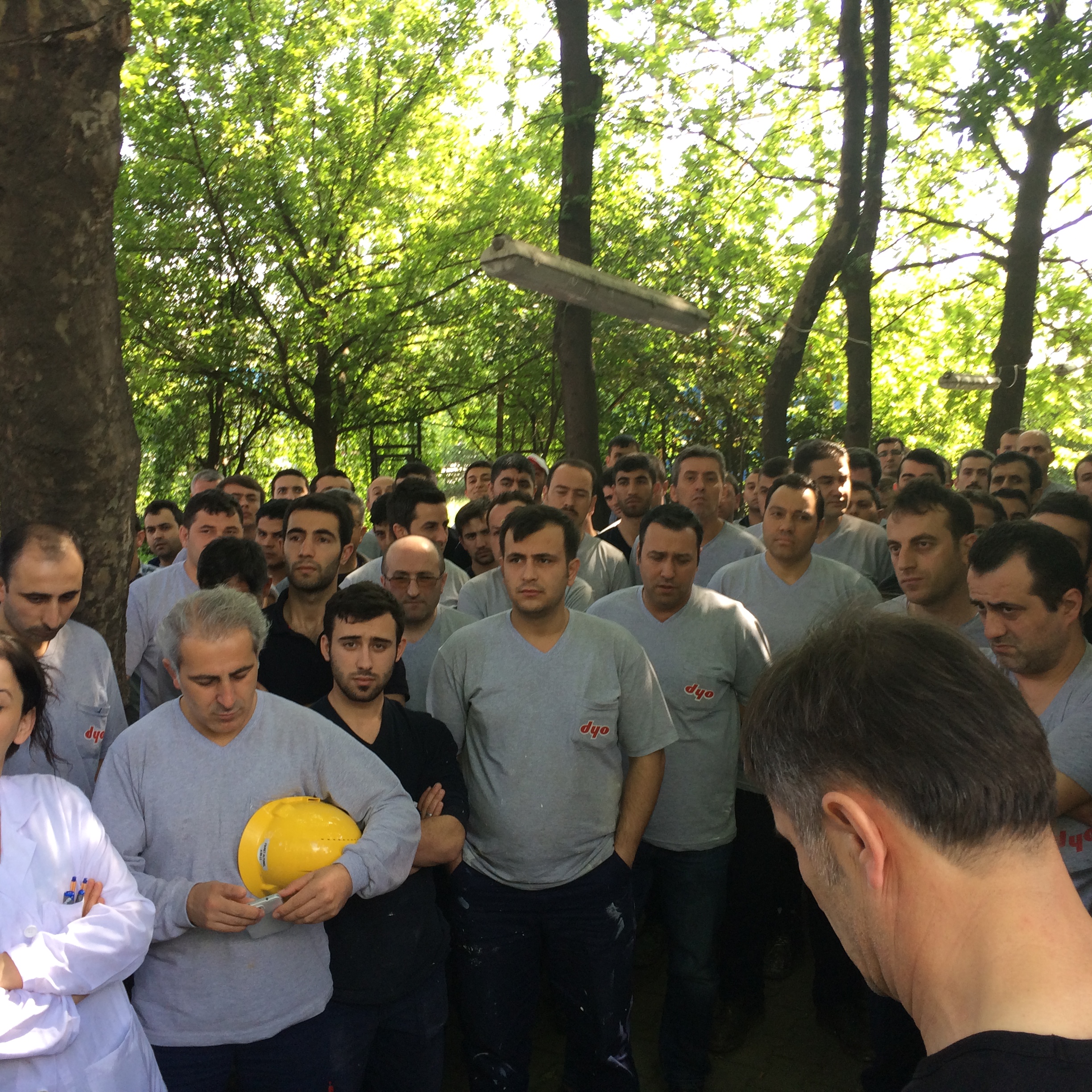 Genel Sekreterimiz Ali Ufuk Yaşar, Gebze Şube Başkanımız Süleyman Akyüz ve işyeri temsilcileri, DYO Boya ve Unilever işyerlerine giderek iş bırakma eylemini gerçekleştiren işçilerle biraraya geldiler.