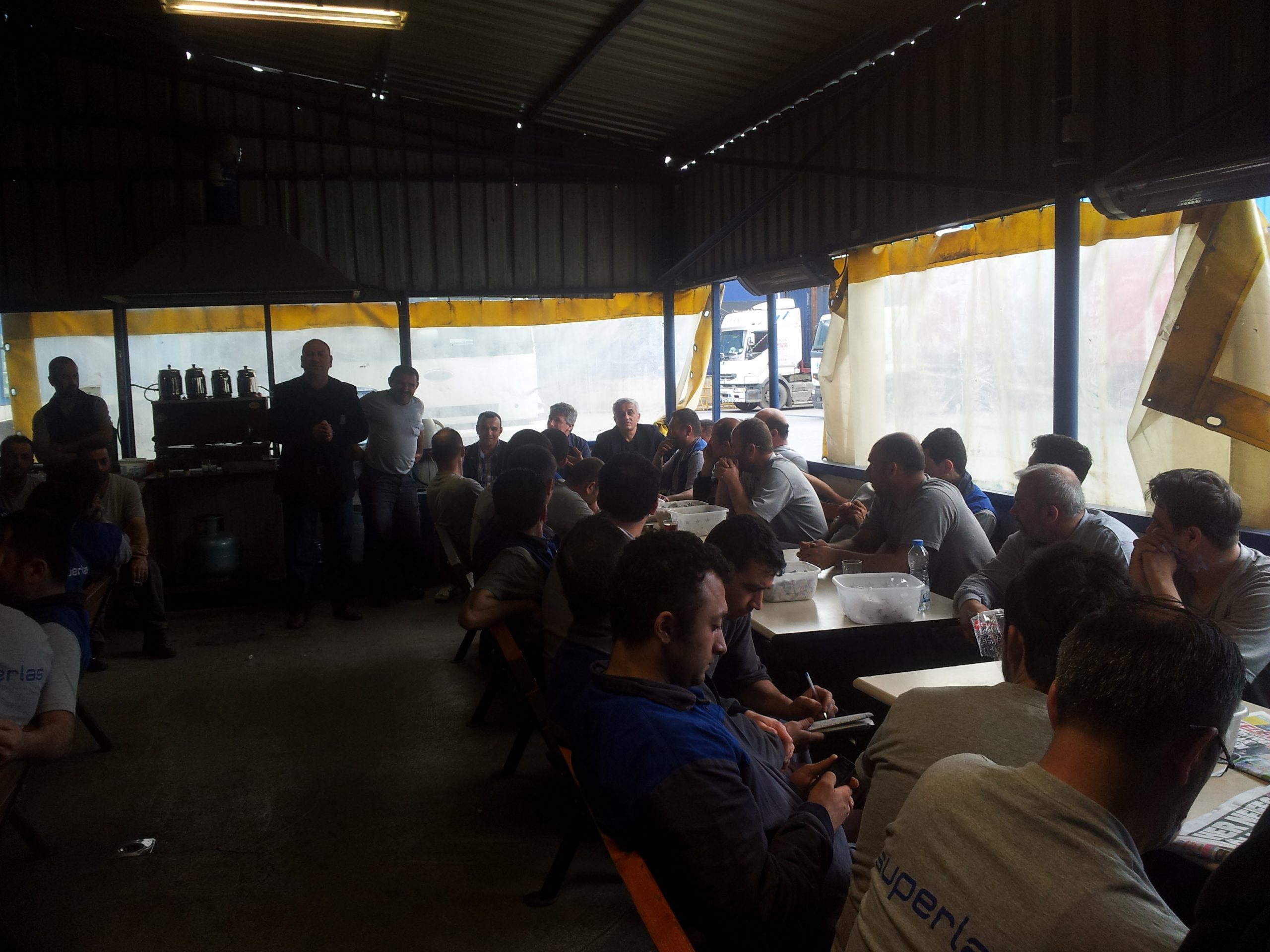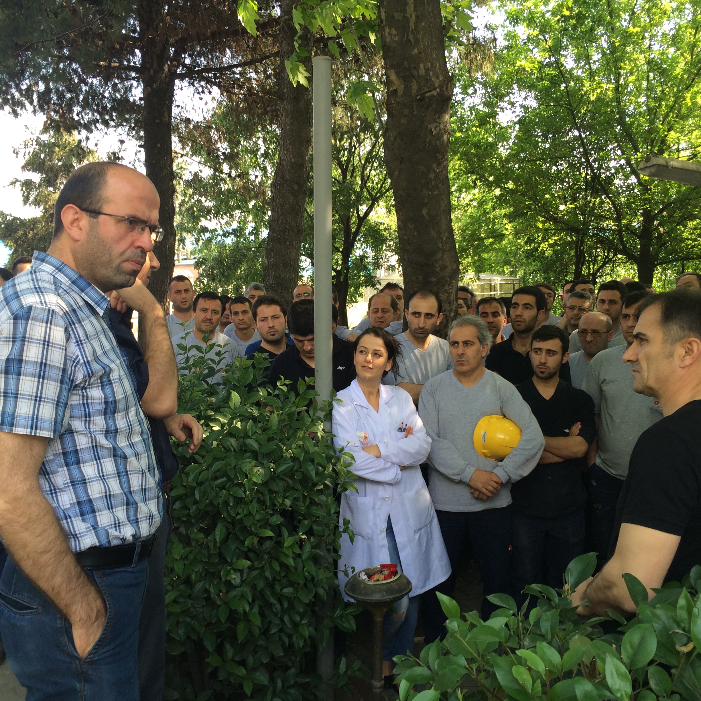 Gebze Şubemize bağlı tüm işyerlerimizde Soma’daki iş cinayetiyle ilgili gerçekleştirilen iş bırakma eylemine, katılım yoğundu. DYO Boya ve Unilever işyerlerindeki iş bırakma eylemlerinde Şube Başkanımız Süleyman Akyüz’ün yanı sıra Genel Sekreterimiz Ali Ufuk Yaşar da işçilerle birlikteydi.